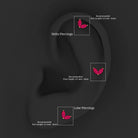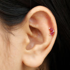 This elegant Rook Earring features a captivating Marquise Cut Ruby in a secure Prong Setting, available in White Gold, Rose Gold, and Yellow Gold for a luxurious appearance. It can be worn on various piercings, including Anti-Tragus, Rook, Helix, Cartilage, or Lobe Piercing, and comes with a choice of a Flat Back or Ball Screw Closure for secure and comfortable wear. This exquisite Ruby Earring is versatile and complements any outfit, making it perfect for everyday or special occasions. Its a great Birthday Gift for your beloved wife or partner, sure to make a lasting impression.