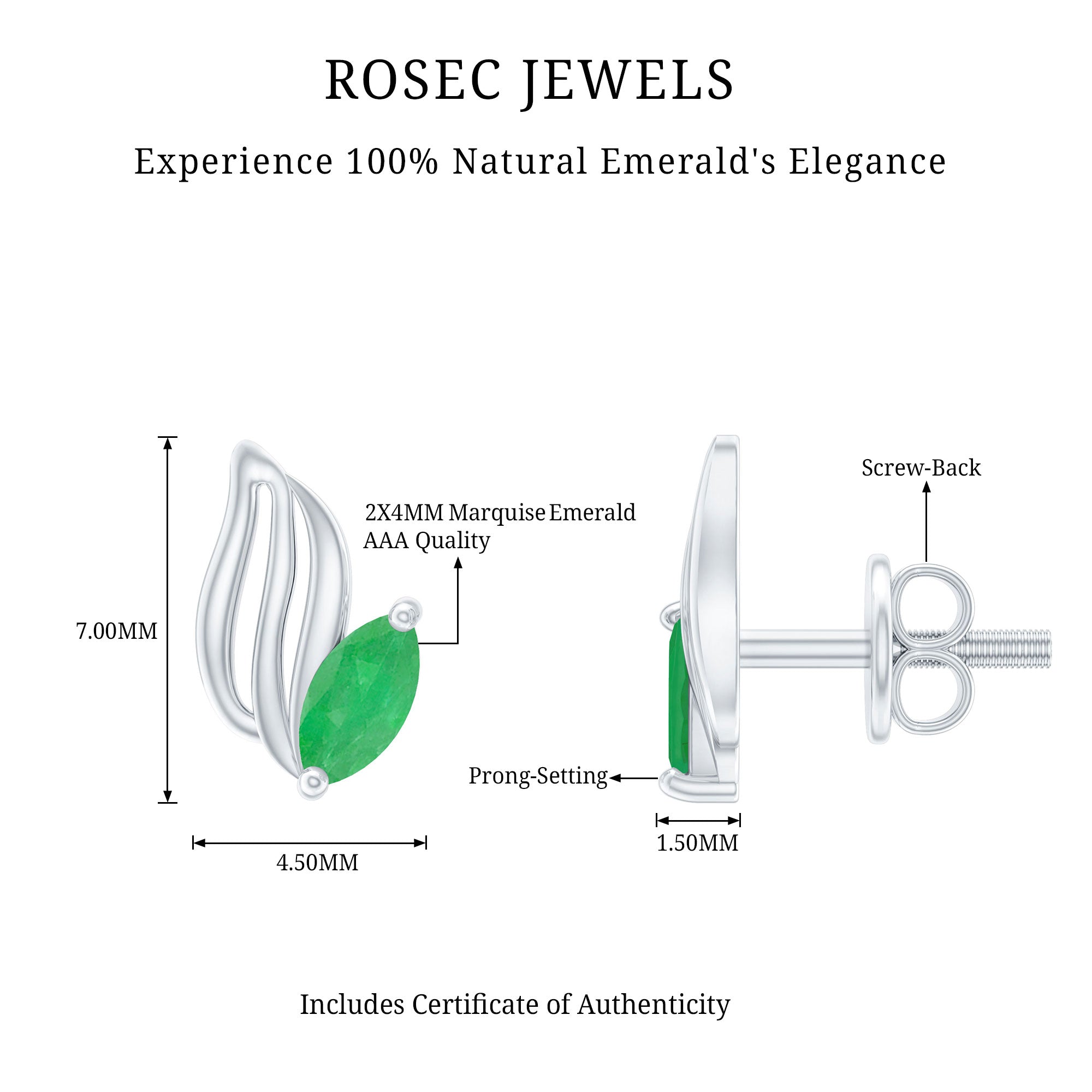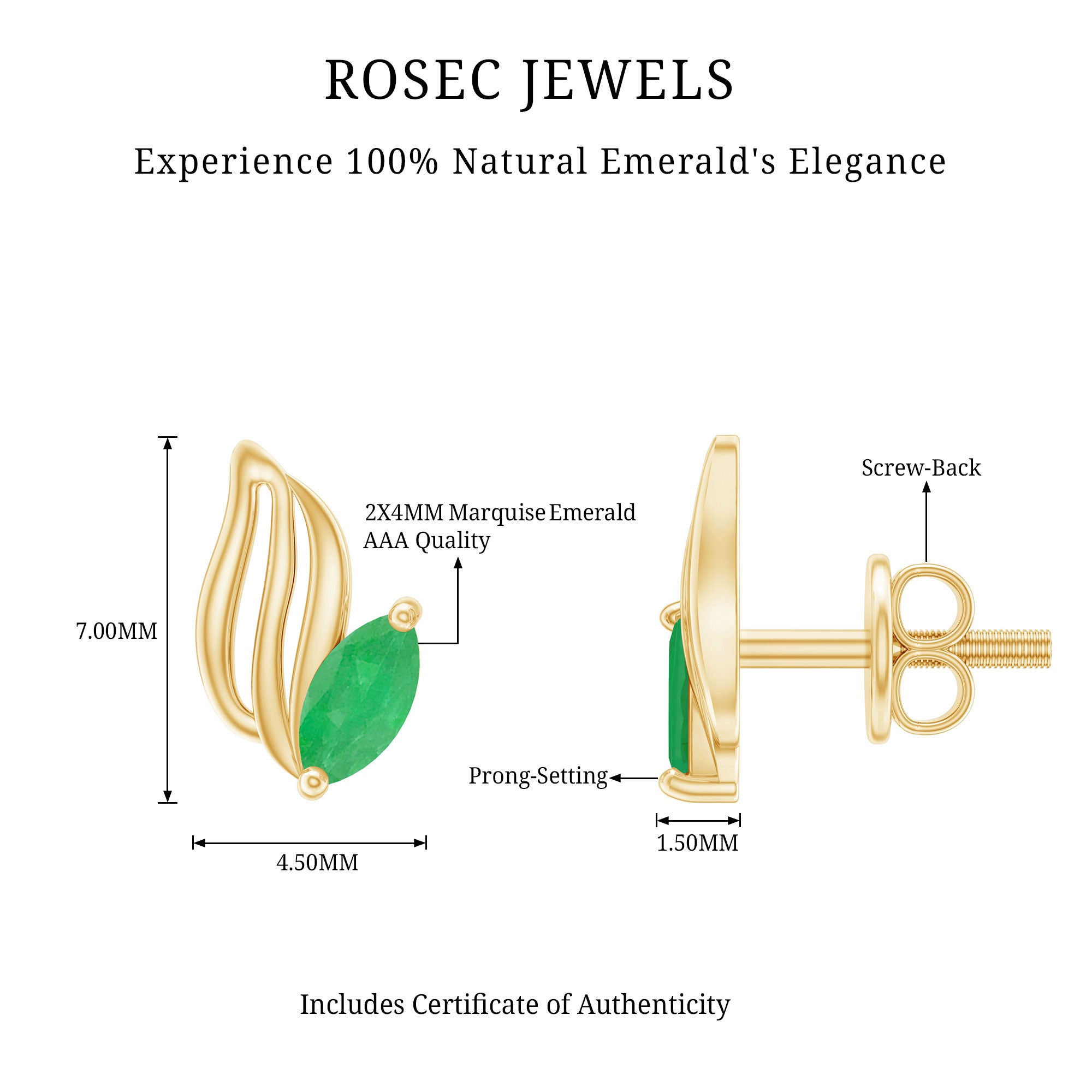 Marquise Shape Emerald Petal Stud Earrings with Screw Back