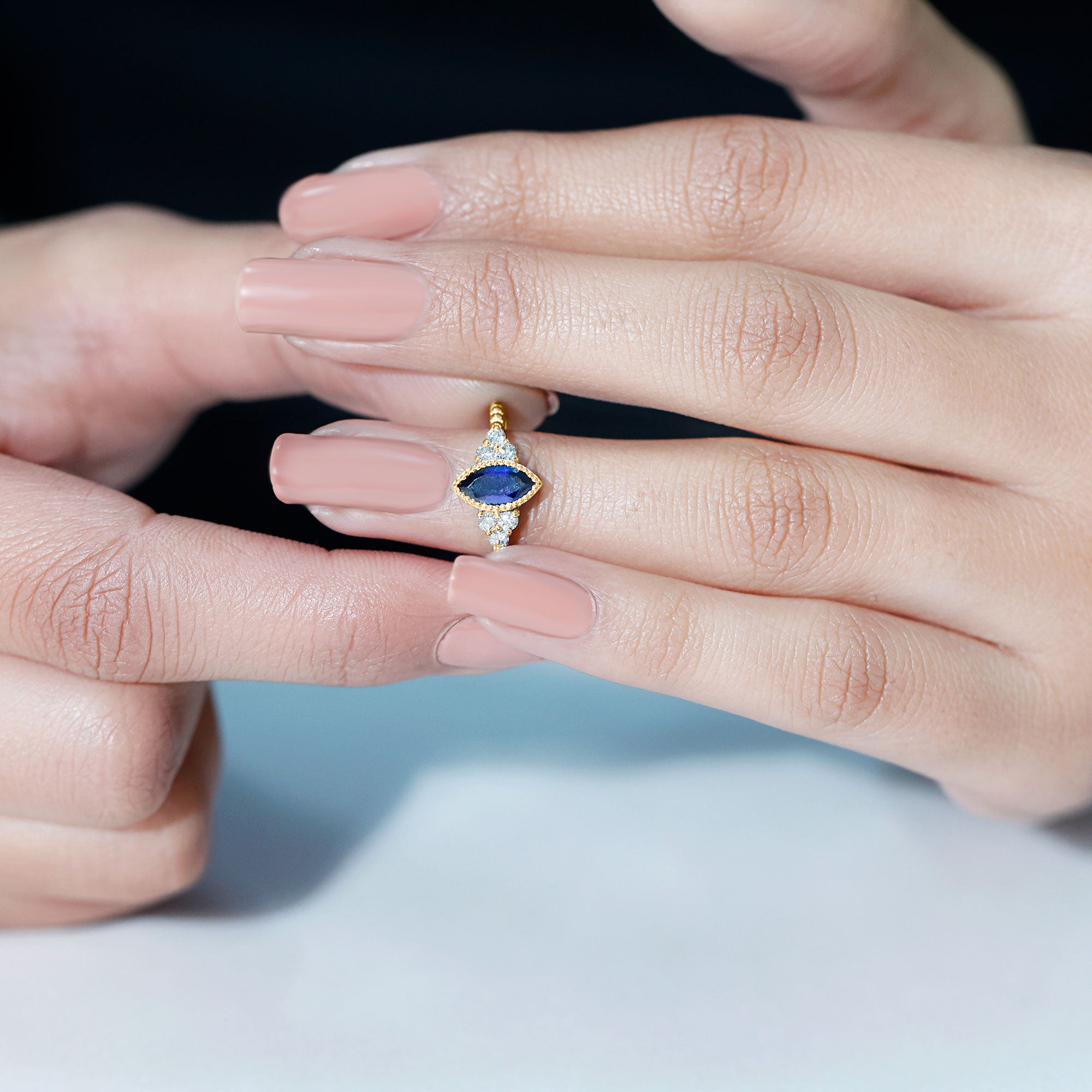 Marquise Cut Created Blue Sapphire Promise Ring With Diamond