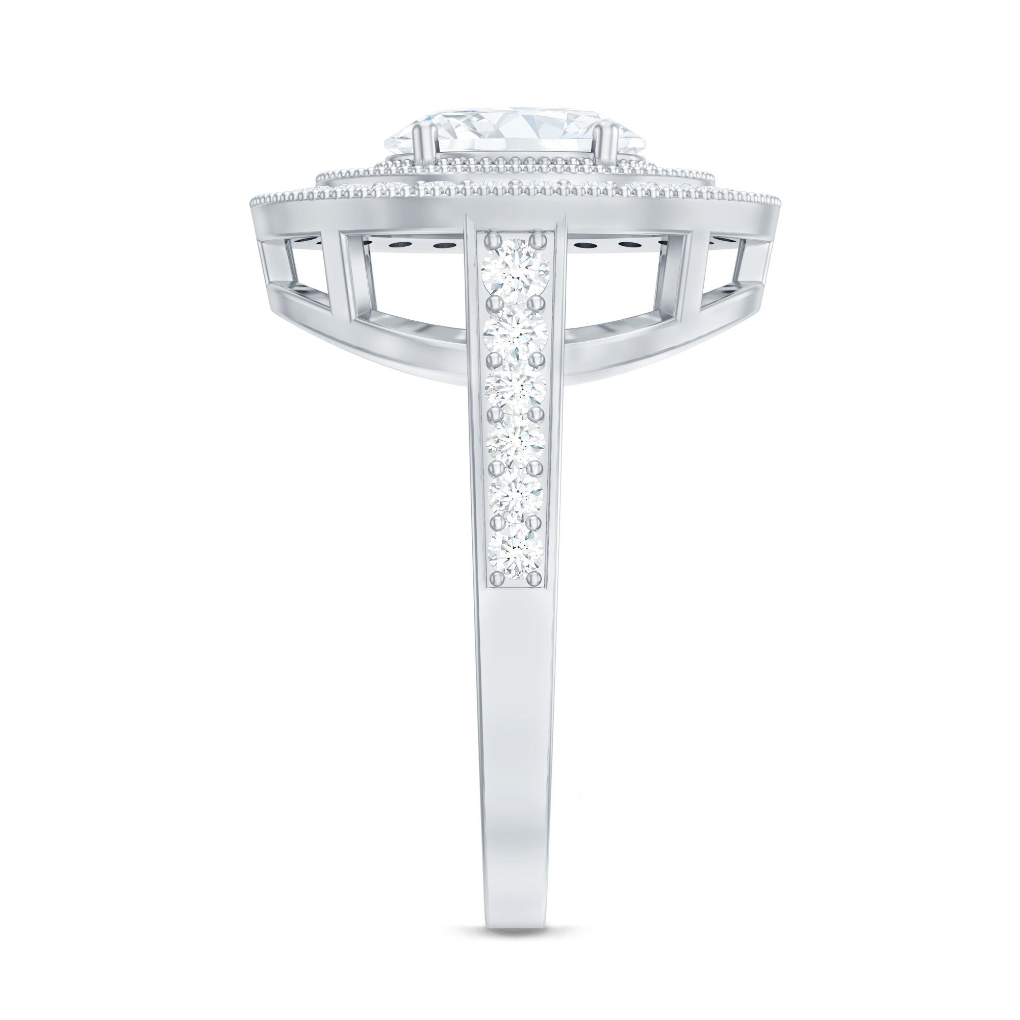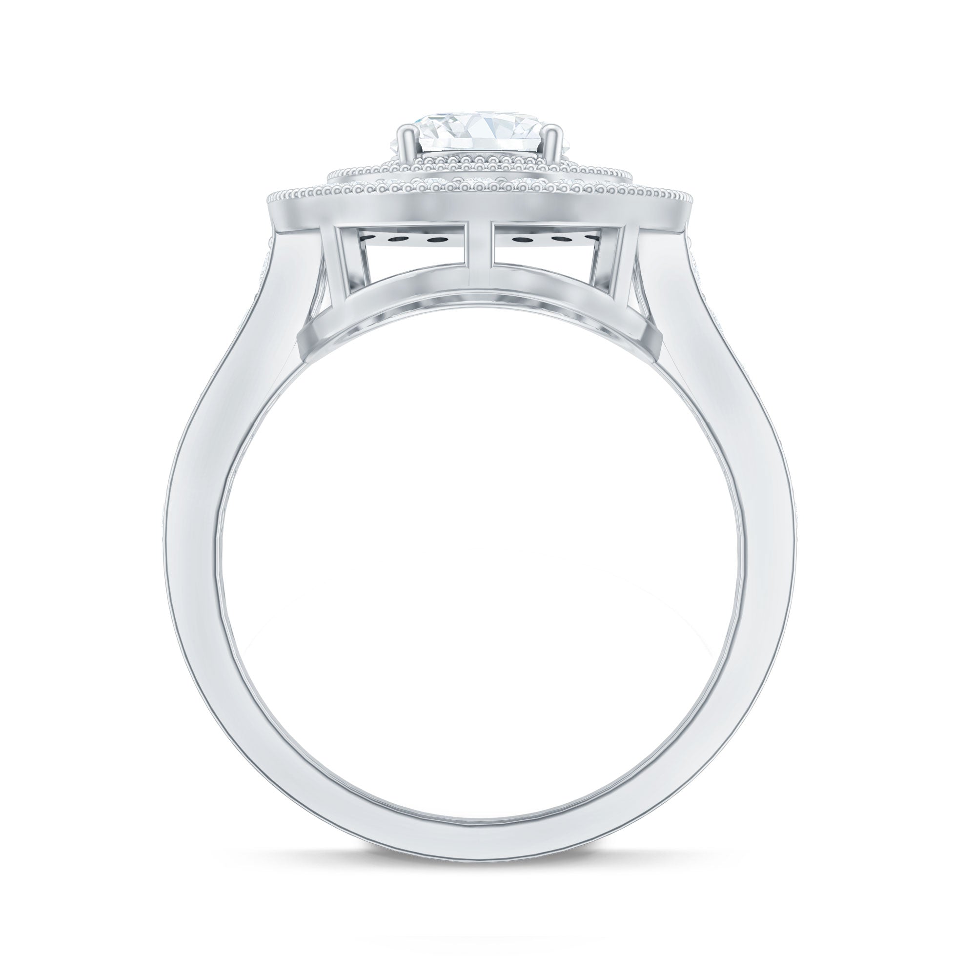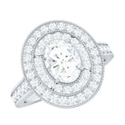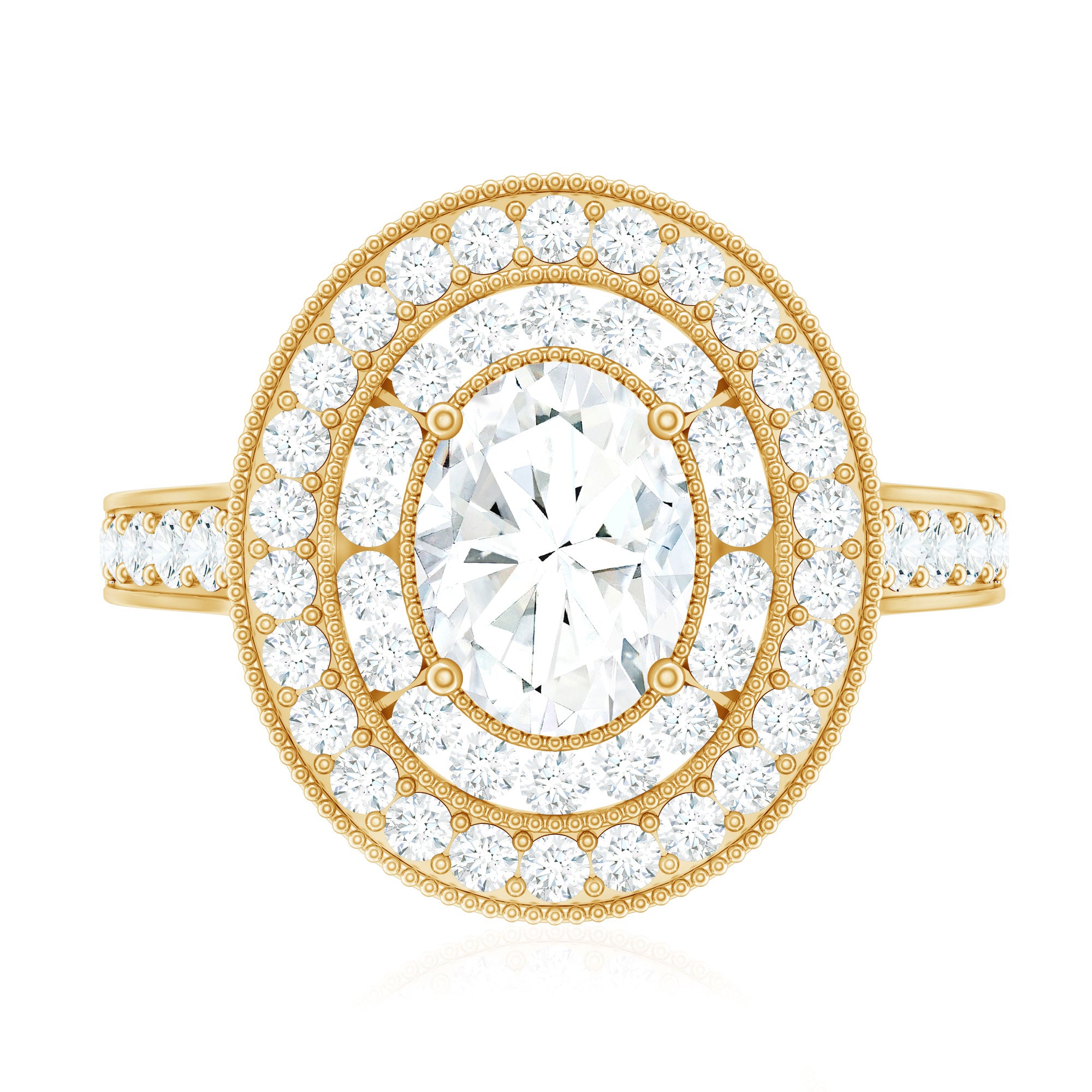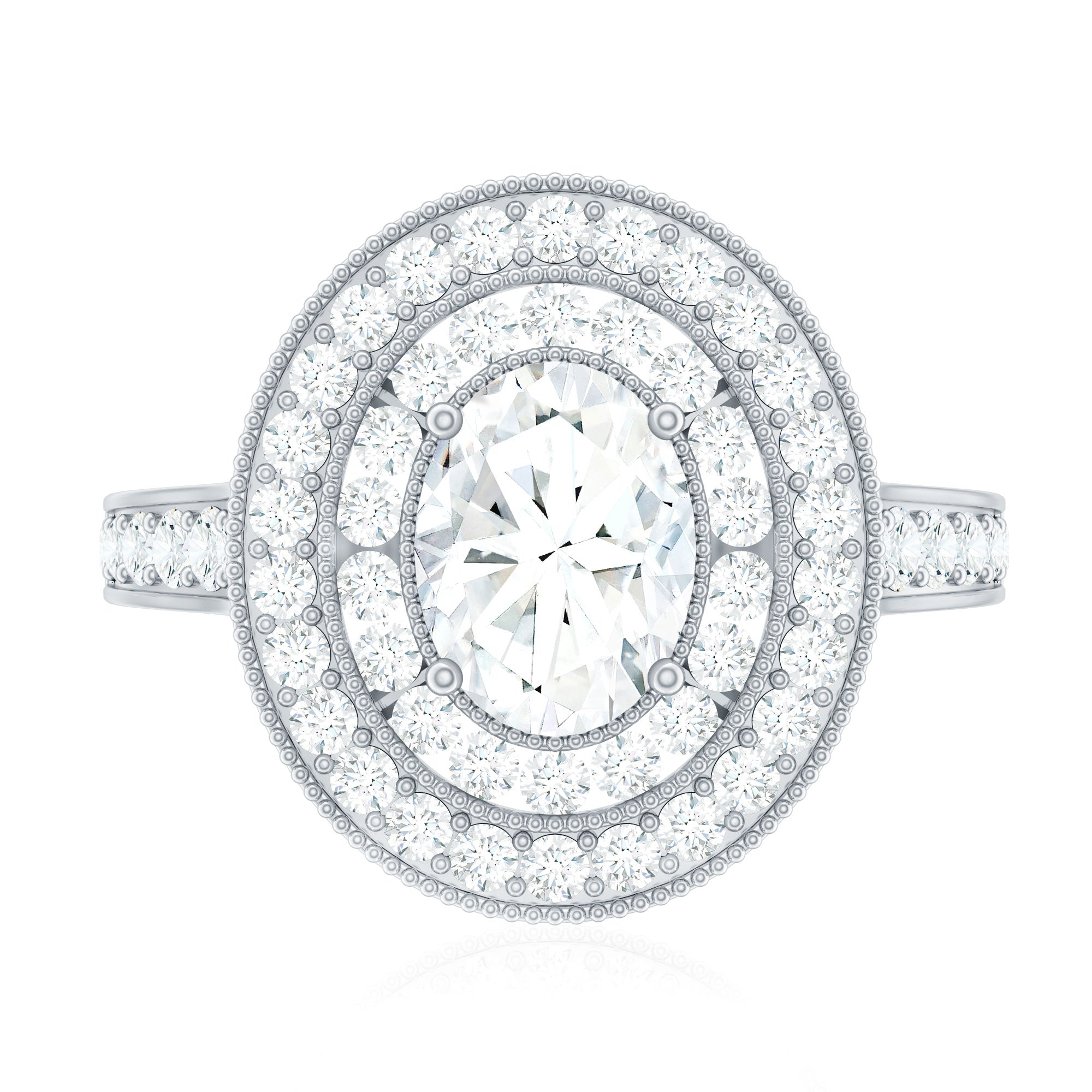 Milgrain Embellished Oval Moissanite Double Halo Engagement Ring