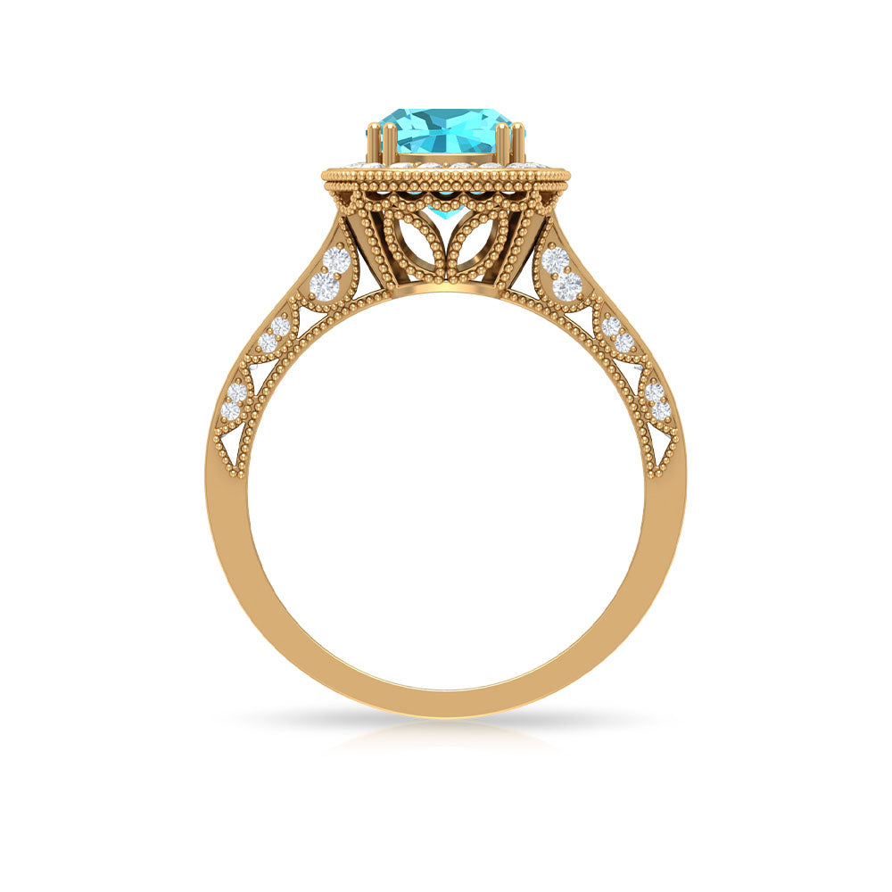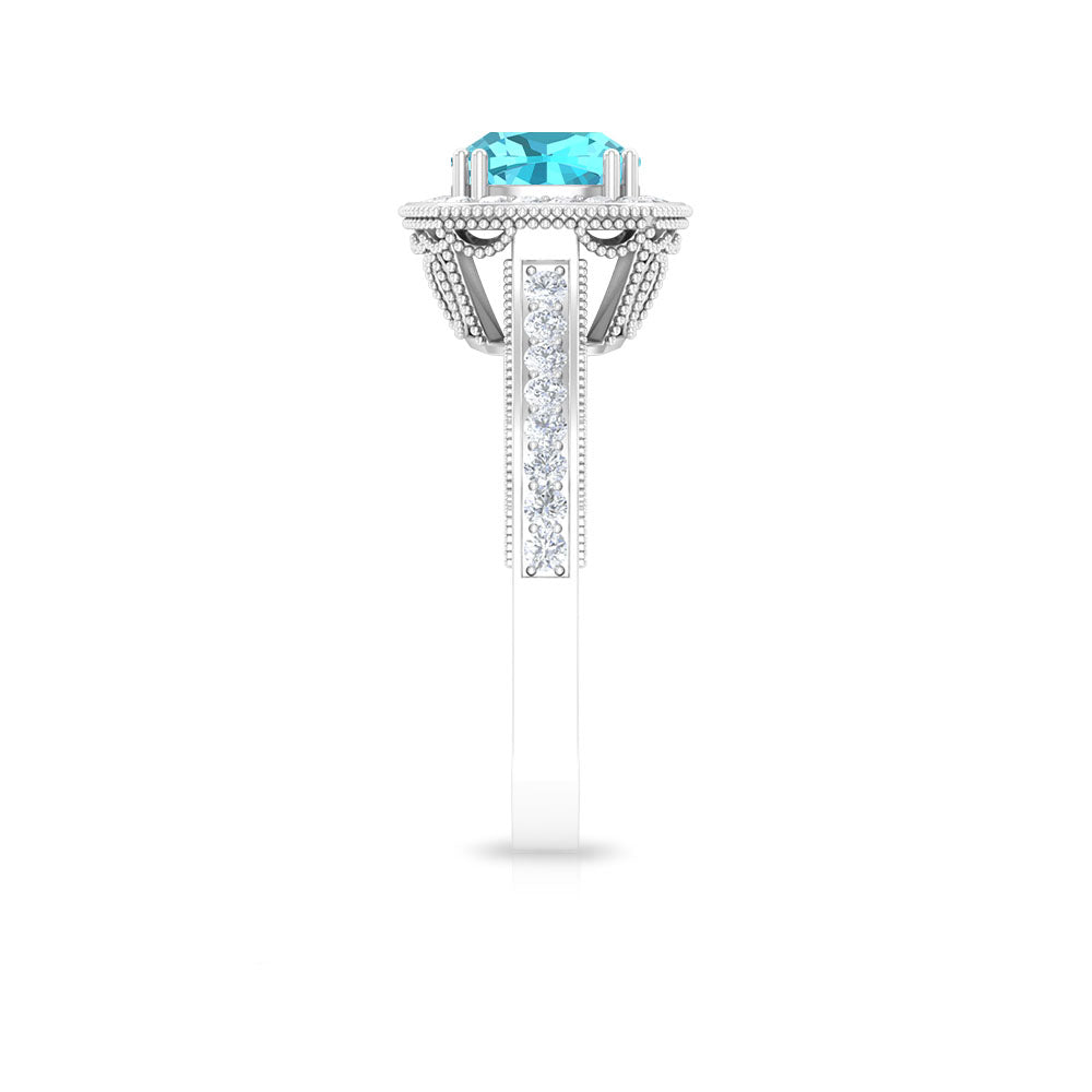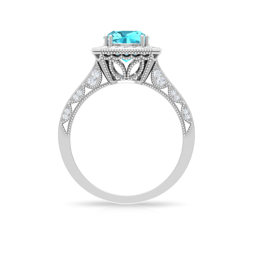 Milgrain Engagement Ring with 2.50 CT Swiss Blue Topaz and Moissanite