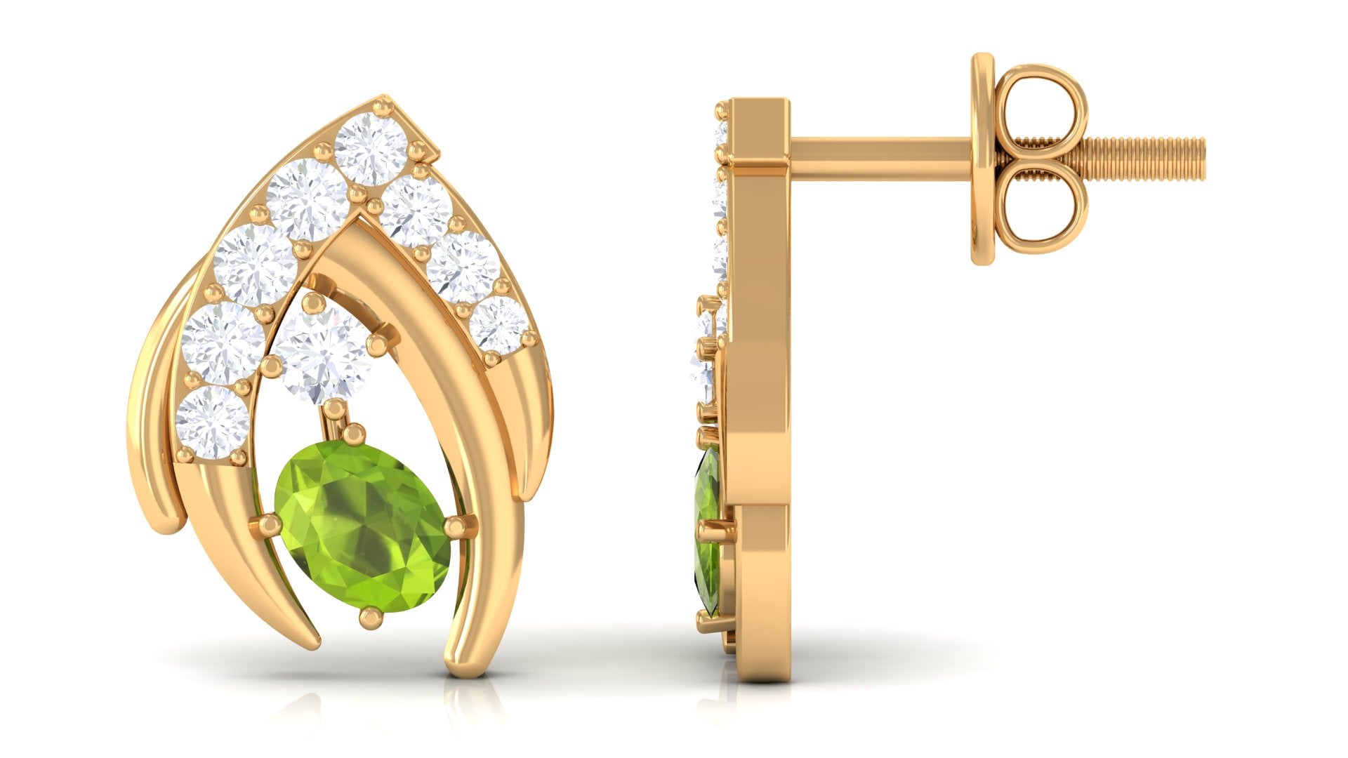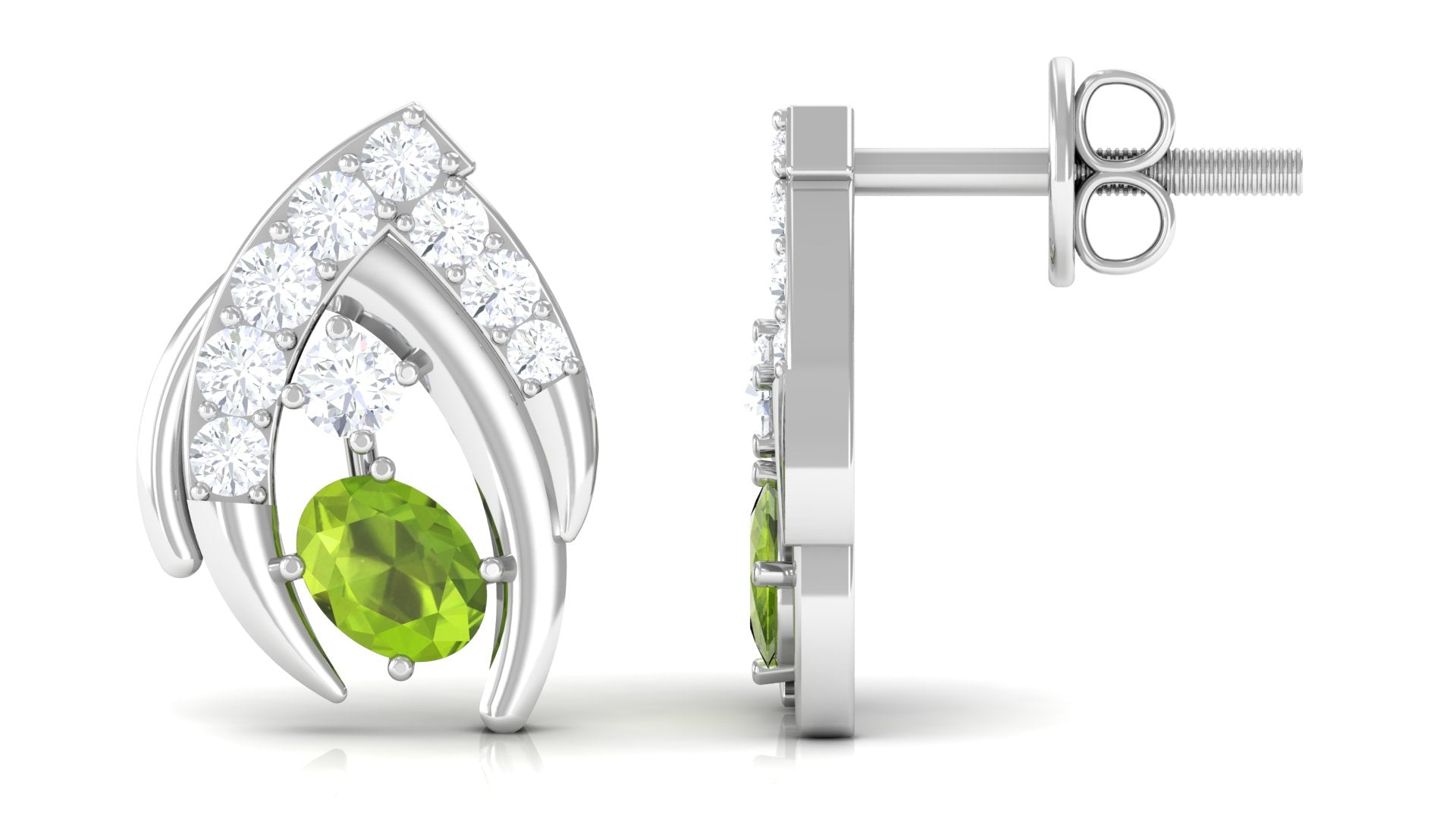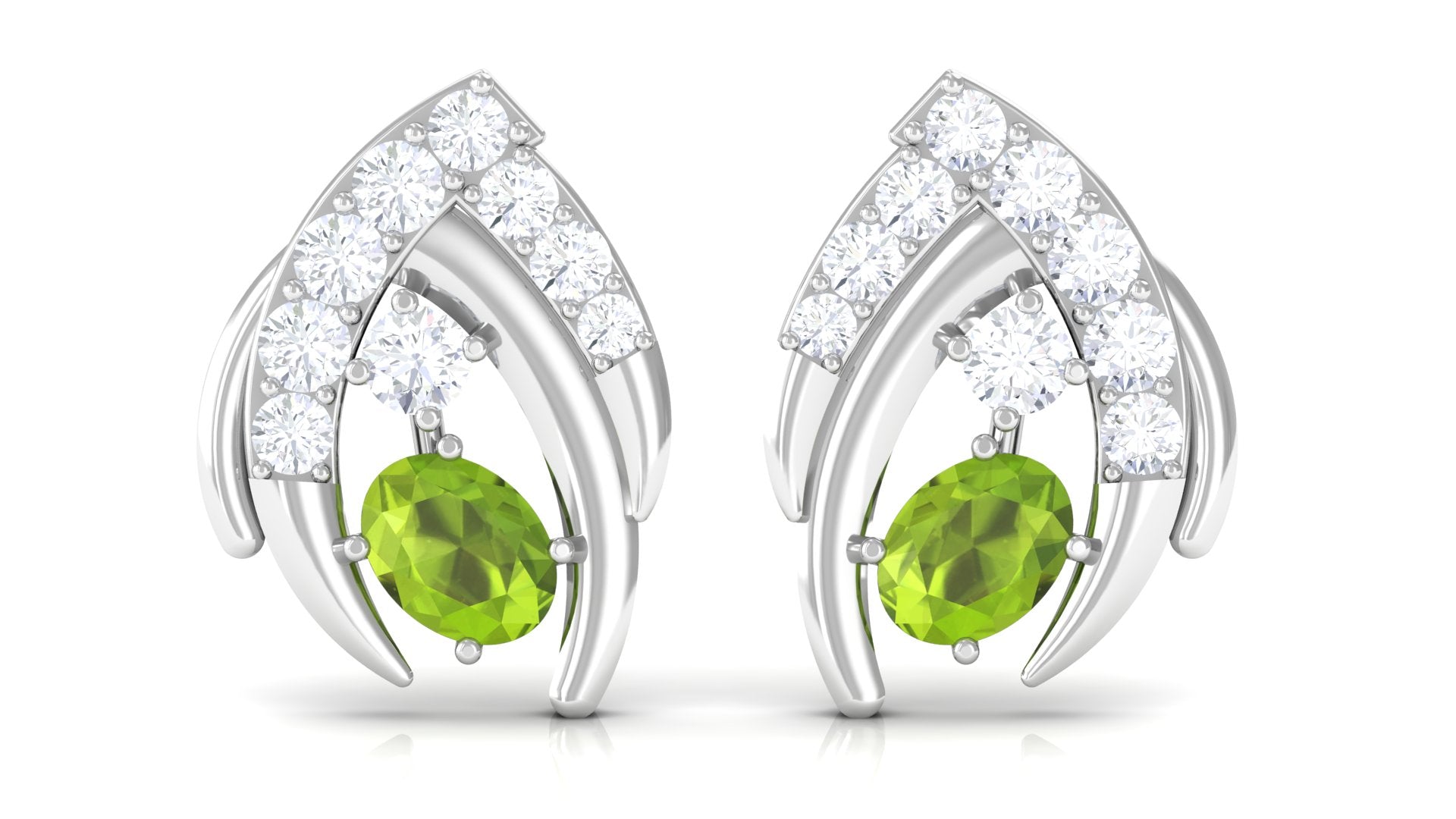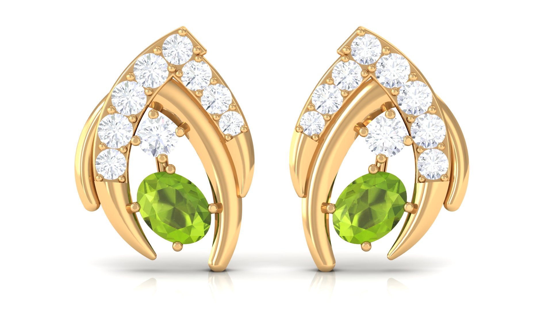 Minimal in appearance yet explosive in its effect, you will experience this sensation once you adorn these Minimal AAA Quality Peridot Stud Earrings at both small and big events. This artistically designed piece showcases an oval-shaped Peridot at the center, placed at a slight tilt and crowned with a diamond for a touch of elegance. Additional brilliance is achieved with more diamonds carefully crafted on the metal frame above.
