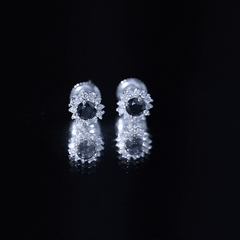 Give her a stunning surprise with these elegant Black Onyx Earrings. It features a Round Shape Black Diamond gemstone securely cradled in a prong setting. The addition of a dazzling Diamond halo on these stud earrings ensures they effortlessly catch the eye.