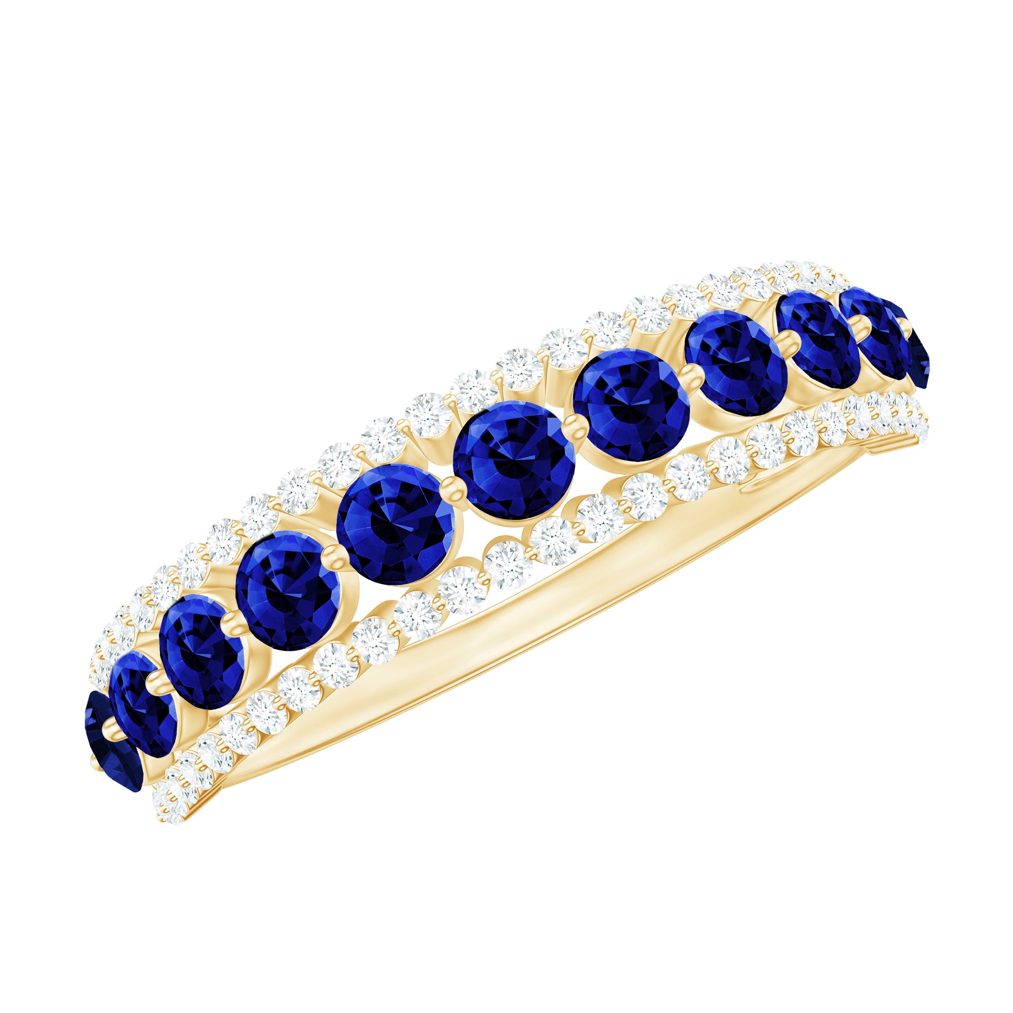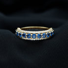 Celebrate your anniversary in style and show your queen how much she means to you with this magnificent half eternity ring. Adorned with regal gemstones including created blue sapphire and Diamond, this stunning anniversary band ring is fit for royalty. Crafted from solid gold, it is the perfect way to express your love and appreciation for your partners grace and beauty.