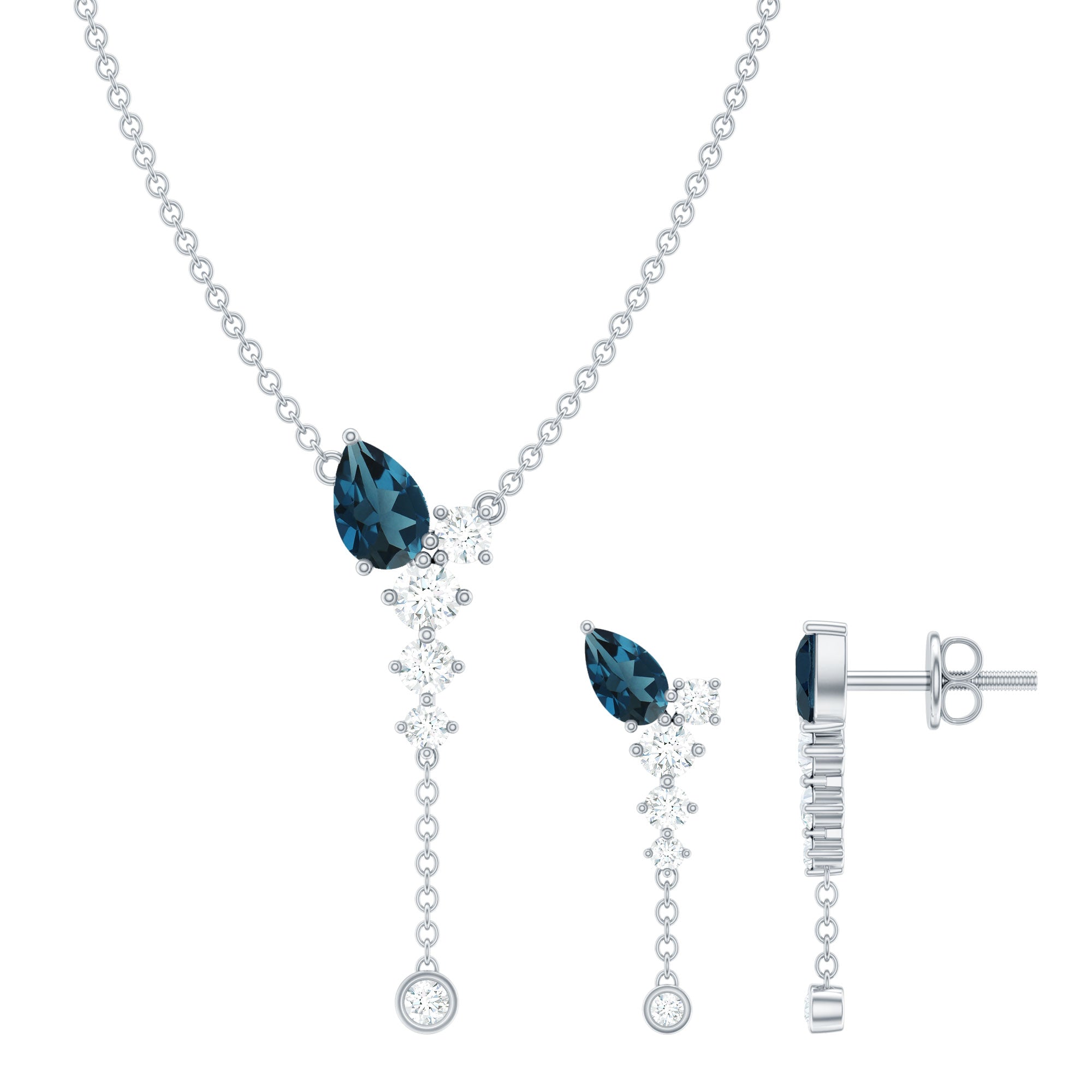 Minimal Dangle Necklace Earrings Set with London Blue Topaz and Diamond