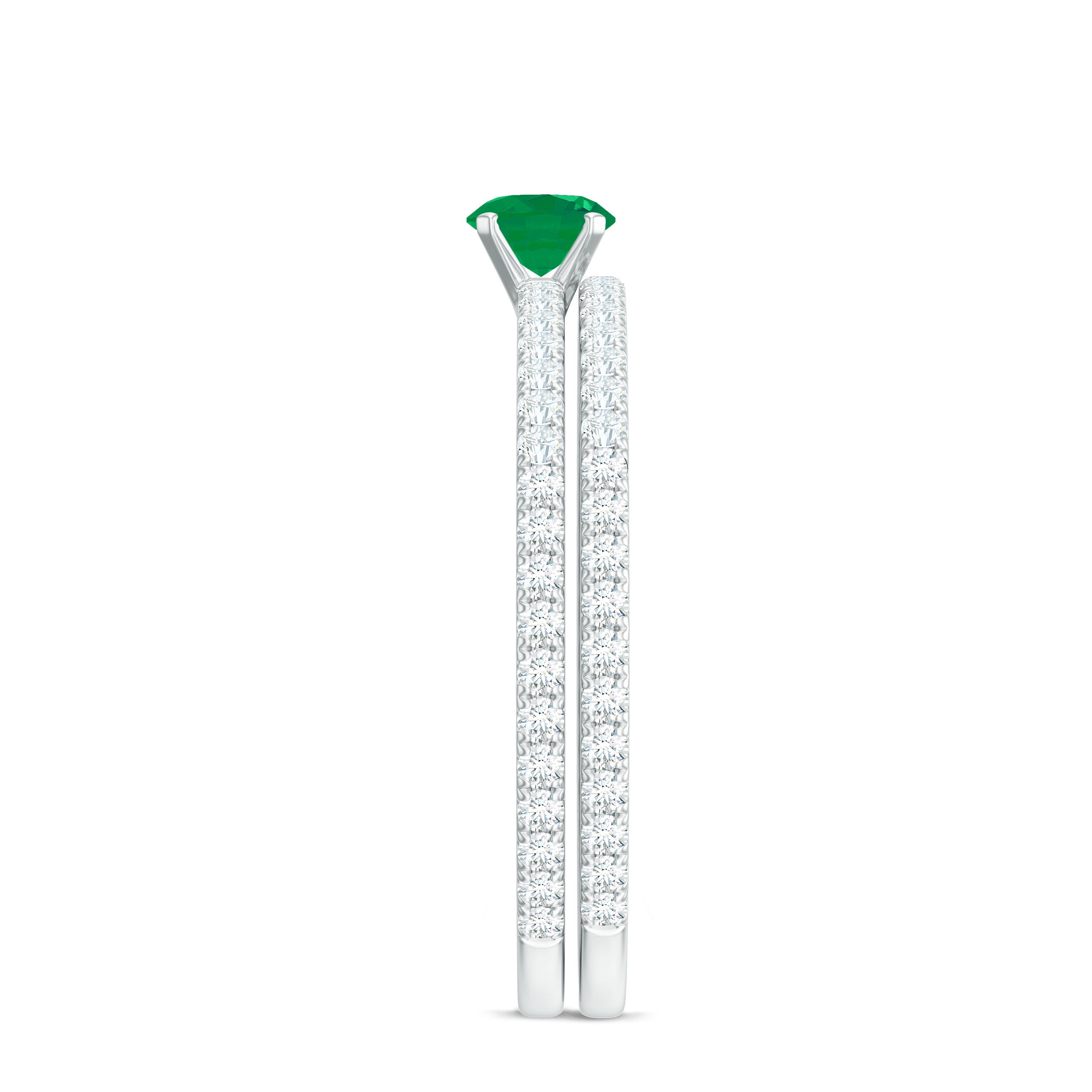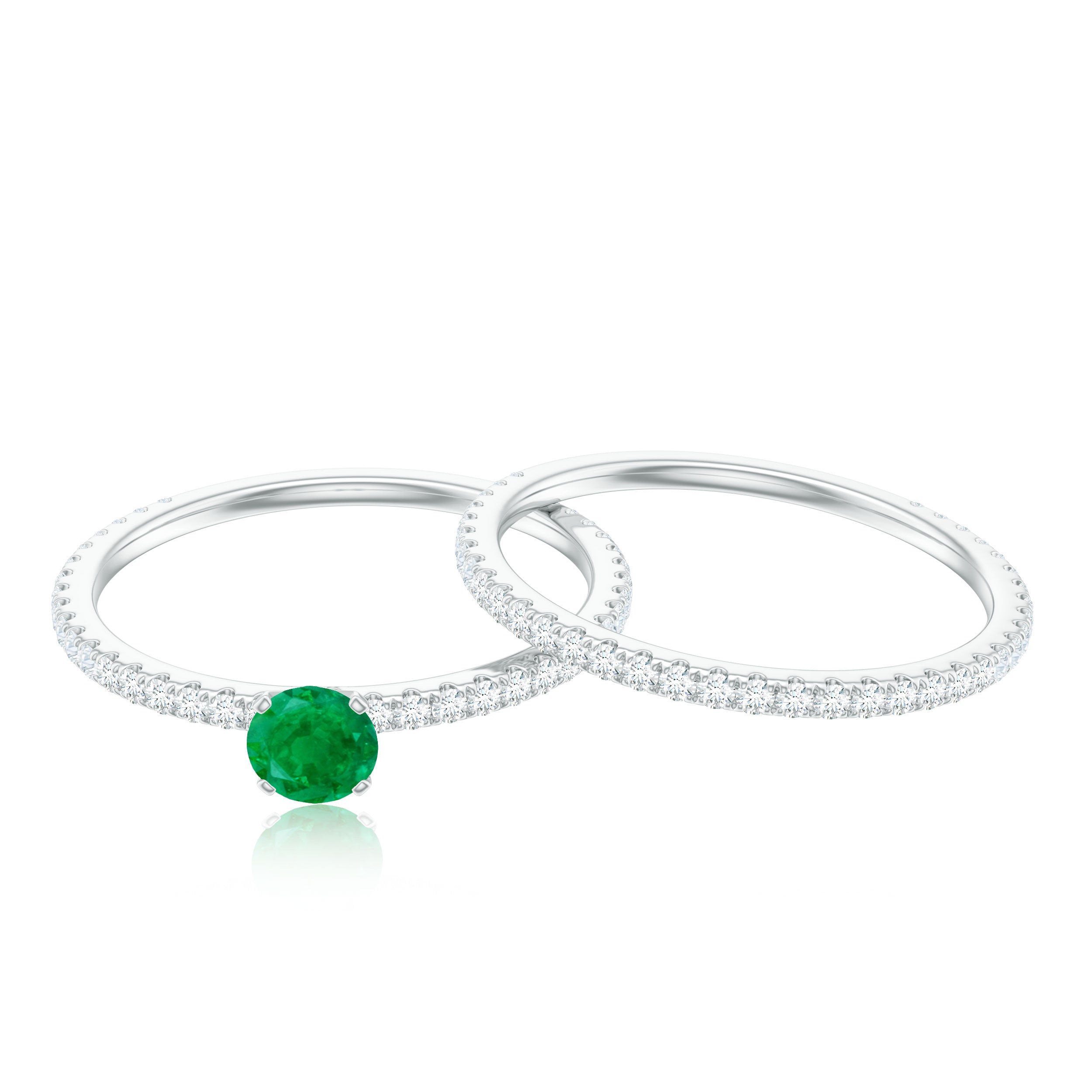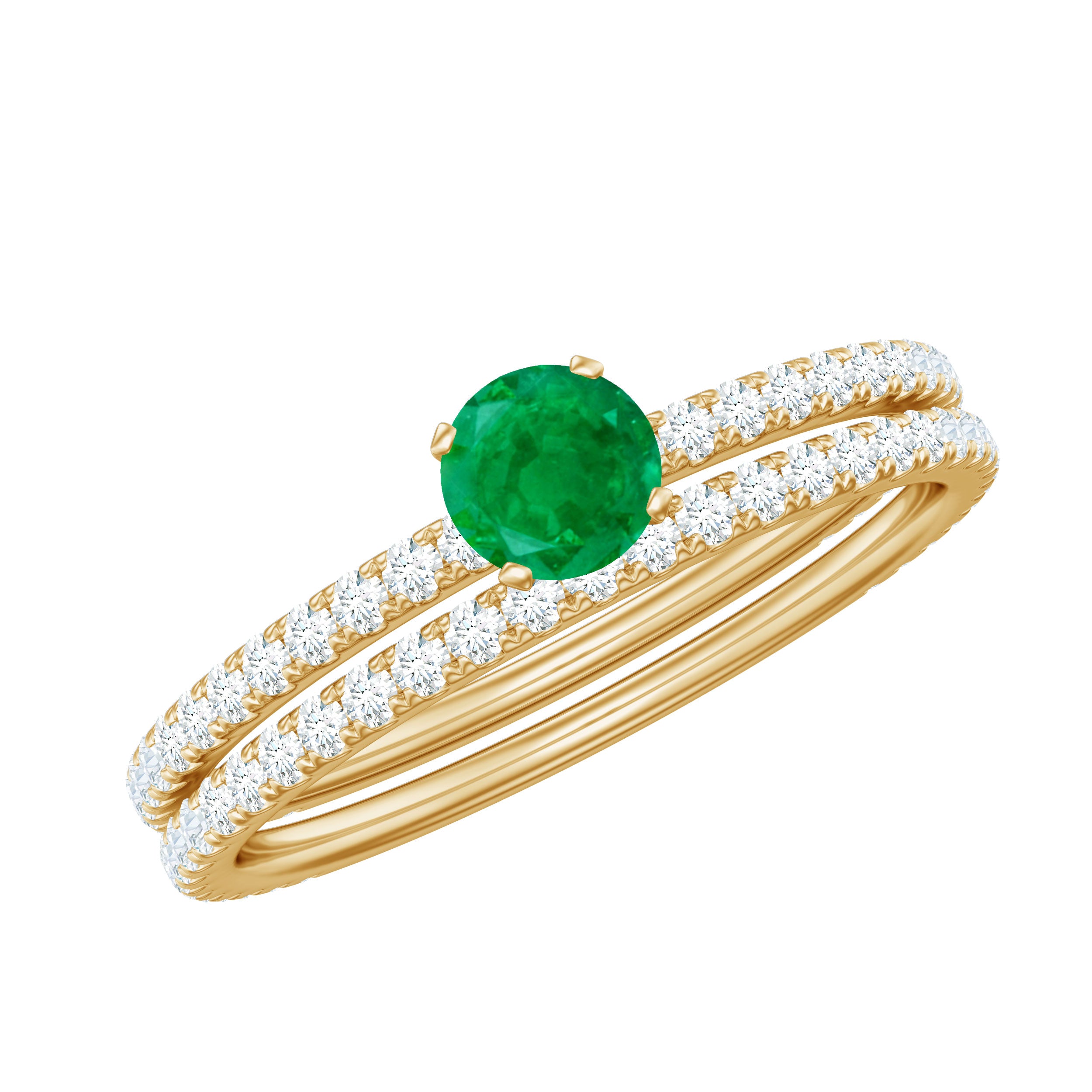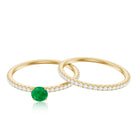 Promise forever with a touch of effortless elegance with this enchanting Promise Ring Set, designed to capture love in its purest form. The Minimal 5 mm Round Emerald Engagement Ring, with its vibrant green hue, is gracefully accented by sparkling Diamond Side Stones that add just the right touch of brilliance. Complementing it is a delicate Diamond Enhancer Ring, perfectly crafted to embrace the engagement ring, creating a seamless and radiant harmony. Together, this Emerald Engagement Ring with Enhancer forms a breathtaking duo that symbolizes unity, devotion and the intertwining of two hearts on the same journey. Minimal yet undeniably captivating, this Emerald Wedding Ring Set reflects modern sophistication while keeping timeless romance at its core. Whether worn together or separately, each ring tells a story of love, promise and shared dreams. Presented in a signature jewelry box and available in a range of ring sizes, this Engagement Wedding Ring Set makes the perfect token for a meaningful promise or a cherished milestone.