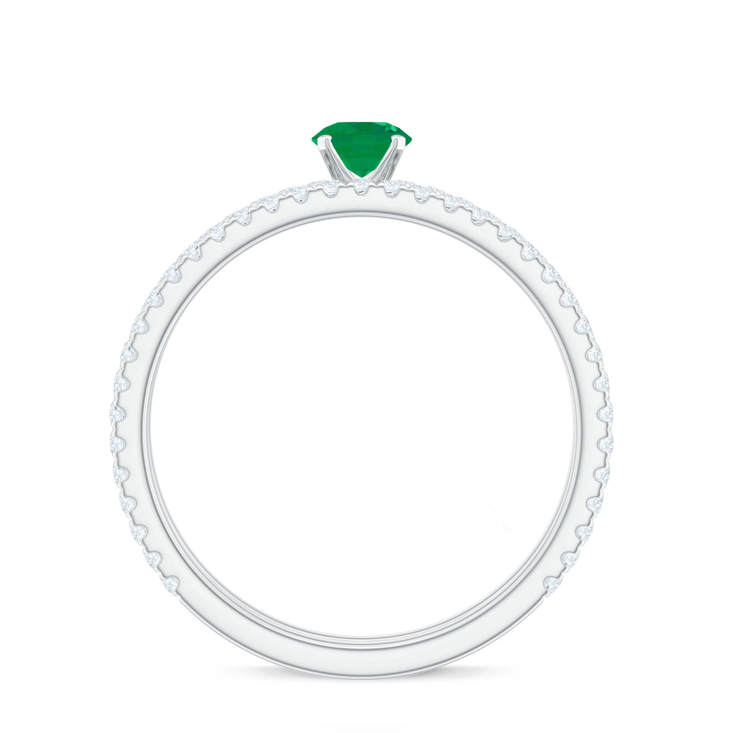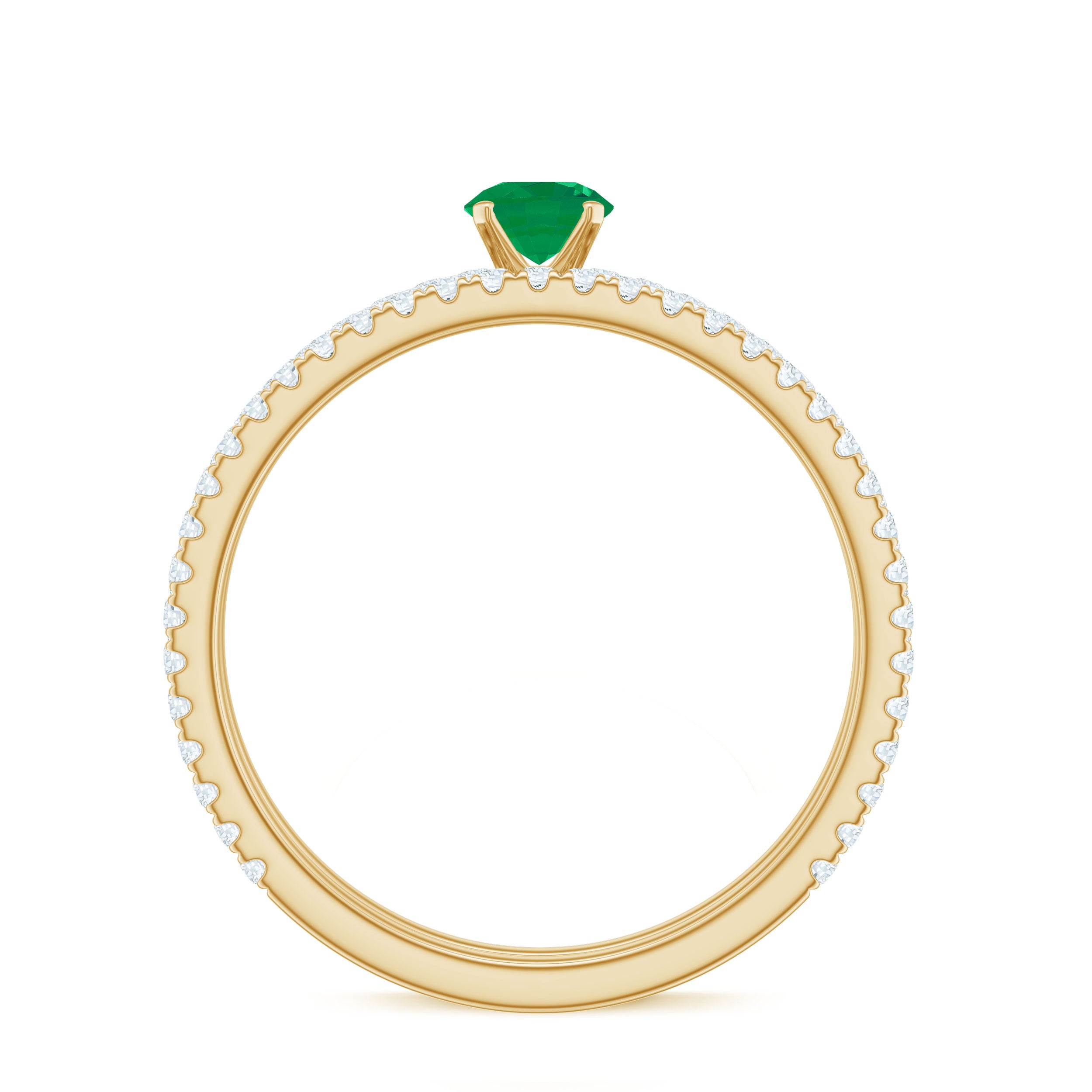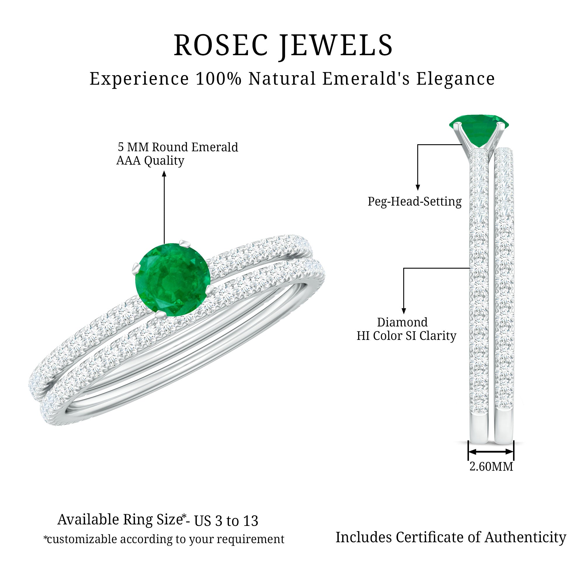 Promise forever with a touch of effortless elegance with this enchanting Promise Ring Set, designed to capture love in its purest form. The Minimal 5 mm Round Emerald Engagement Ring, with its vibrant green hue, is gracefully accented by sparkling Diamond Side Stones that add just the right touch of brilliance. Complementing it is a delicate Diamond Enhancer Ring, perfectly crafted to embrace the engagement ring, creating a seamless and radiant harmony. Together, this Emerald Engagement Ring with Enhancer forms a breathtaking duo that symbolizes unity, devotion and the intertwining of two hearts on the same journey. Minimal yet undeniably captivating, this Emerald Wedding Ring Set reflects modern sophistication while keeping timeless romance at its core. Whether worn together or separately, each ring tells a story of love, promise and shared dreams. Presented in a signature jewelry box and available in a range of ring sizes, this Engagement Wedding Ring Set makes the perfect token for a meaningful promise or a cherished milestone.