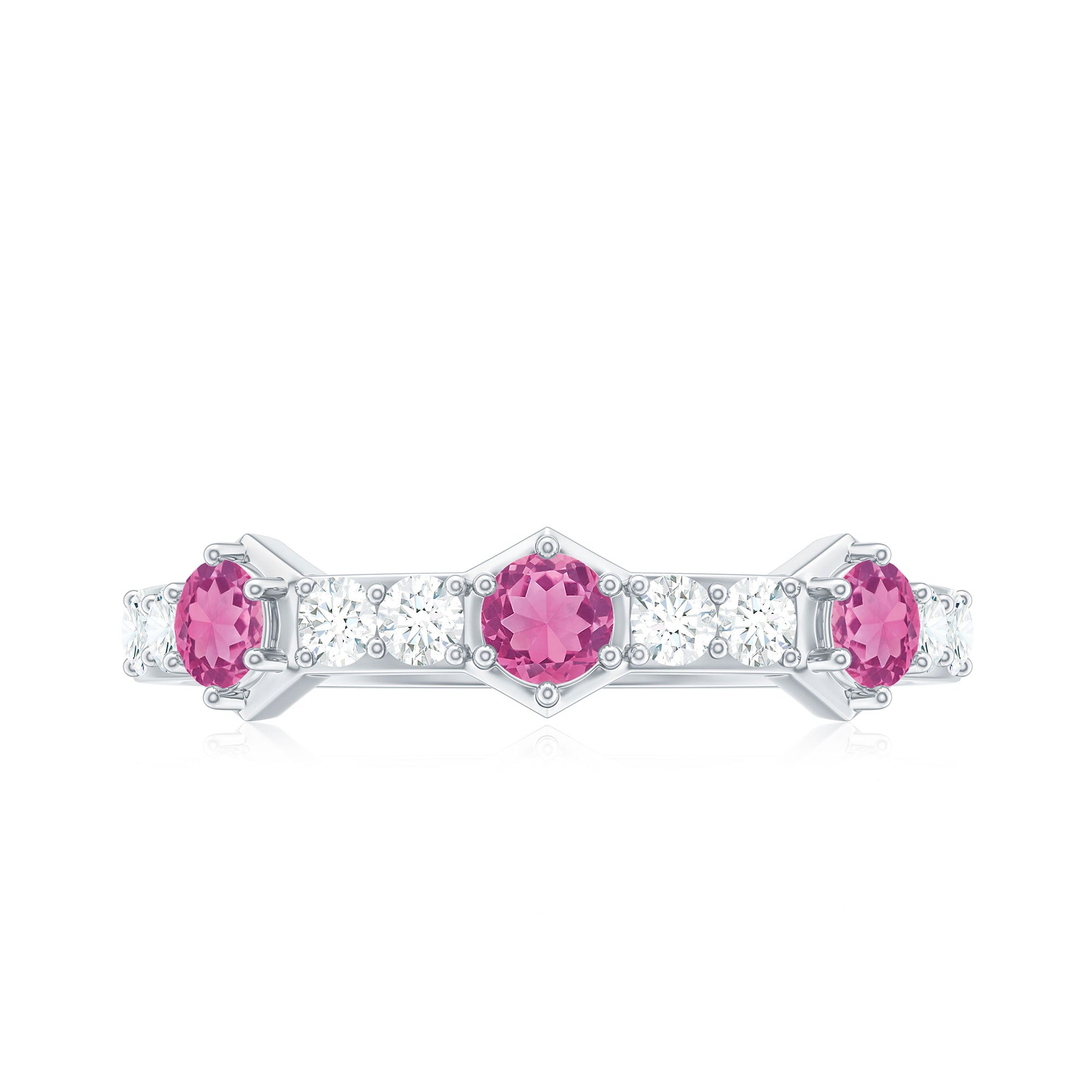 Minimal Half Eternity Ring with Pink Tourmaline and Diamond
