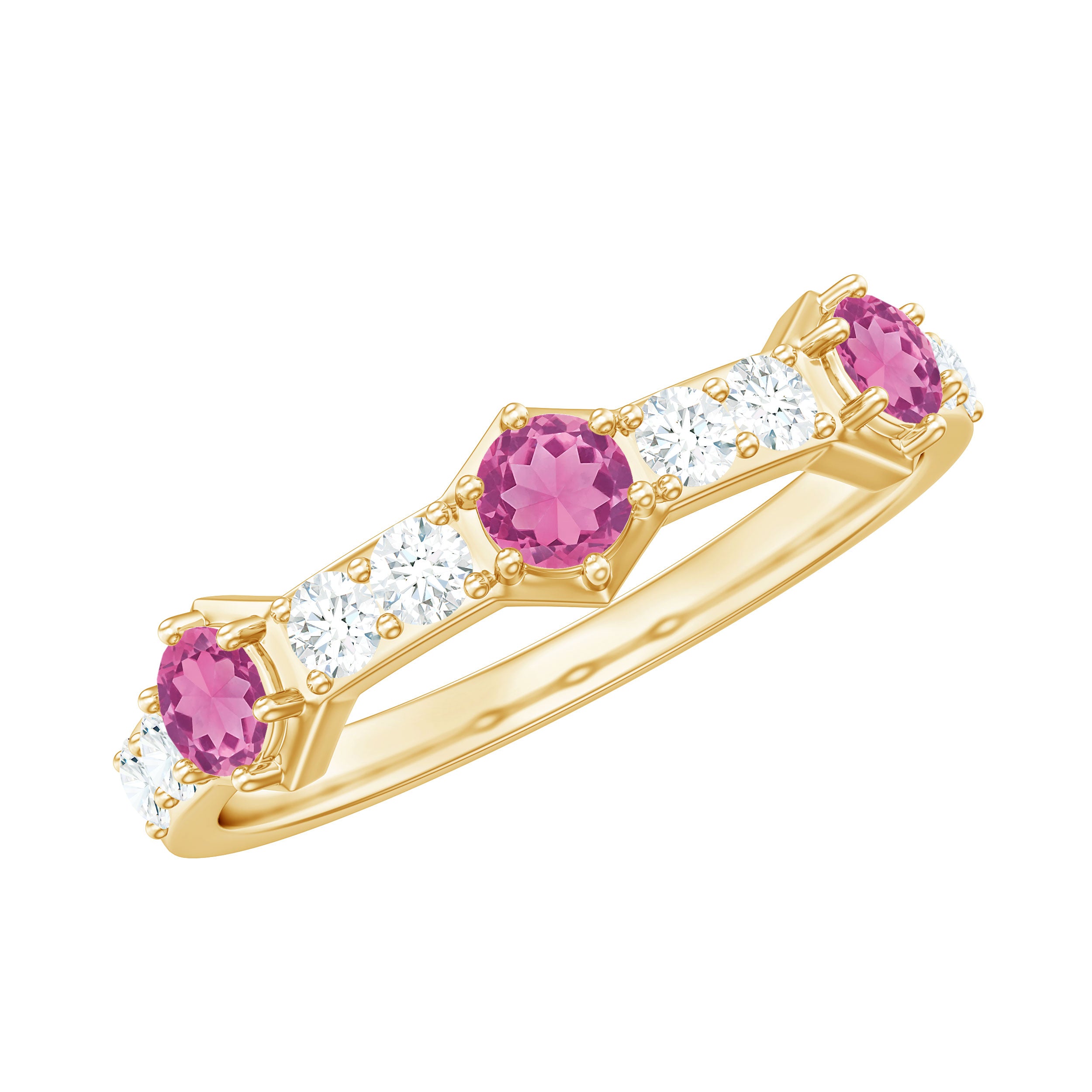 Elevate your style with this Minimal Half Eternity Ring. Sparkling Pink Tourmaline and Diamond gemstones create a perfect balance of elegance and allure.