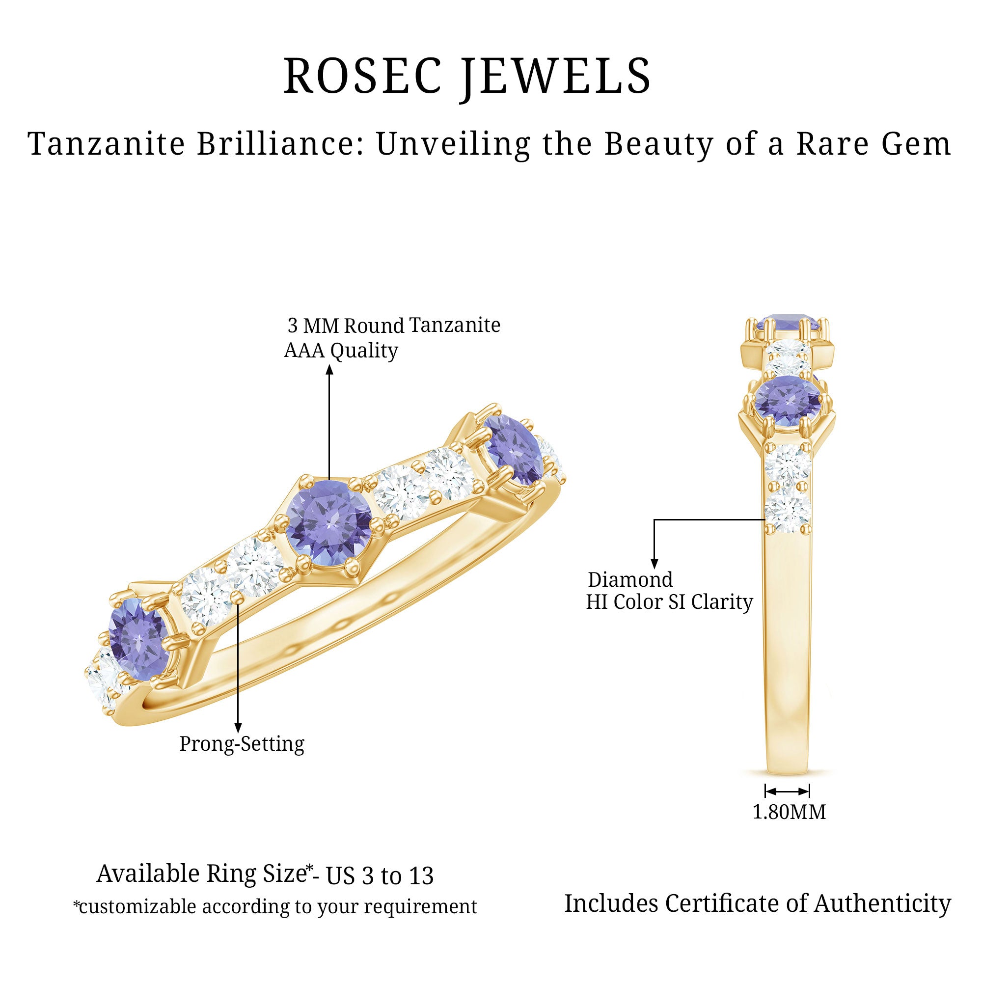 Unleash the allure of simplicity with this minimalistic Half Eternity Ring, adorned with Tanzanite and Diamond gemstones for a classy look.