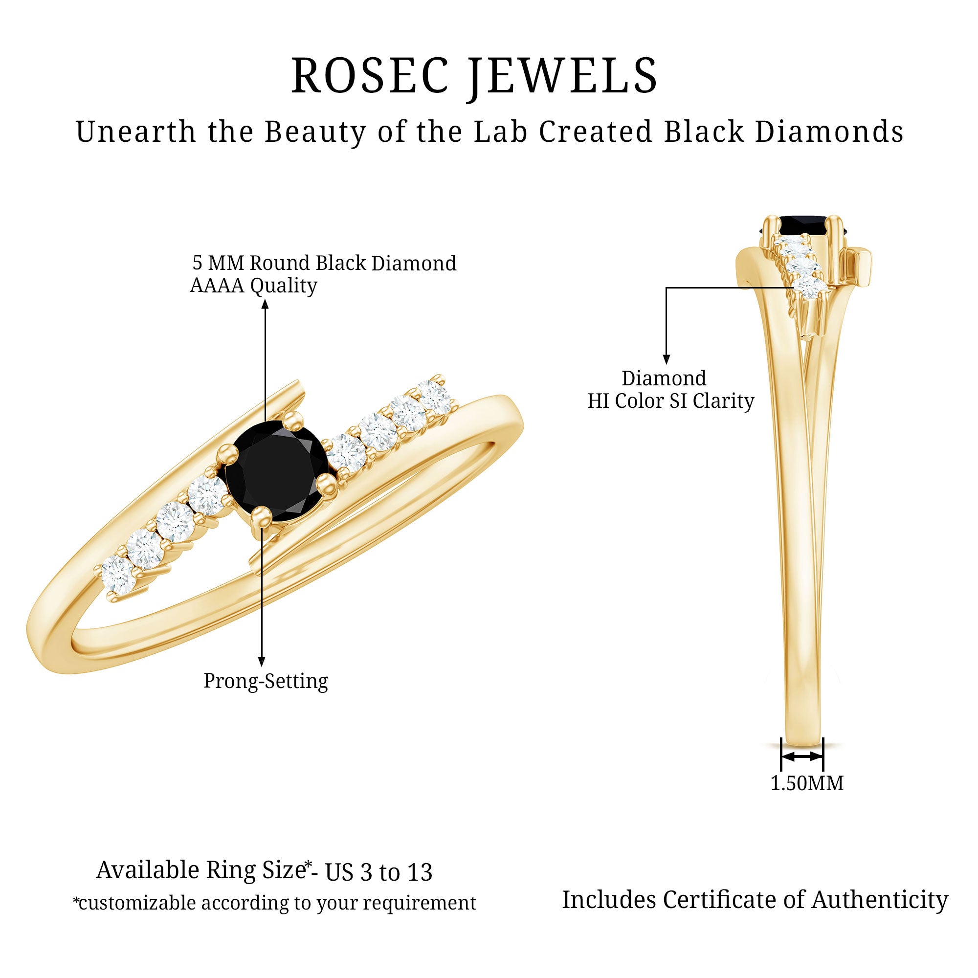 Propose to her by presenting this adorable Promise Ring adorned with a Created Black Diamond and Diamond gemstones for a luxurious look. Lab Created Black Diamond- Brilliant Cut Lab Created Black Diamond Gemstone exhibits AAAA Quality and possess vibrant color. It is Certified and inclusion free, which makes it a preferable and highly desirable gem. It is a perfect alternate option of Black Diamond in budget. Exceptional Durability and vitreous Luster of this stone makes it a popular cost-friendly choice. Diamond - HI-SI Quality exhibited by Brilliant Cut Diamond give justice to its incredible value. Diamond summons beauty, attractiveness and unbreakable love. It is Certified and helps in bringing success and luxury to the wearer. Its Durability and Luster are enhanced by Lab Created Treatment, to further make it a captivating and desirable gem.