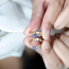 Embrace the beauty of nature with this Promise Ring, adorned with a captivating Tanzanite and Diamond gemstones, a symbol of love and natural grace.