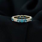 Create unforgettable moments with this exquisitely designed Blue Topaz Eternity Ring. Its elegant design and striking hue make this Blue Topaz Wedding Band a distinctive addition to your most cherished occasions. Adorned with a 3 MM round shape london blue topaz 3 gemstones set continuously alternate with tiny round diamonds. This design is both straightforward and visually appealing, ideal for those who appreciate a classic aesthetic with a hint of boldness. The royal blue hue of the blue topaz contributes a dramatic flair while maintaining an overall sophisticated appearance. Perfect for commemorating love, commitment, or personal achievements, this Eternity Stackable Ring serves as a considerate gift for birthdays, anniversaries, or simply as a gesture of affection. As the birthstone for December, london blue topaz also represents a significant gift for individuals born in that month or for those under the Leo zodiac sign. Whether worn alone or combined with other rings, this full eternity band provides both versatility and enduring style. The comfortable fit and polished finish ensure it can be worn daily with ease. Made with AAA quality london blue topaz and premium metal, this Wedding Anniversary Ring is designed to endure and shine through every phase of life. If you seek a ring that embodies elegance, resilience, and significance - this one is an ideal choice.