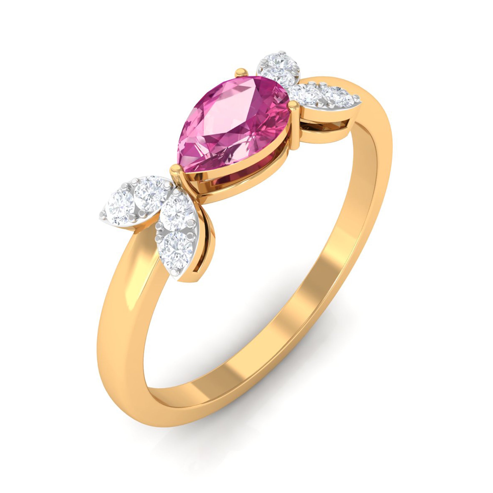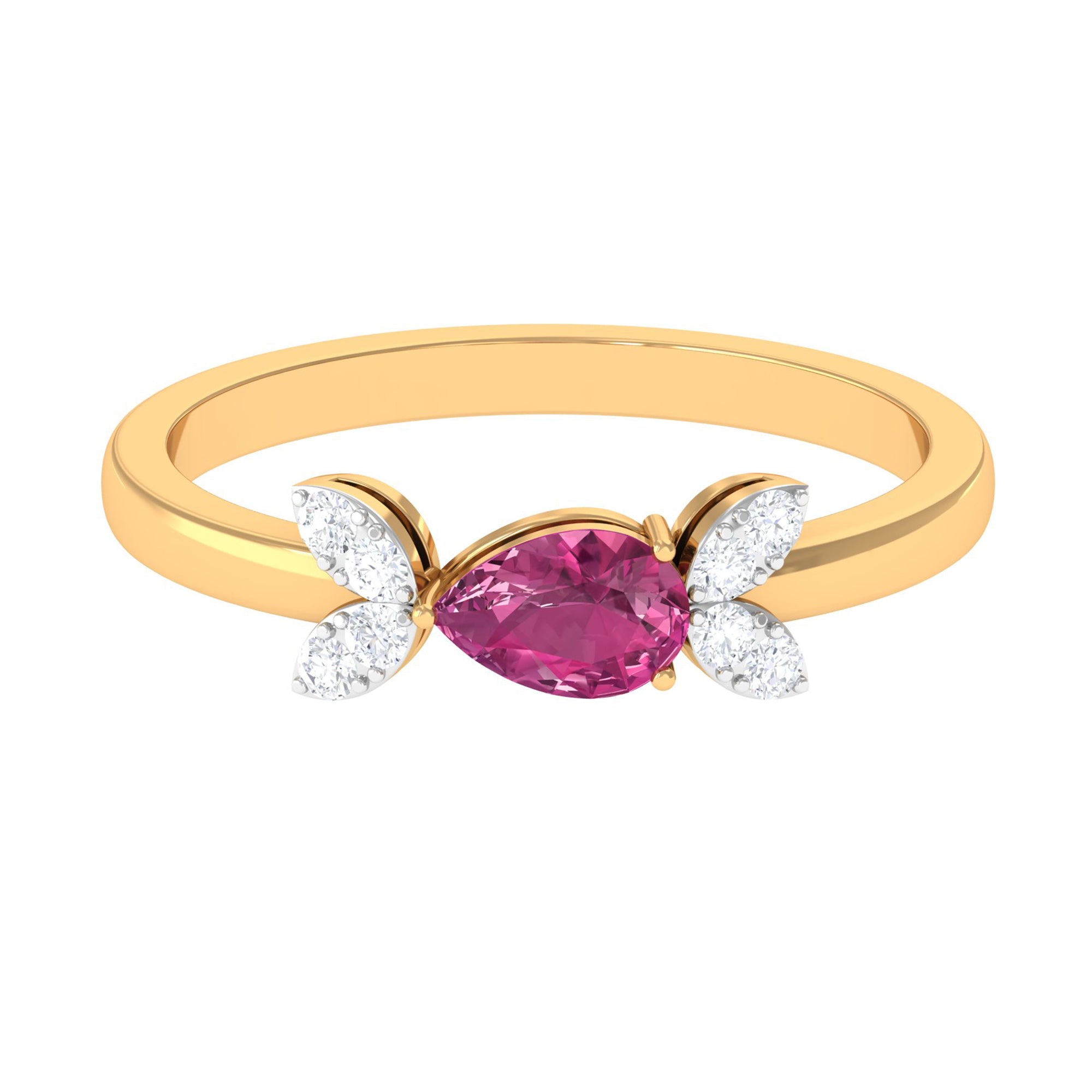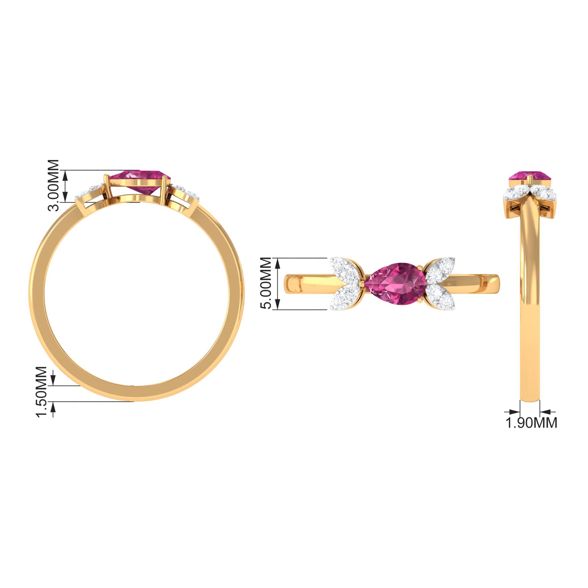Minimal Pink Tourmaline Leaf Promise Ring with Diamond