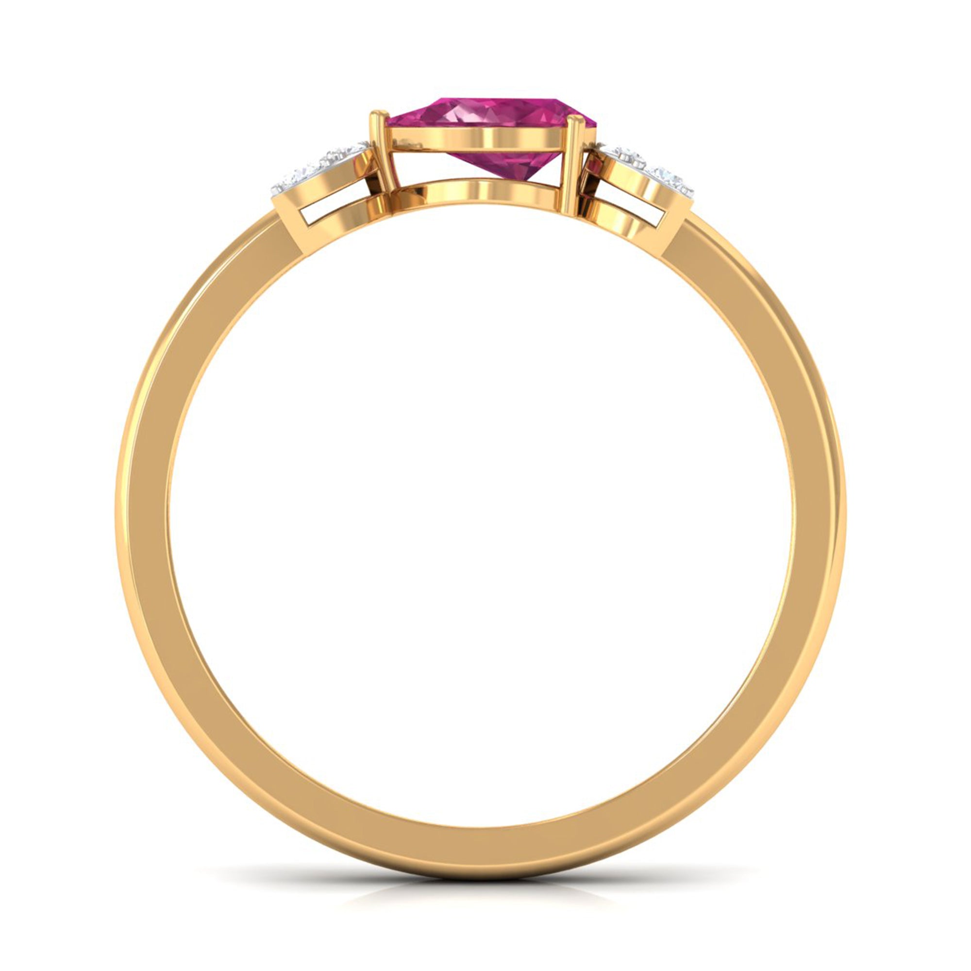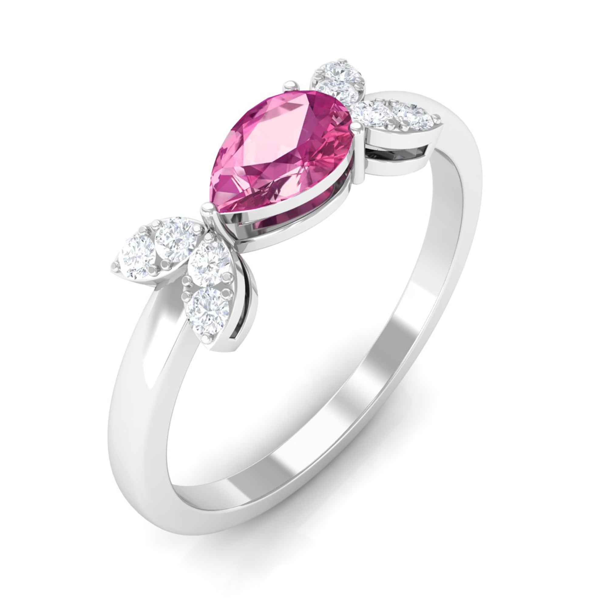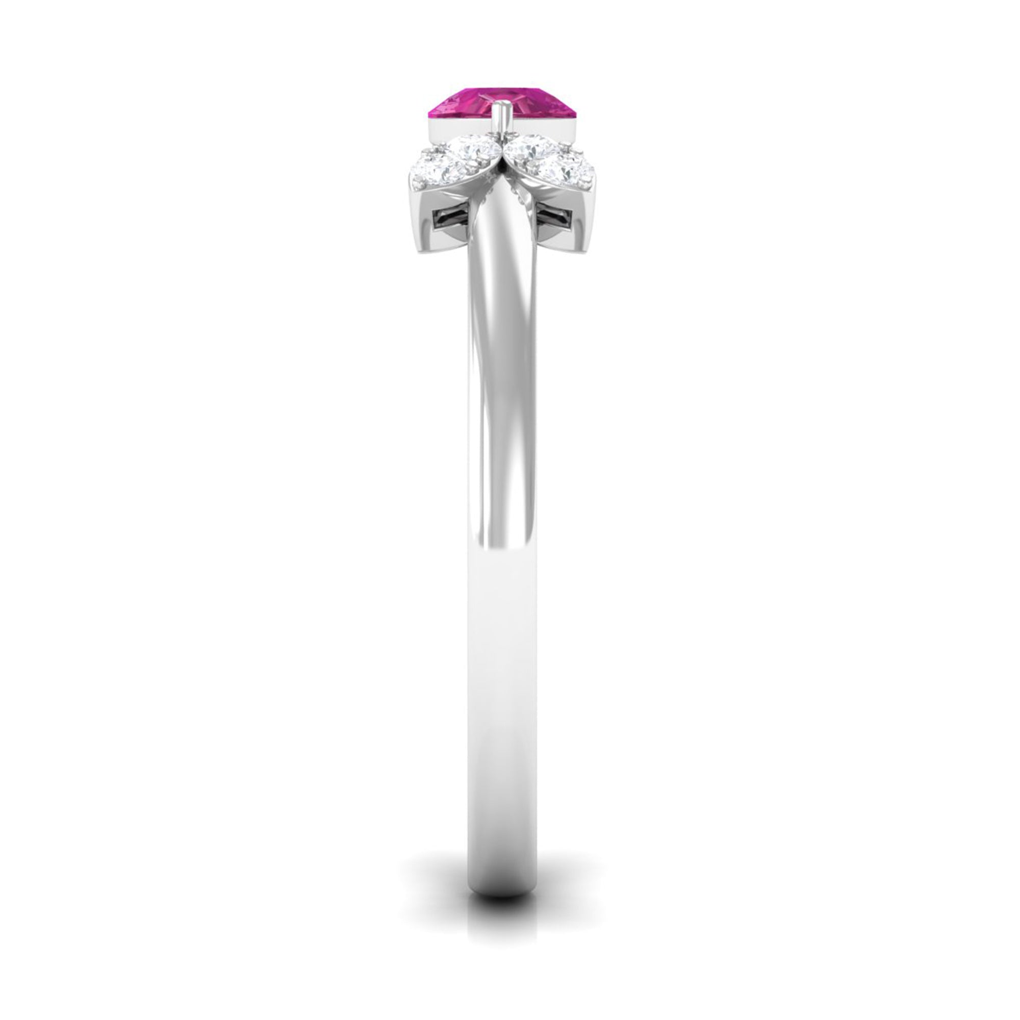 Minimal Pink Tourmaline Leaf Promise Ring with Diamond