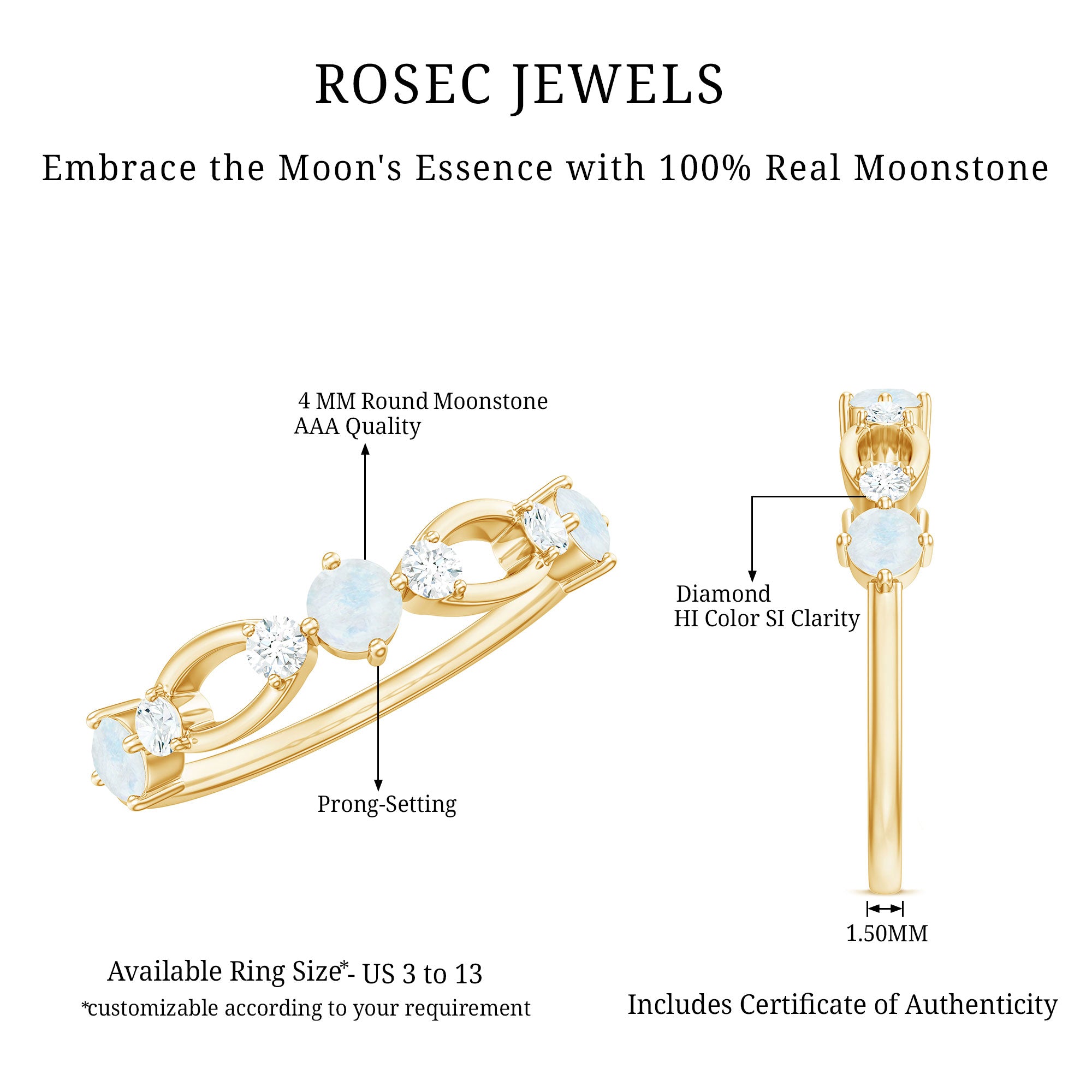 Celebrate your commitment with this Minimal Promise Ring featuring a delicate Moonstone and Diamond duo. The moonstone embodies love and emotional balance, while the sparkling Diamond adds a touch of brilliance. This minimalist design symbolizes the purity and sincerity of your promise, making it a meaningful and elegant token of devotion.