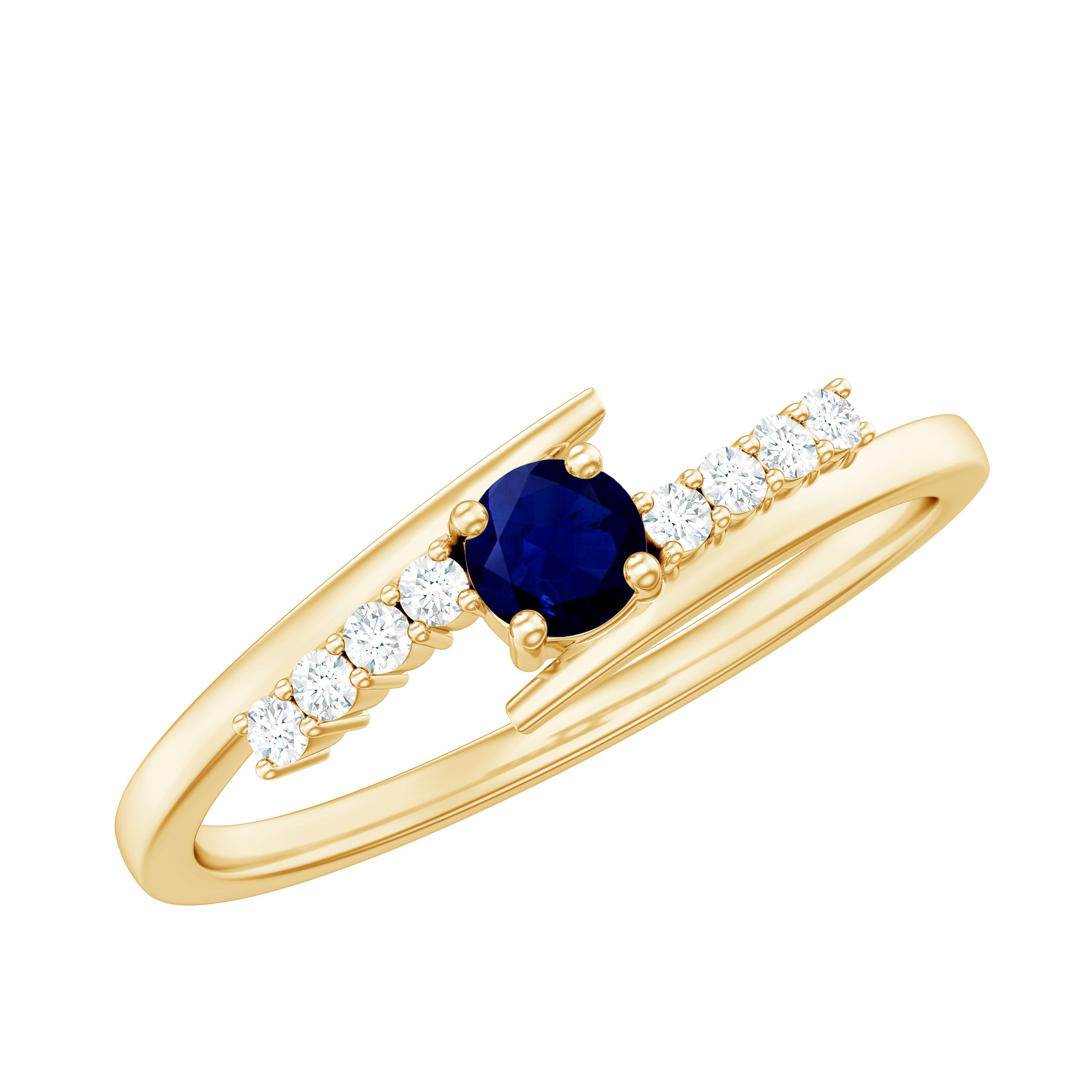 Indulge in timeless elegance with this stunning Minimal Bypass Ring. Featuring a Round Shape Blue Sapphire as the center gem and accented with sparkling Diamond stones. Its the perfect addition to any jewelry collection.