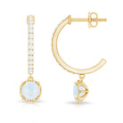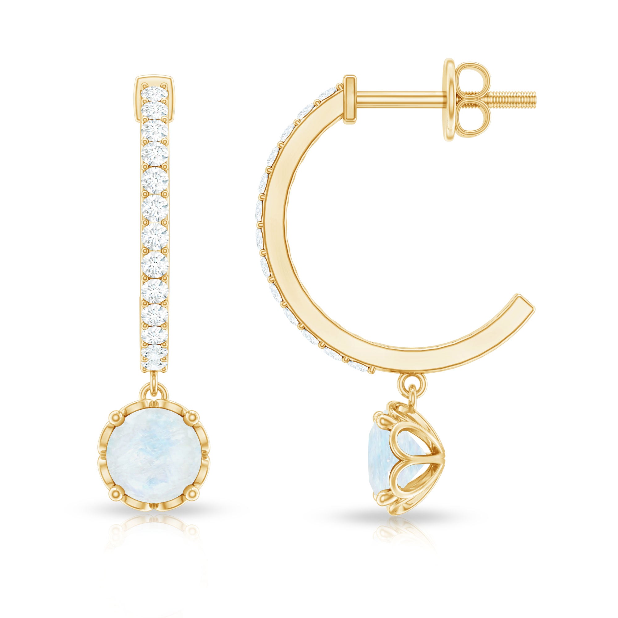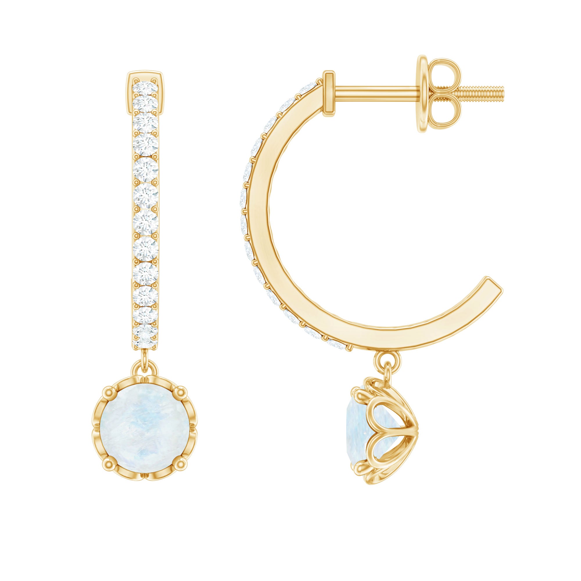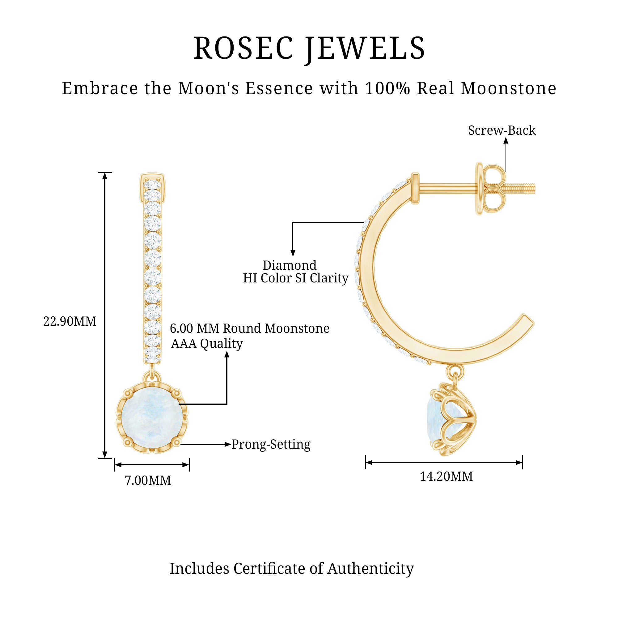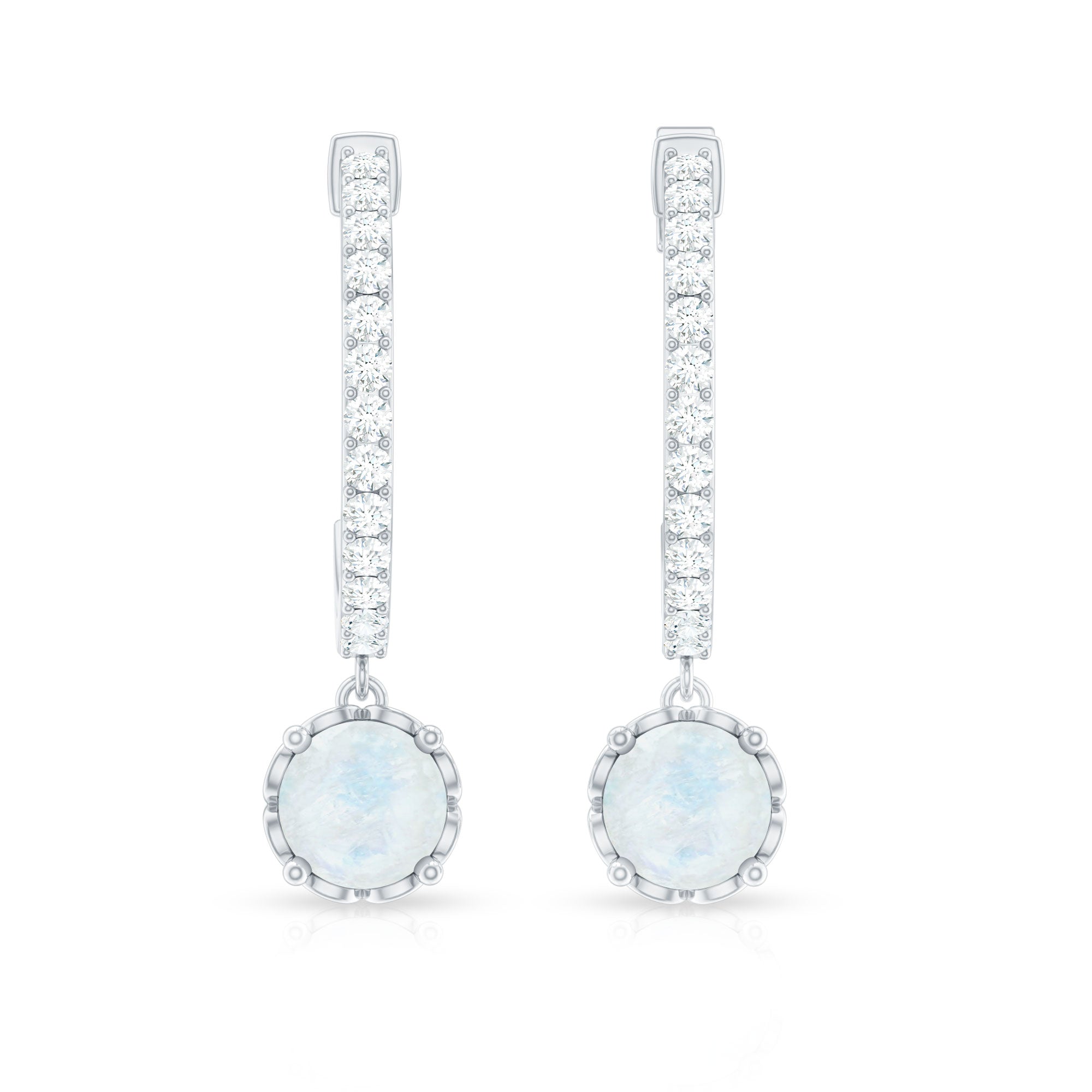 Minimal Round Moonstone Hoop Drop Earrings with Diamond