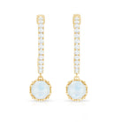 If youre seeking a grand gift for your special someone, look no further than these stunning Moonstone Drop Earrings. They feature Round Shape Moonstone drops securely held in a Prong Setting, while the half hoop is adorned with shimmering round Diamond stones in a Pave Setting. These hoop earrings add a touch of sophistication and charm to your look, making them the ideal choice when you want to dazzle without needing extra accessories.
