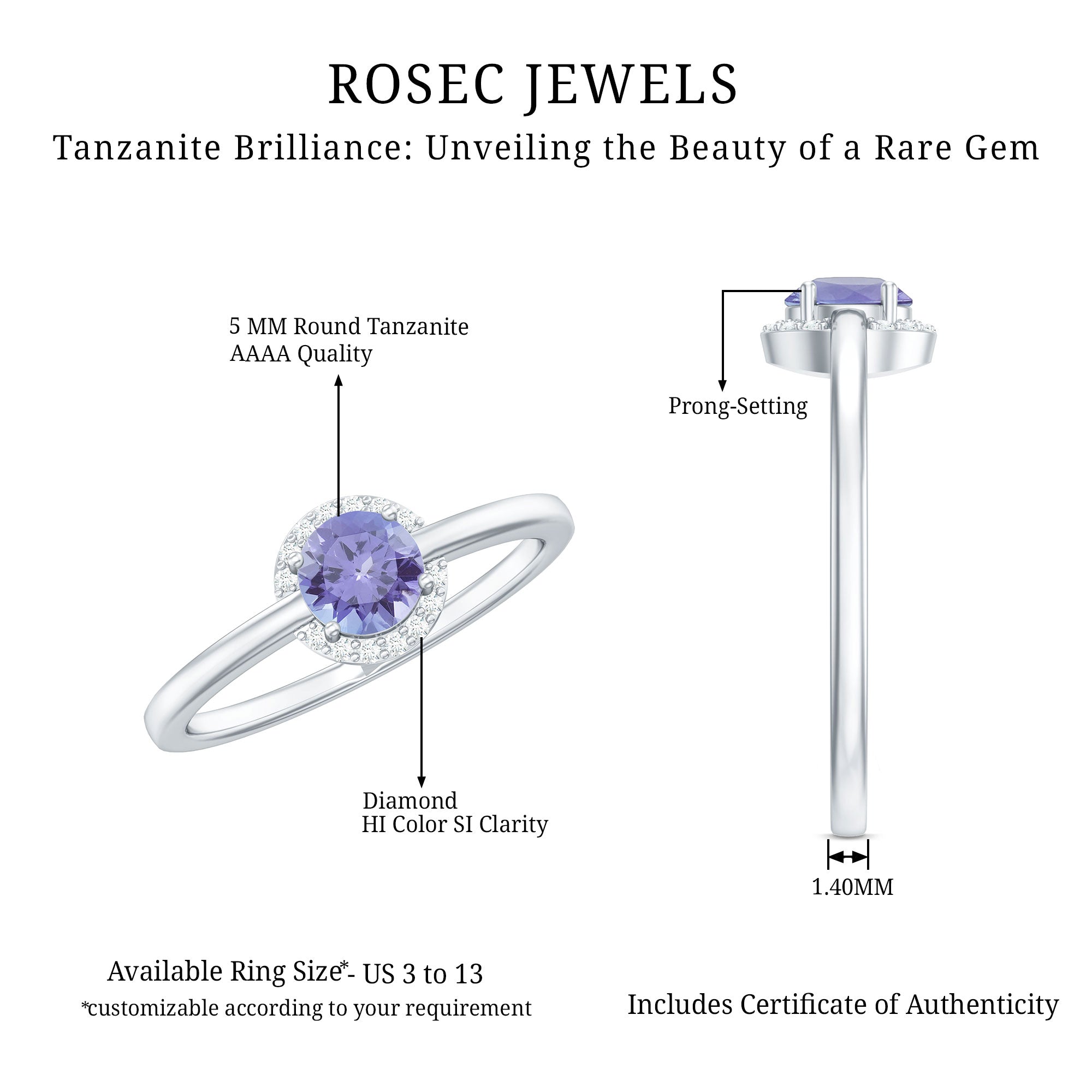The minimalistic appeal of this Tanzanite Engagement Ring is enchanting. Round Tanzanite Ring is crafted for luxurious appeal. Make your special day much more memorable with this stylish ring. The twinkling sparkle of this Diamond halo is mesmerizing. Get this alluring piece of fine jewelry from our store today.