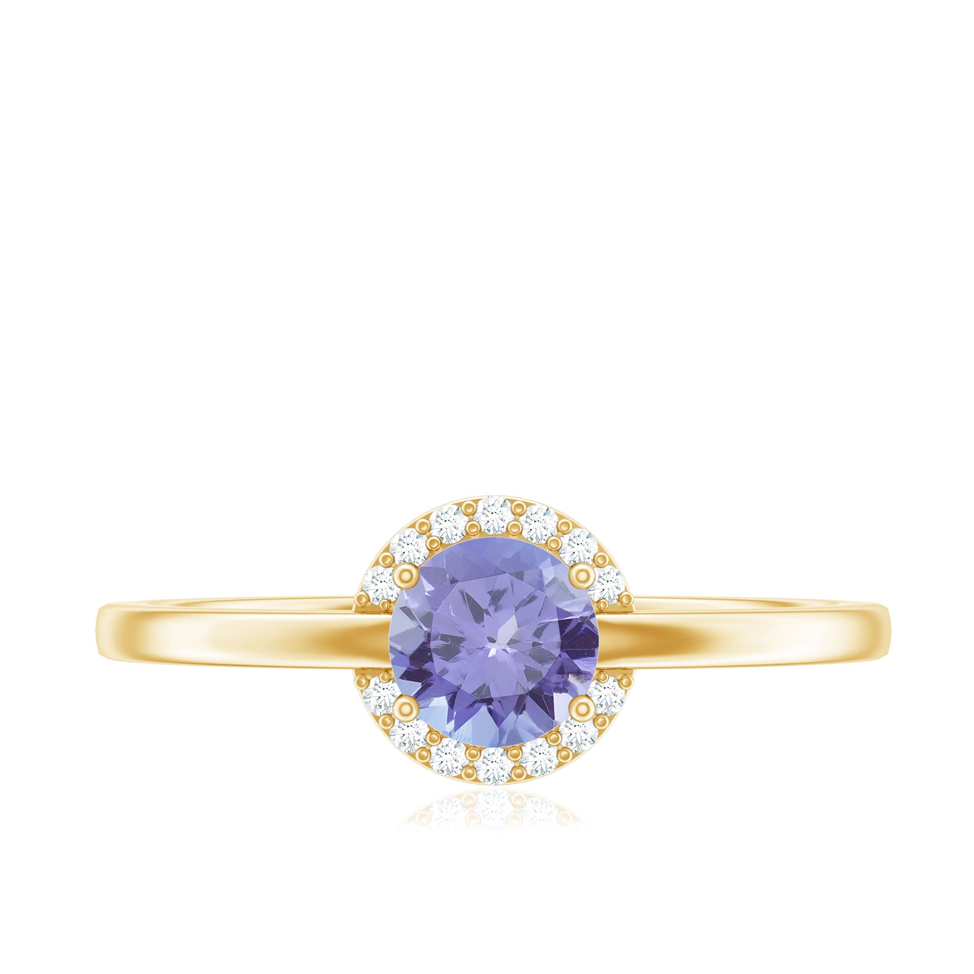 Minimal Round Tanzanite Engagement Ring with Diamond Halo