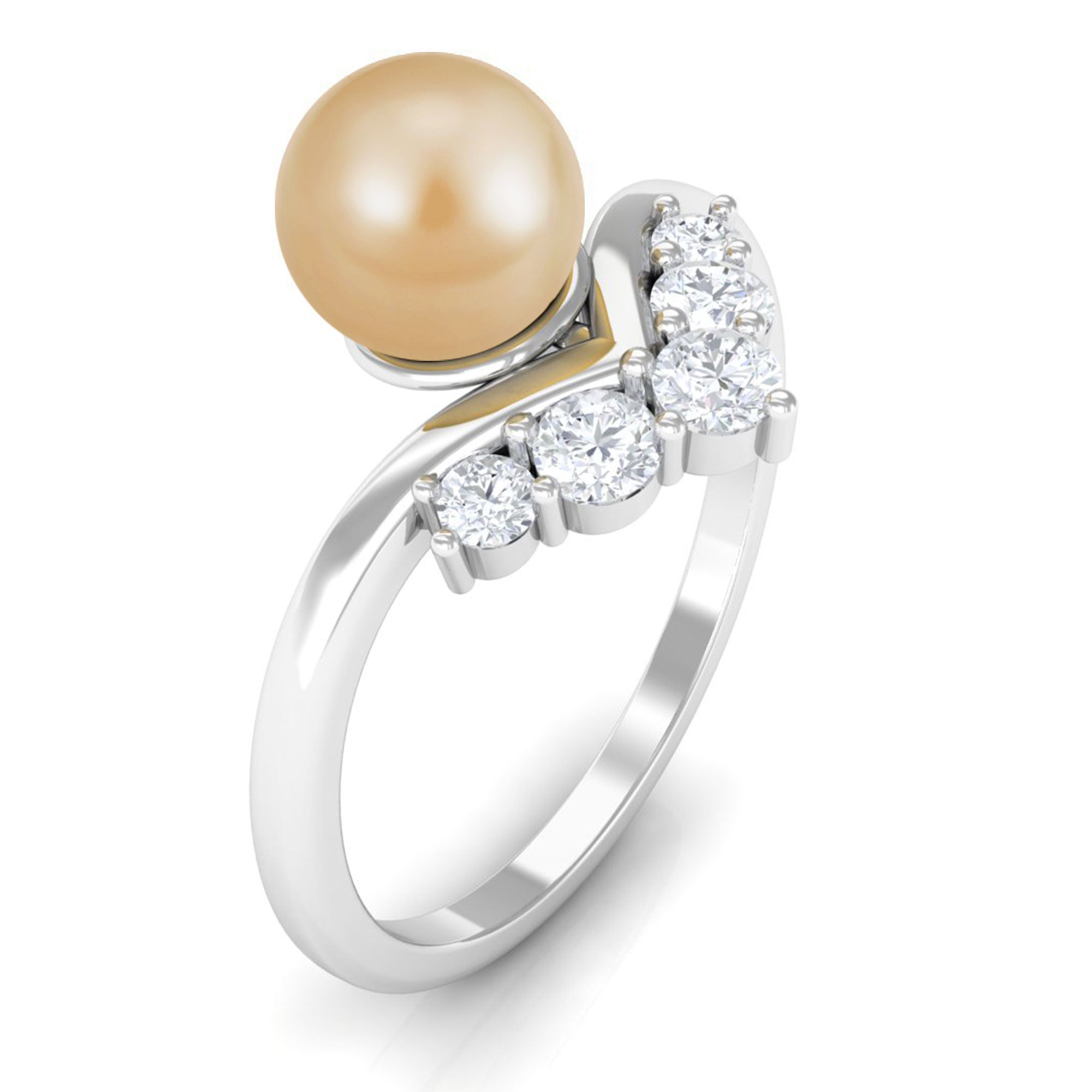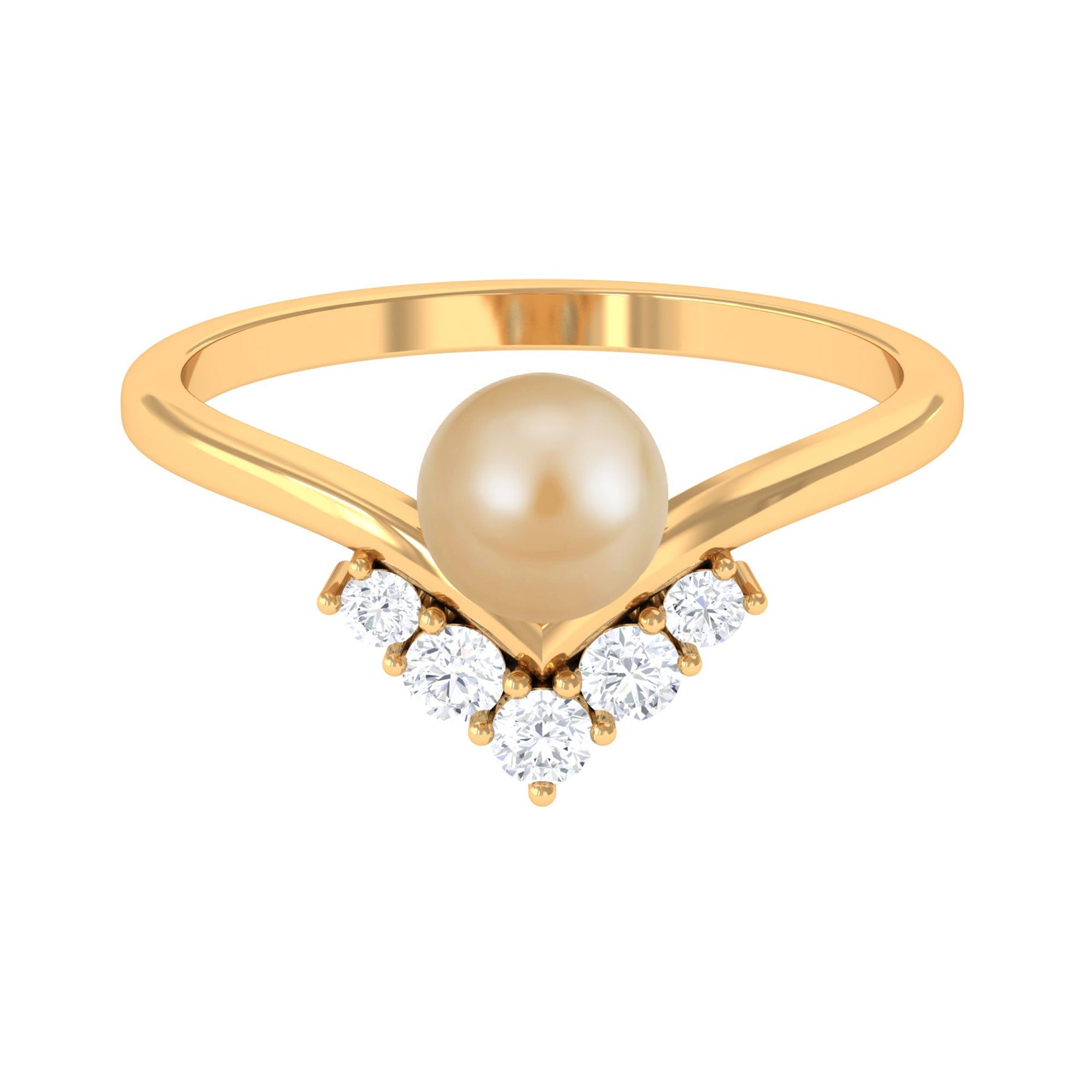 Minimal South Sea Pearl and Diamond Chevron Engagement Ring
