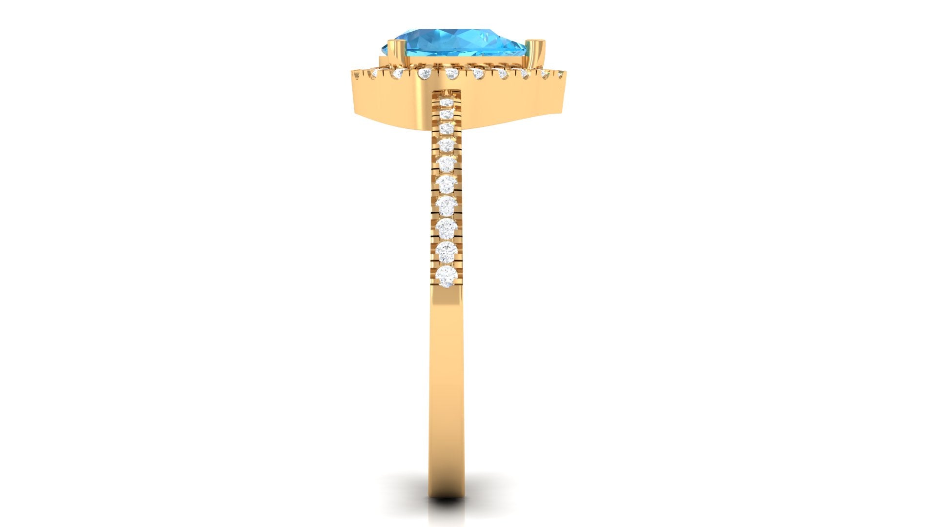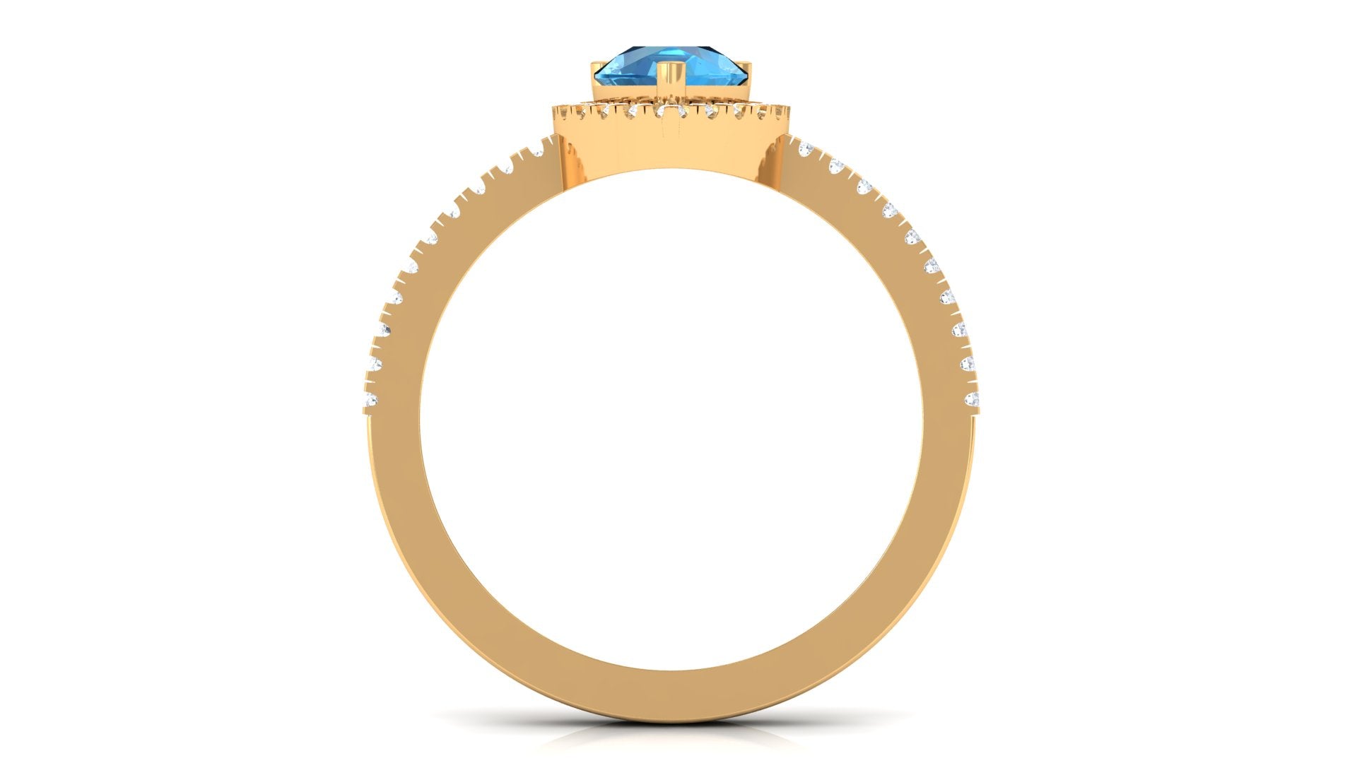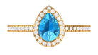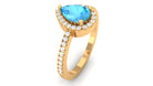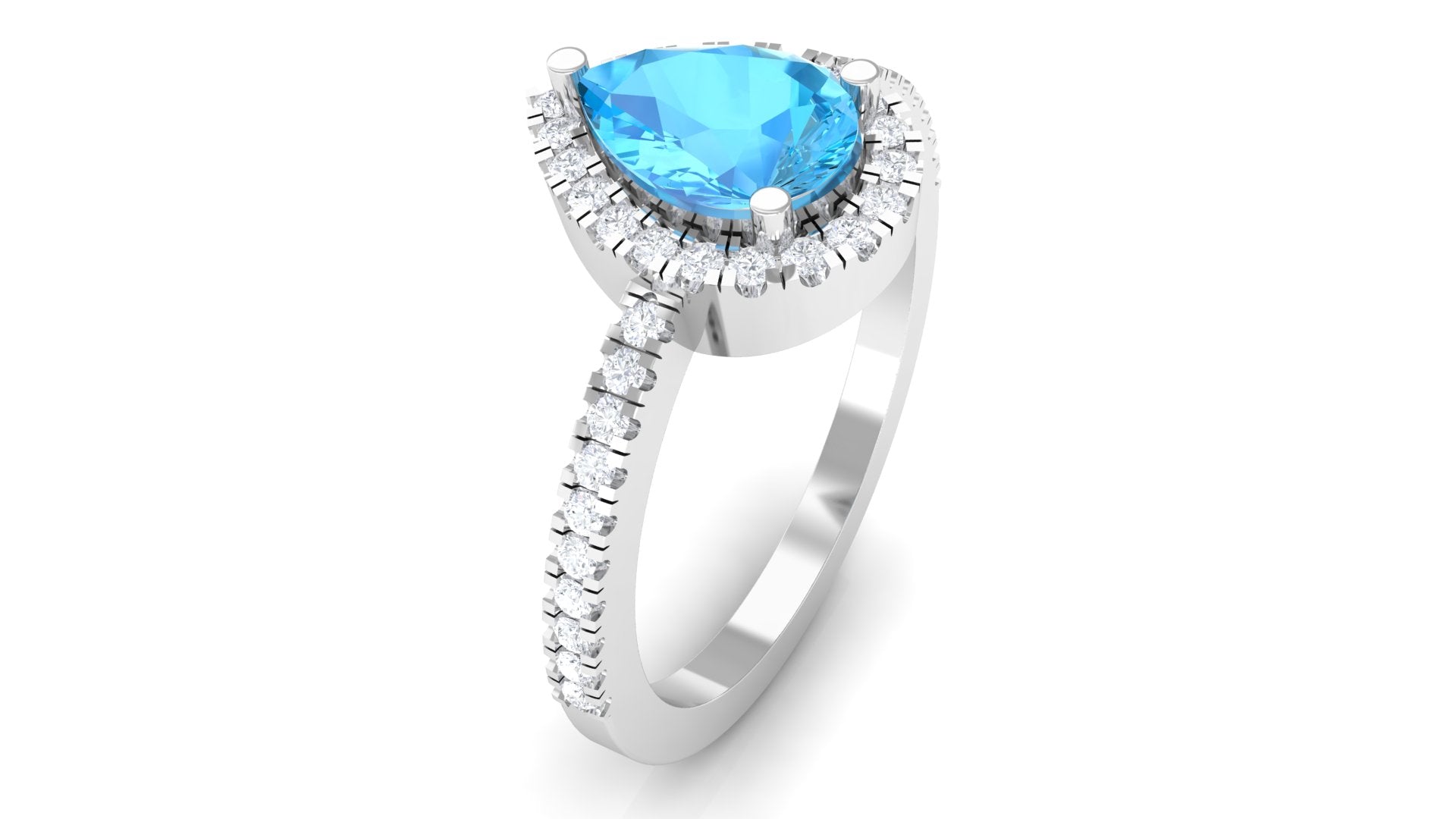 A stunning and timeless Teardrop Engagement Ring with a beautiful design would make a wonderful gift for your significant other. This understated yet elegant engagement ring features a Pear Cut Swiss Blue Topaz at the center, surrounded by a Halo of Round Diamond and Side Stones. The Swiss Blue Topaz Engagement Ring is crafted with Gold Metal for a luxurious finish.