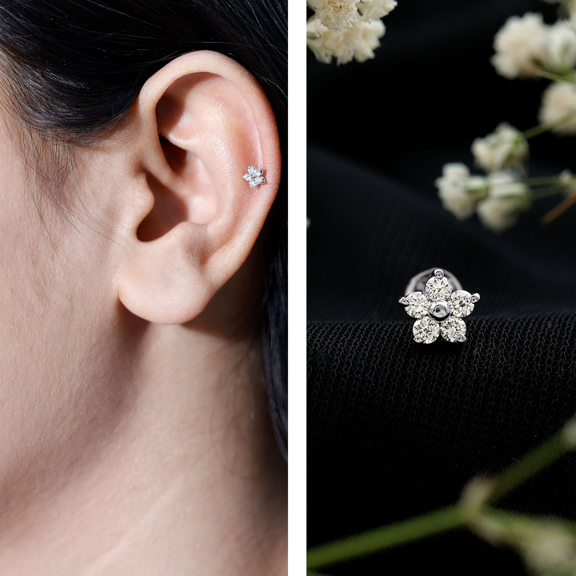 - You can simply slide this diamond floral earring into your Helix, Cartilage, or Upper Lobe Piercing. Style this elegant diamond earring with your casual or dressy attire, to stand out from the crowd.