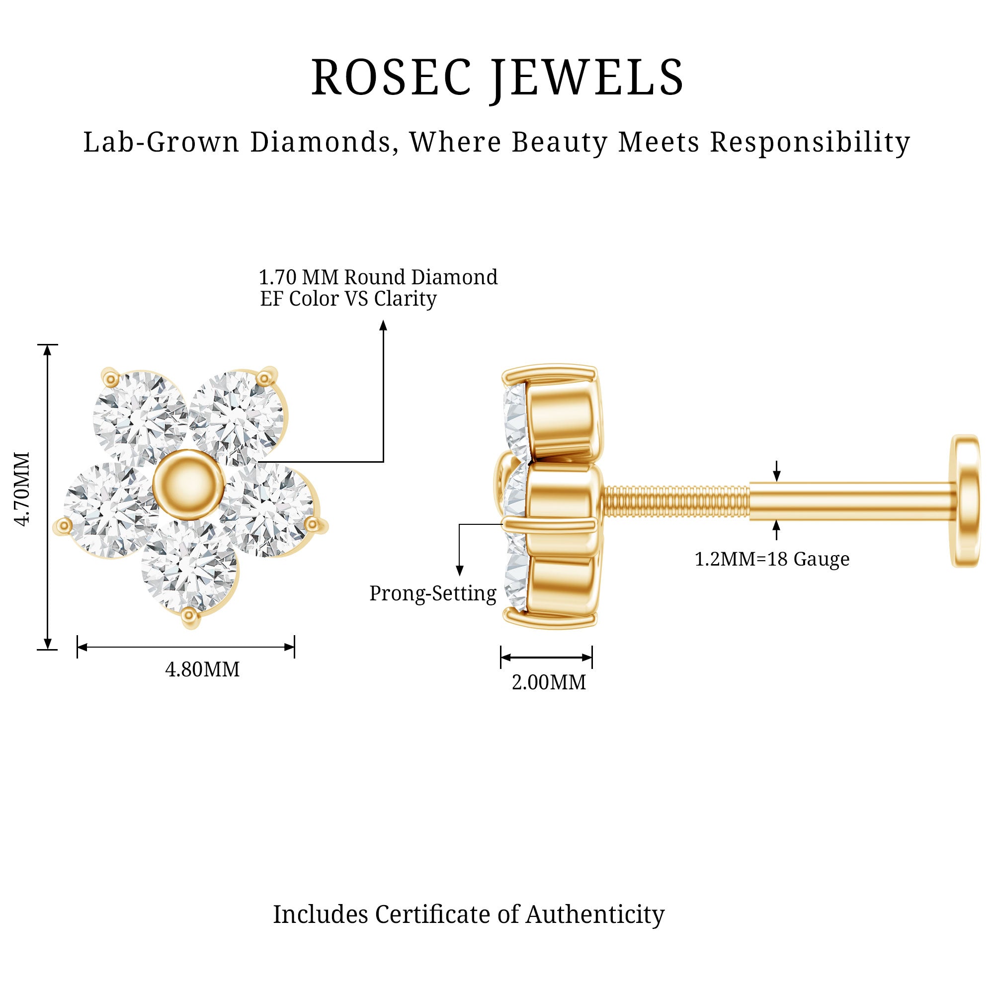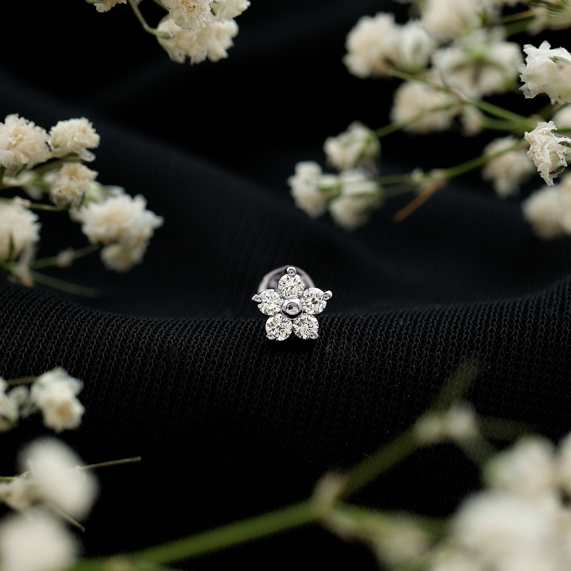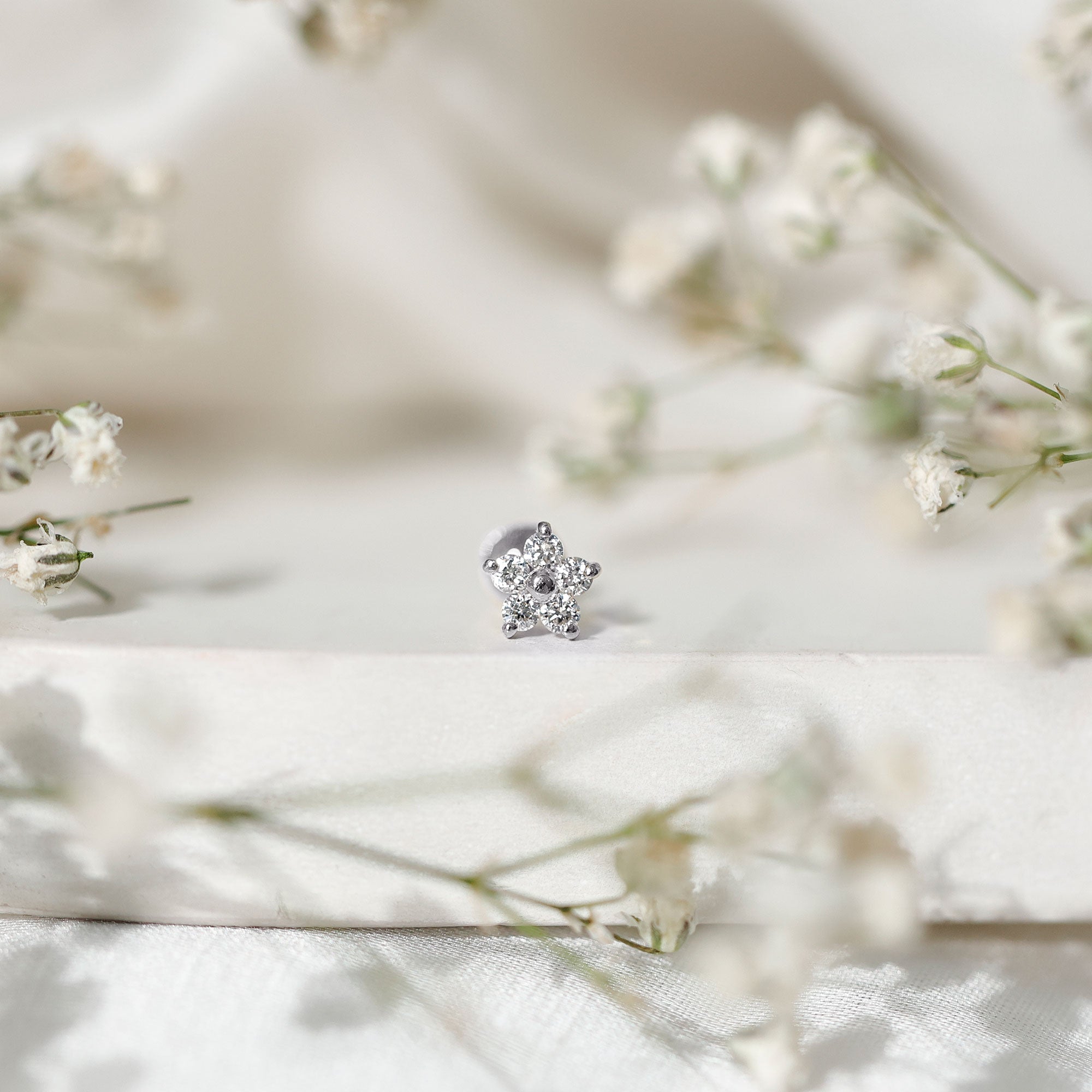Minimalist Diamond Flower Tragus Earring with Flat Back