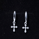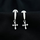 Minimalist Moissanite Cross Drop Earrings in 14K Gold Plated Silver