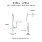 These Moissanite Drop Earrings are the symbol of faith and spirituality, crafted precisely for your ears. The earrings feature a metallic cross frame embedded with Round Shape Moissanite placed securely. The cross is dangling from a curved metallic bar, which gives it a drop down look. These Cross Earrings are perfect to be styled on the occasion of Christmas and easter. These pair of earrings have a screw back closure which keeps it on place throughout the day. These Dangling Earrings can be a perfect present for your special one to celebrate their faith.
