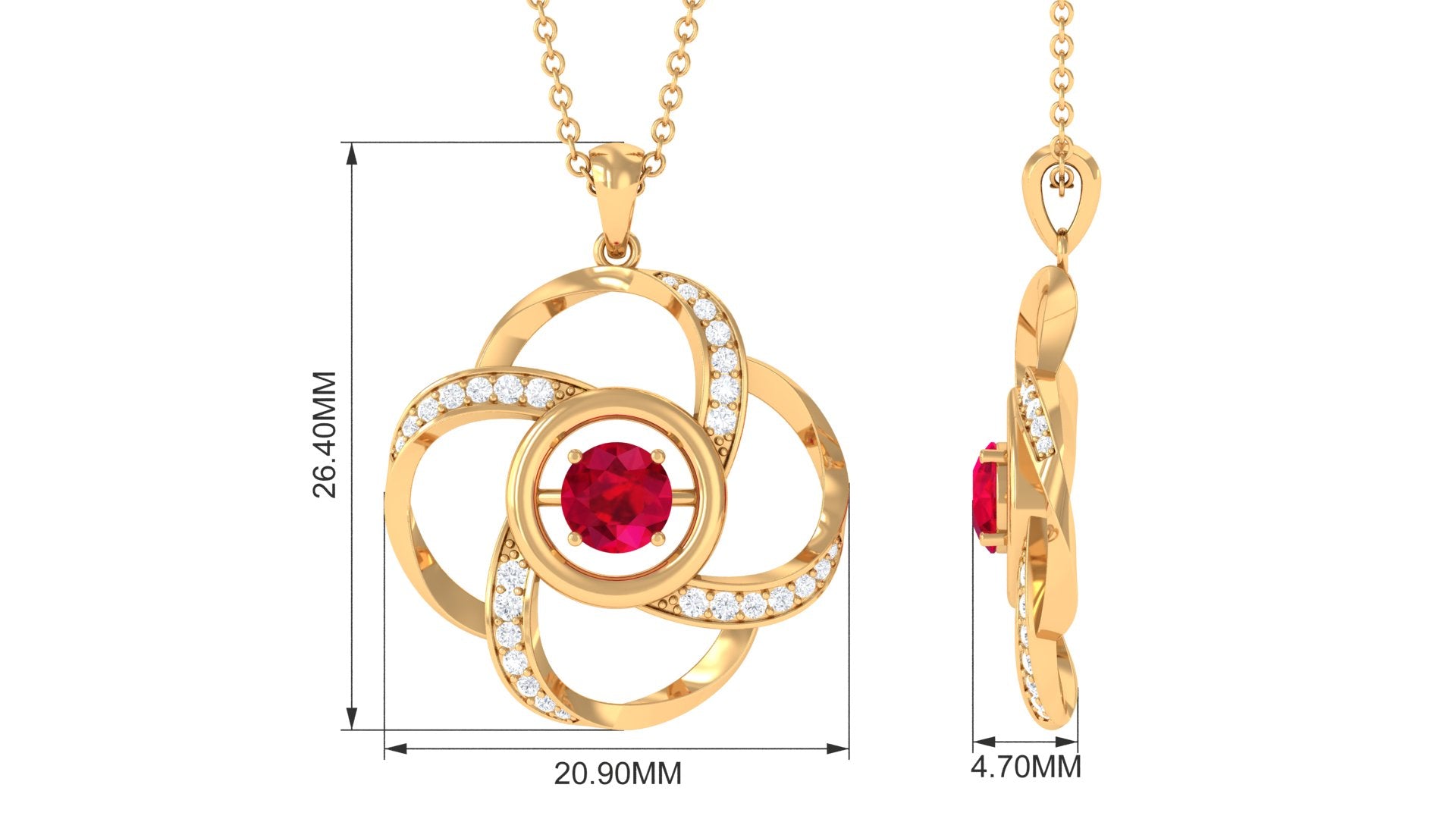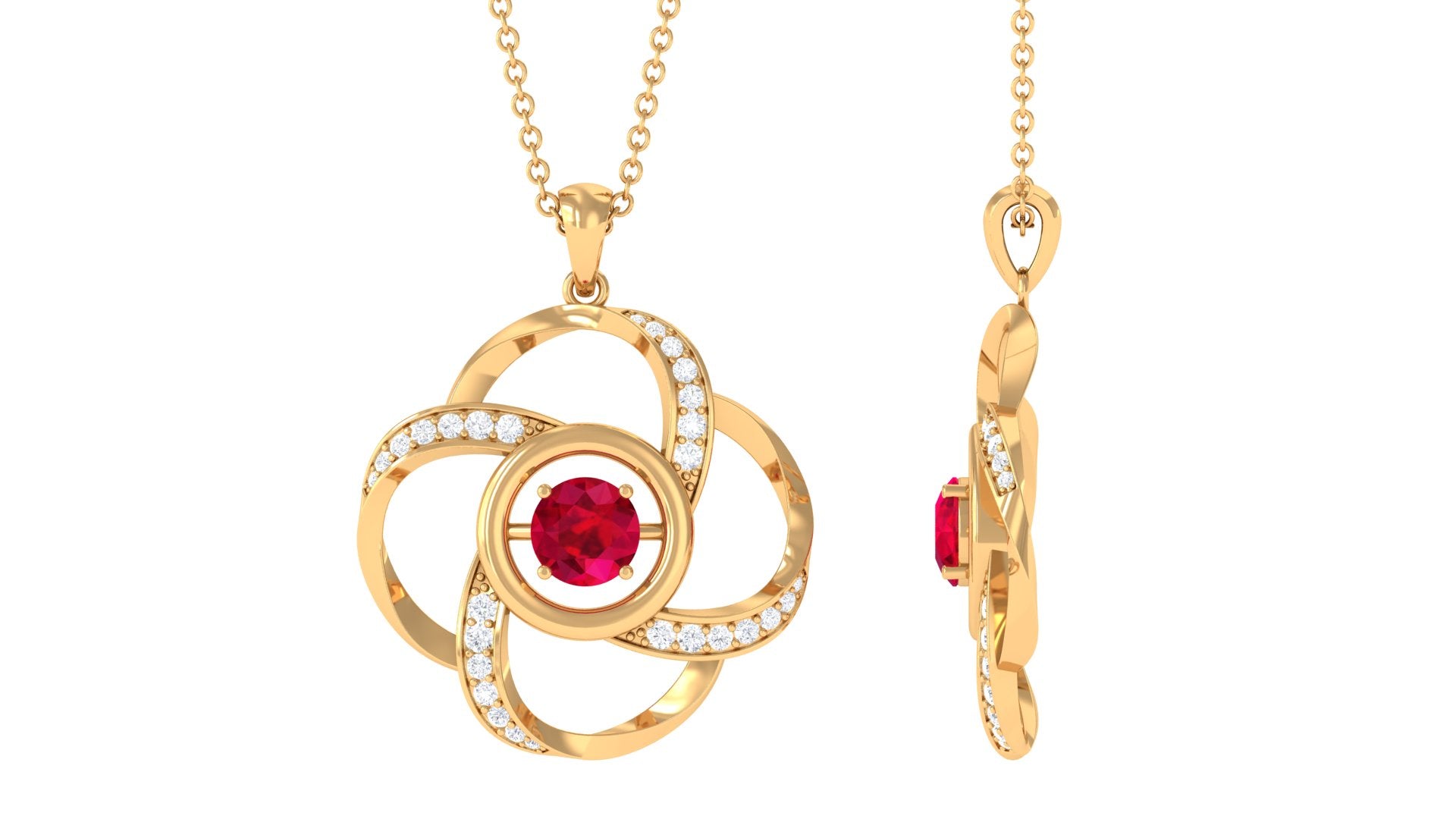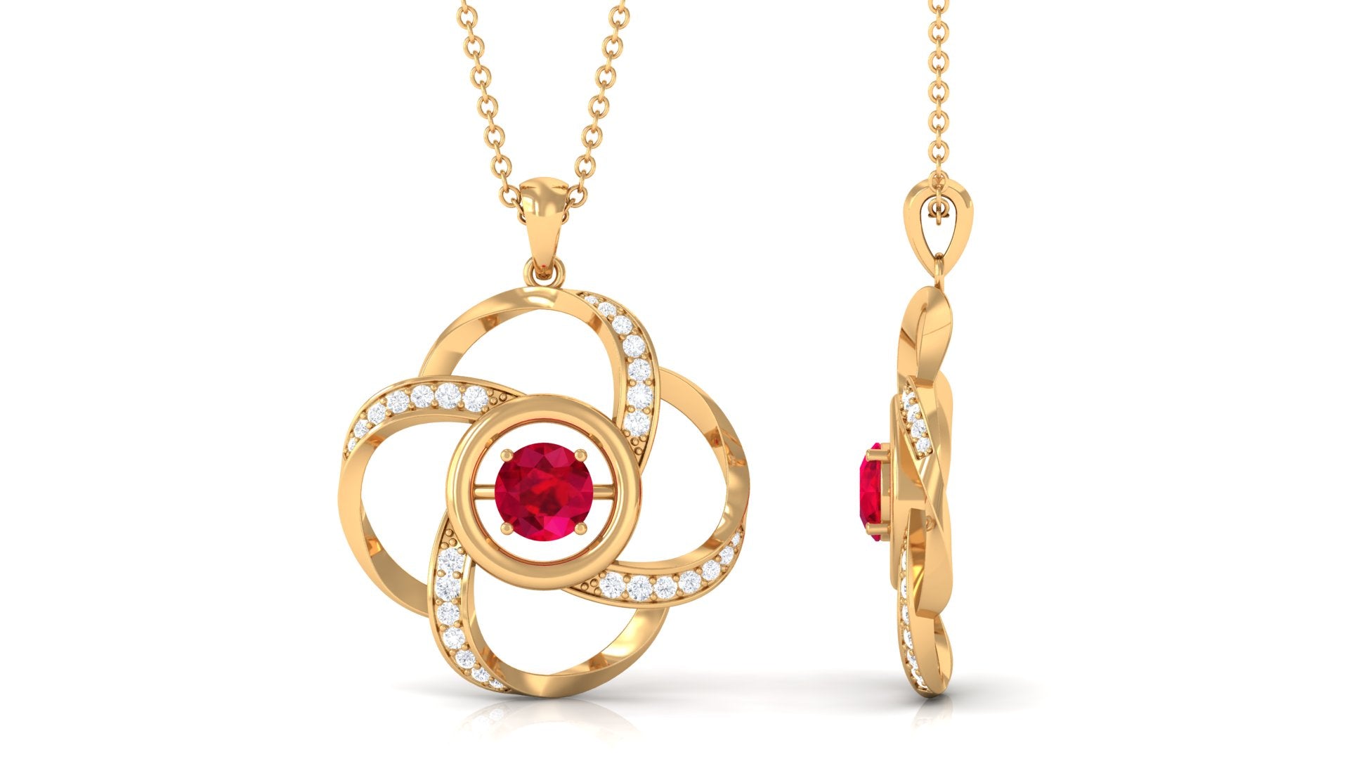 Modern Flower Pendant with Round Created Ruby and Diamond