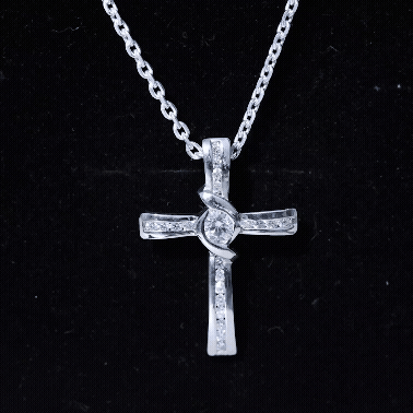 Moissanite Catholic Cross Necklace with Silver Chain