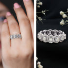 Mark your special day with this Moissanite Wedding Ring. It features Round Shape Moissanites encircled with petite moissanite delicately placed in Prong Setting. This Eternity Band Ring perfectly blends timeless sophistication and modern elegance. This Halo Wedding Band exudes sparkle and radiance making it perfect for exchanging wedding vows. Present this Classic Wedding Ring to your lady which represents eternal love and unparalleled beauty. This band ring beholds the adorable shine of D-VS1 Quality Moissanites that makes the day memorable forever.