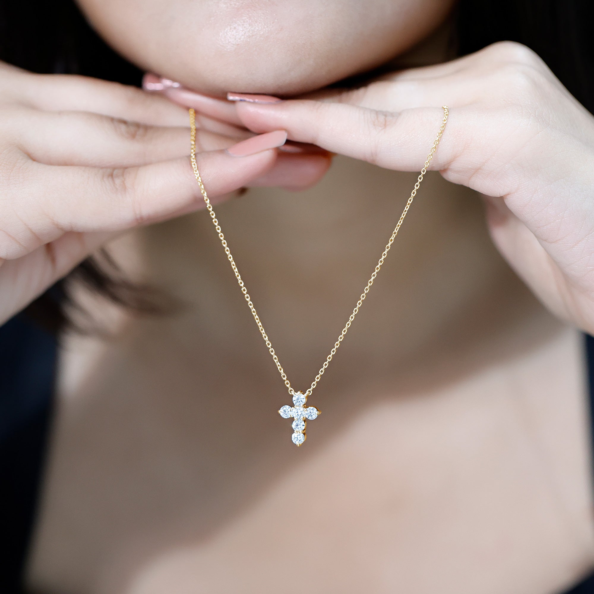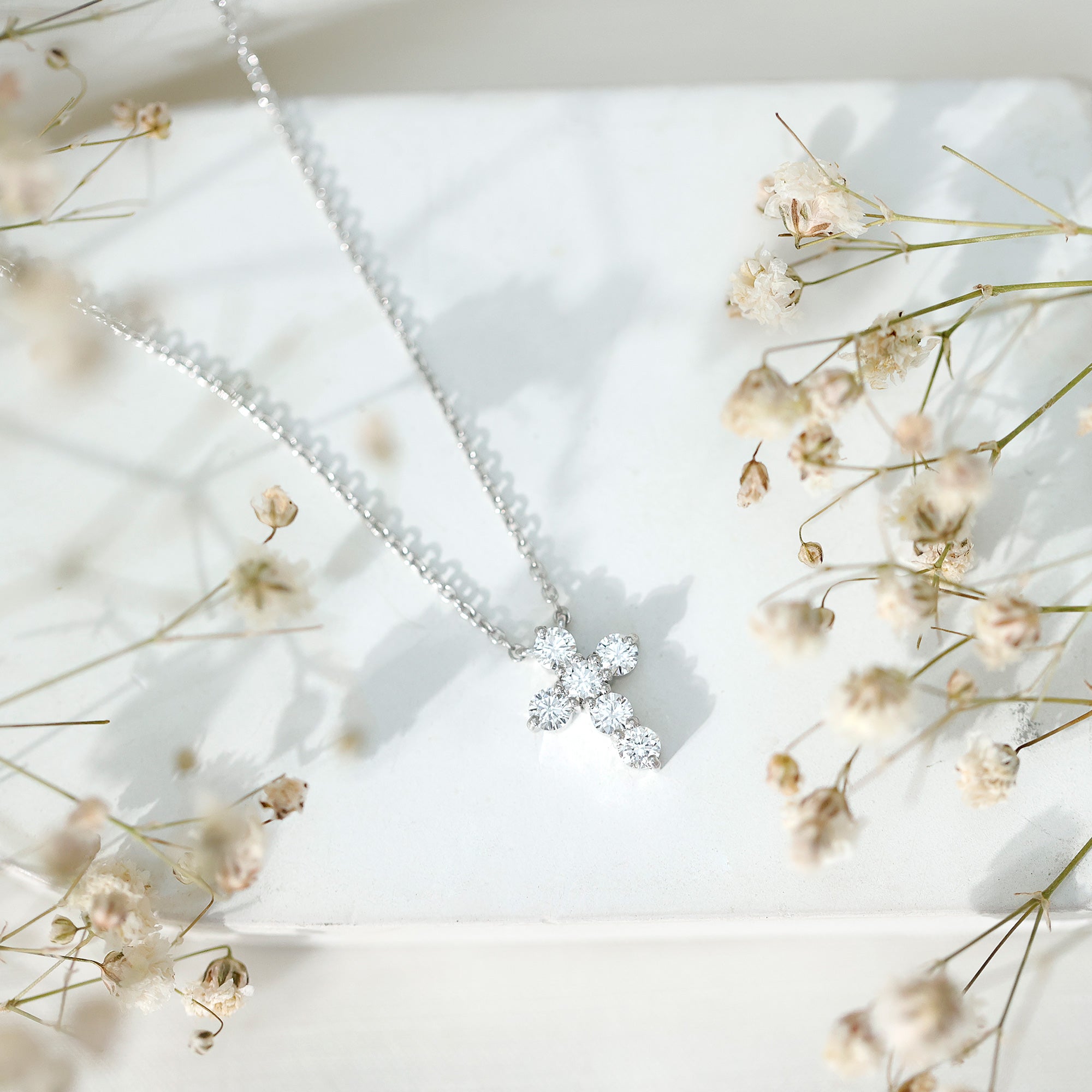 Let a piece of you shine with this meaningful symbol of Moissanite Pendant that reflects your most spiritual beliefs. The Round Cut Moissanite in Prong Setting on Cross Necklace also makes a present for yourself or the one who is very close to your heart. Protecting from evil this Moissanite Cross Necklace is also a jewelry for all occasions.