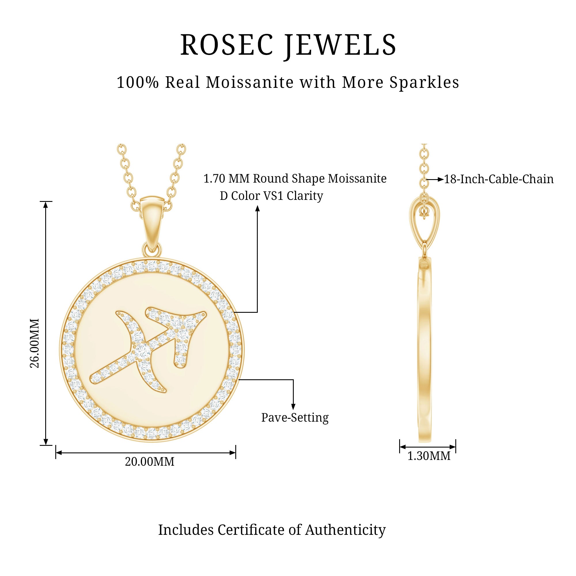 Moissanite Disc Sagittarius Zodiac Sign Pendant Necklace