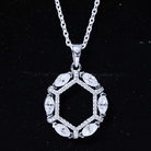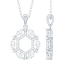 This Moissanite Pendant is the epitome of radiance and elegance, which highlights the neckline. It features an open Hexagonal frame studded with smaller Moissanite and encircled by the Marquise Shape Moissanite securely placed in Prong Setting and precisely crafted with 14K White Gold Plated Silver. This Designer Pendant is accentuated with a standard bail and holds the classic shine of D-VS1 Quality Moissanite, which makes it perfect to complete the look for the special day. The pendant hangs with the sturdy cable chain, which makes it perfectly sit on the neckline.