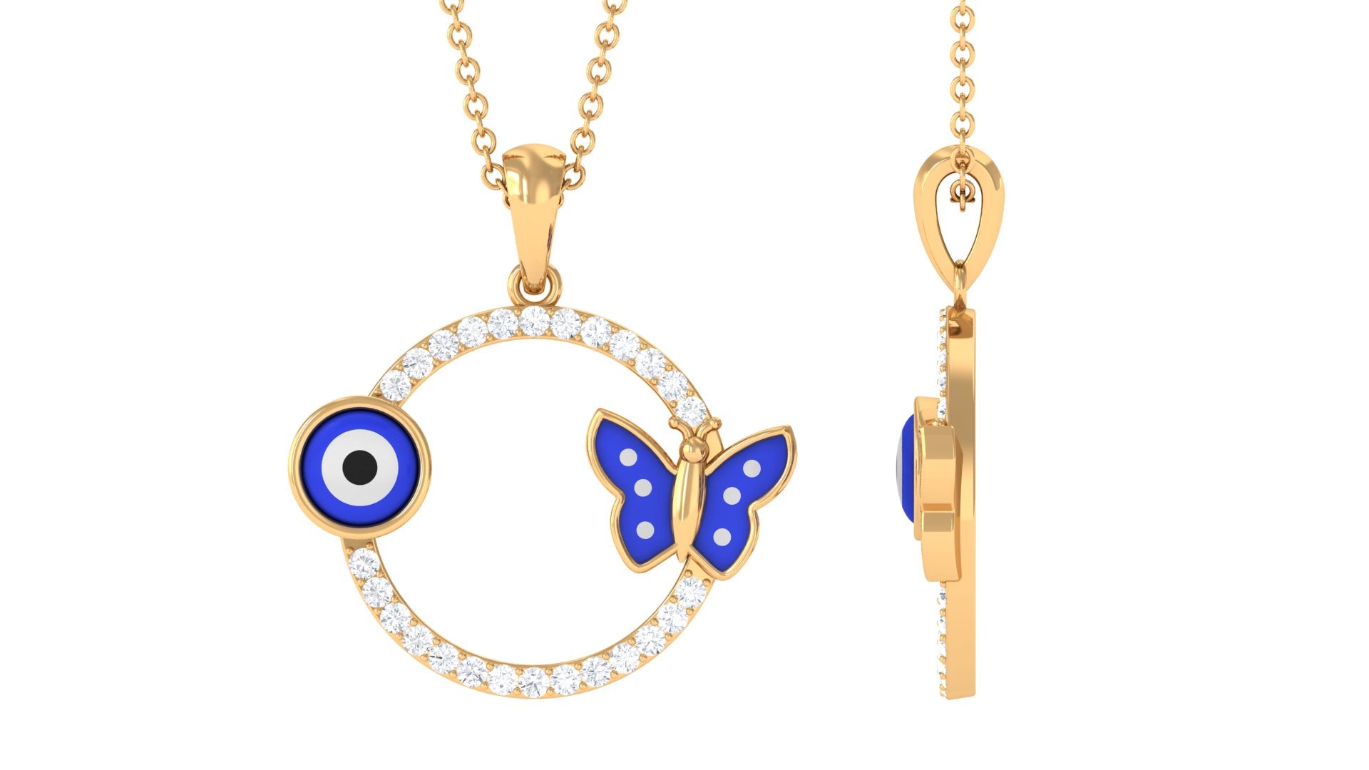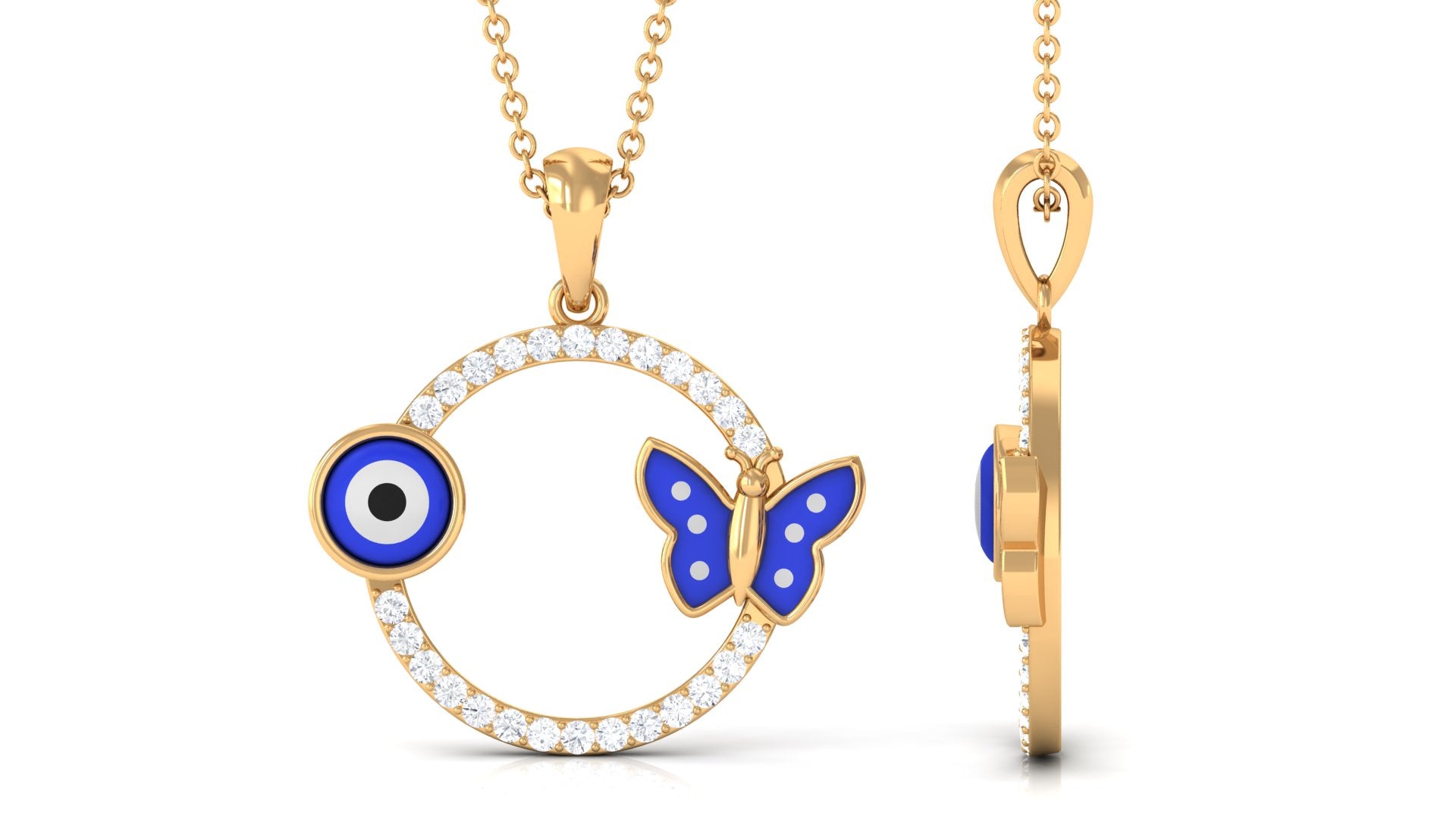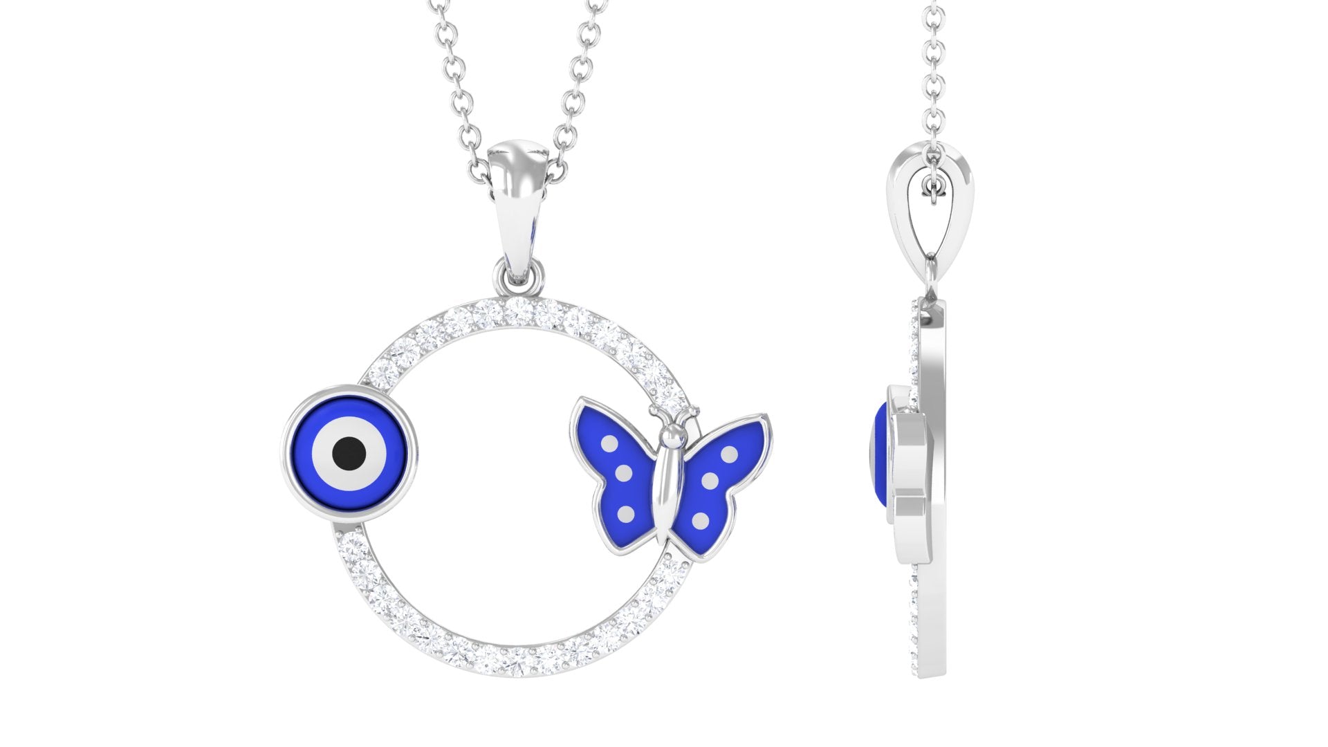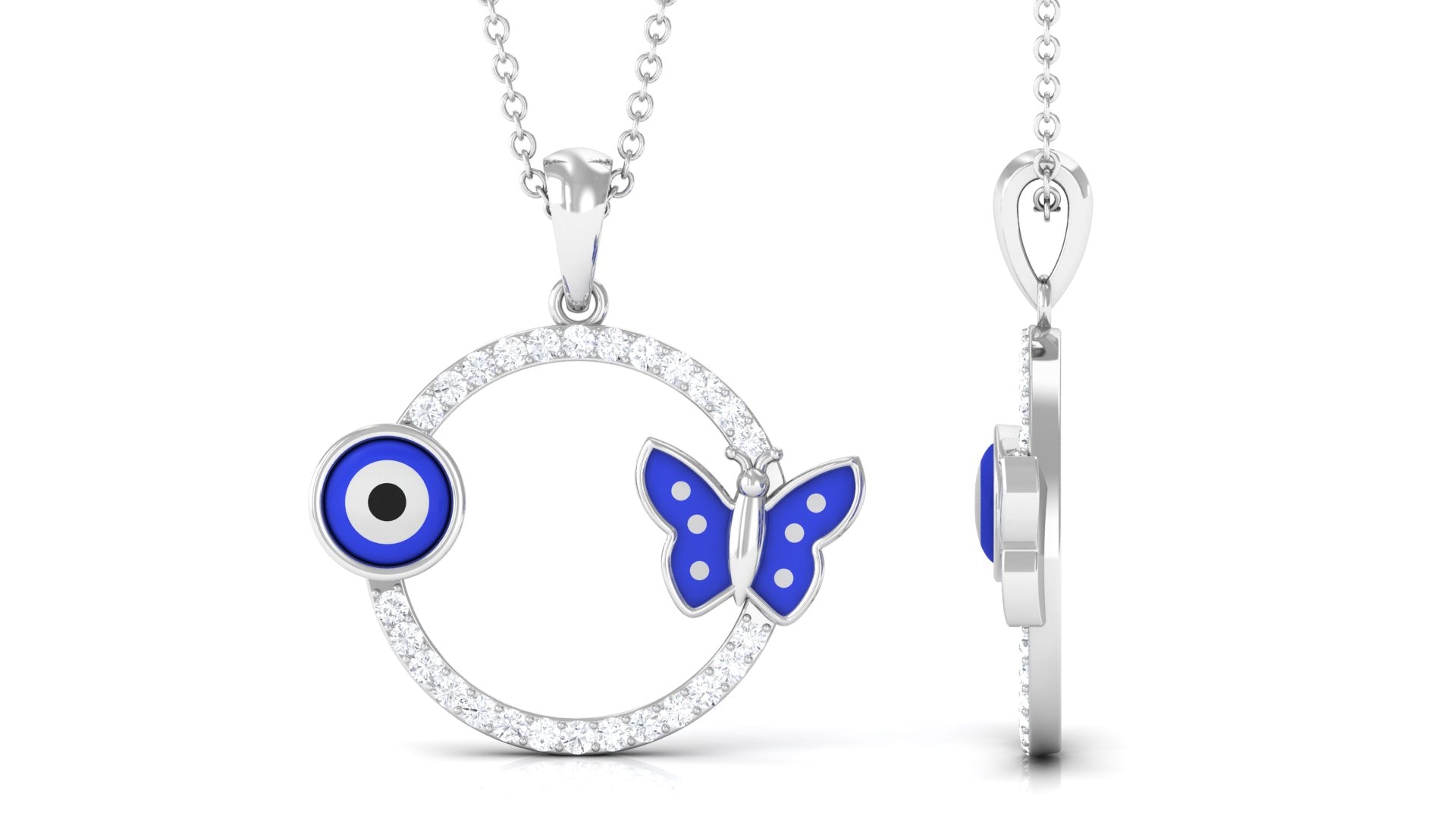 Moissanite Eternity Pendant with Enameled Evil Eye and Butterfly