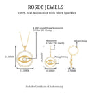 This unique Moissanite Evil Eye Pendant Necklace and Earrings Set is the perfect way to add a touch of sparkle and protection to your style. The necklace features an evil eye sparkling moissanite center stone surrounded by small moissanite encrusted in a circle. The matching earring features a 3x3 mm sparkling moissanite center stone and is surrounded by encrusted small moissanites. This eternity pattern makes it a unique piece of jewelry in a drop style.