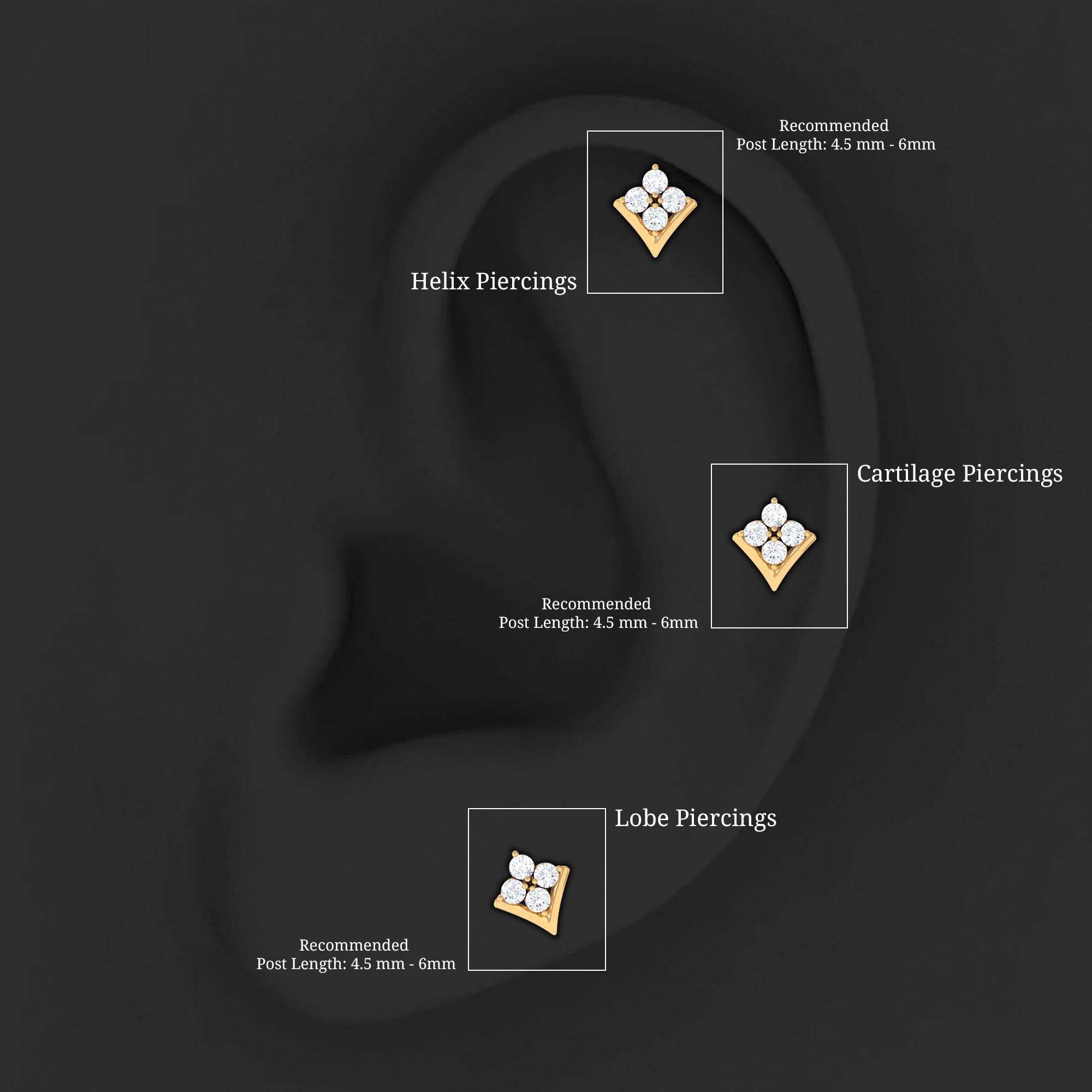 This Moissanite Floral Cartilage Earring is embellished with Round Cut Moissanites assembled in a Floral Design, crafted with Gold for a shiny appearance. Wear it on your Helix, Cartilage, Tragus, or Upper Lobe Piercing. Whether worn alone or paired with other pieces, this Floral Earring is sure to become a cherished treasure that youll love wearing for years to come.