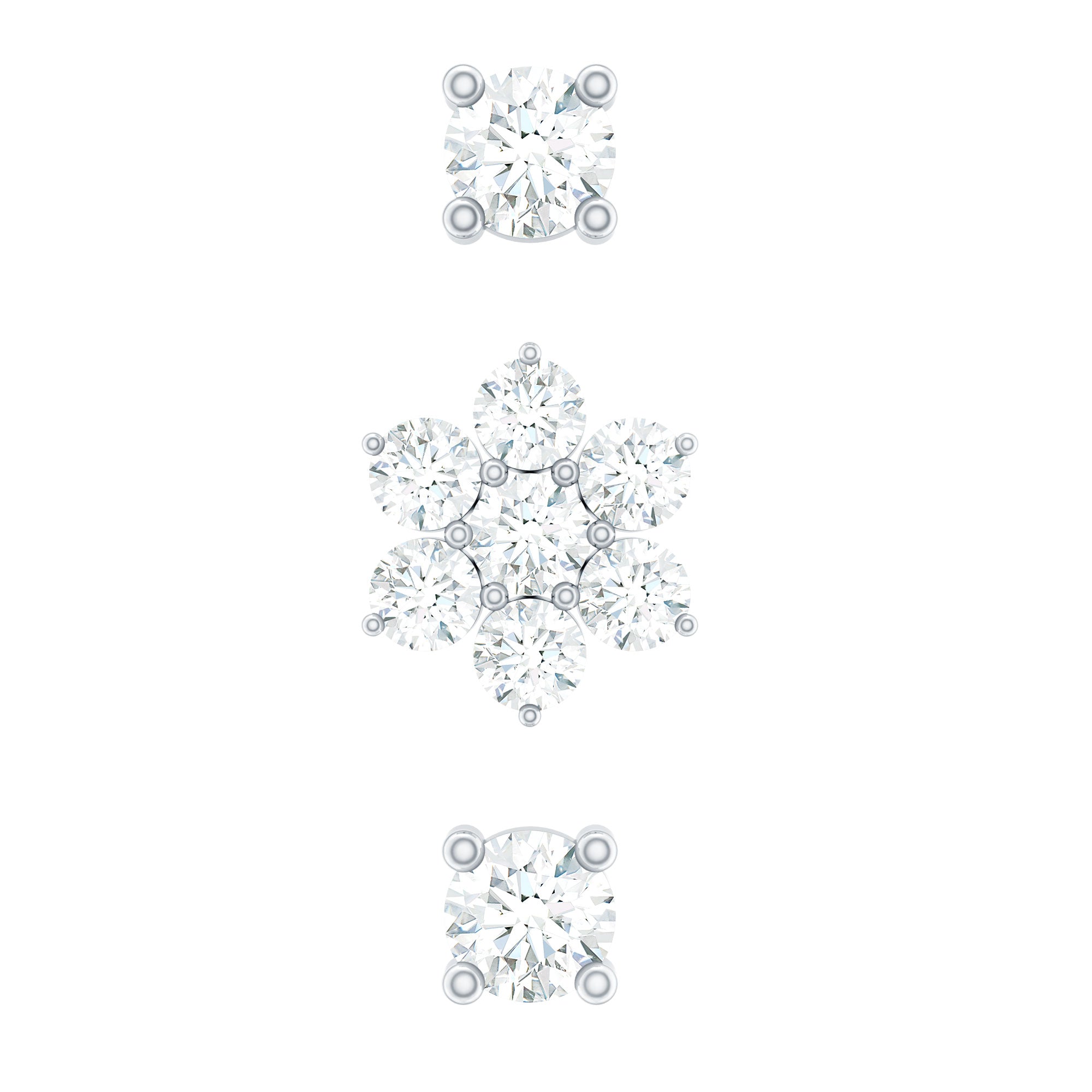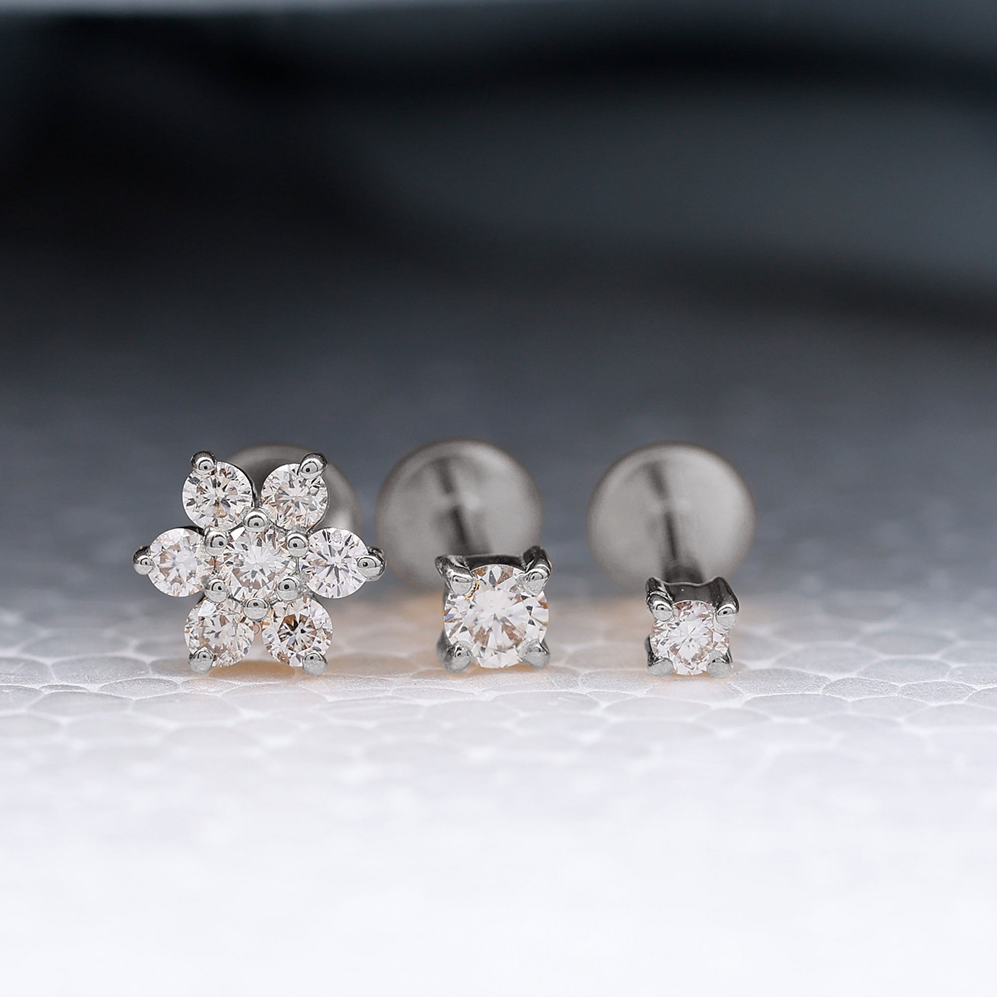 Moissanite Flower Triple Earrings Set for Cartilage Piercing