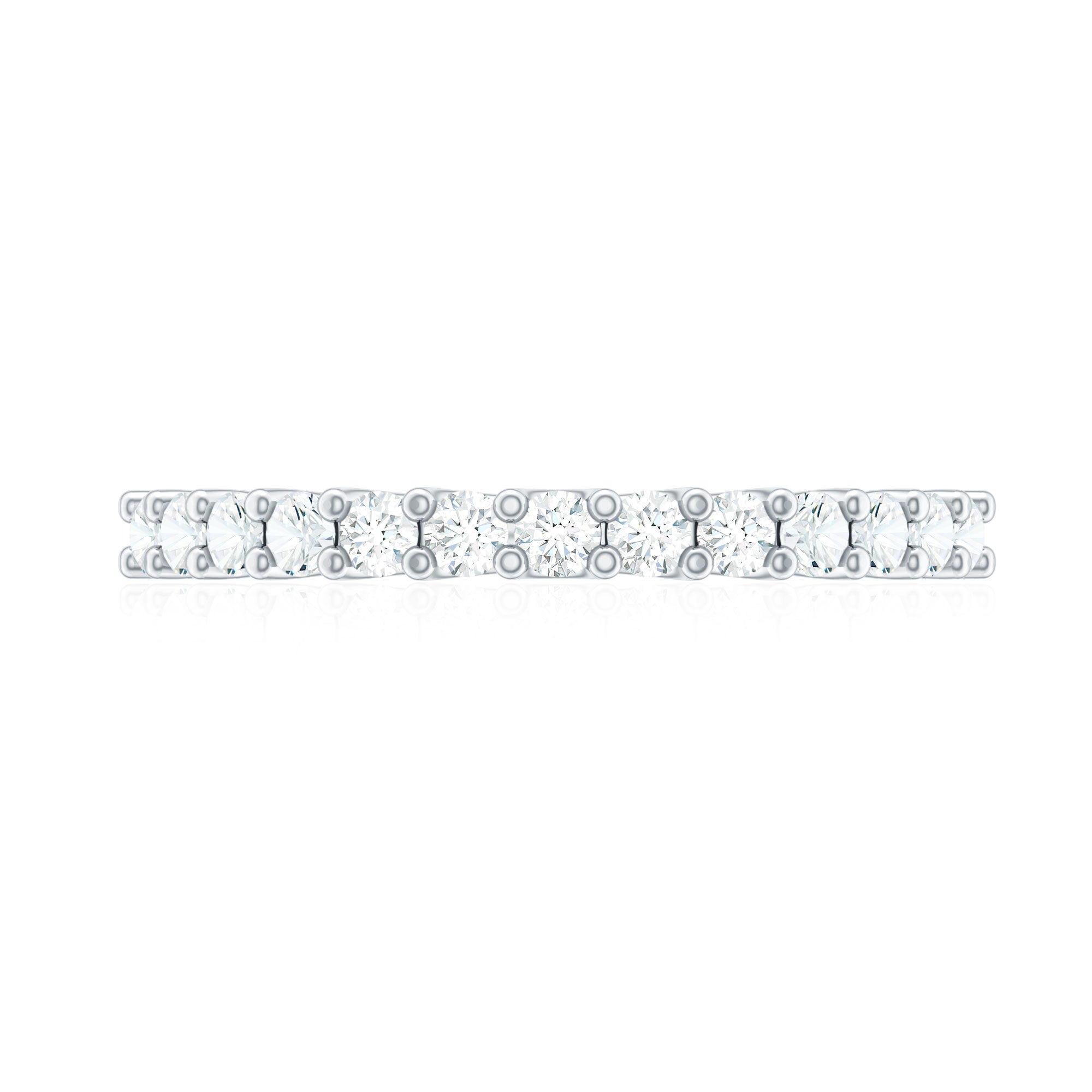 Featuring unmatched beauty and brilliance, the Wedding Anniversary Band boasts a half eternity design embellished with round cut moissanite stones securely held in shared prong setting. This Moissanite Wedding Band effortlessly enhances any outfit with its radiant allure. It highlights the sparkle of D color and VS1 clarity certified moissanite stones, making your celebration even more memorable. This Moissanite Half Eternity Ring will arrive in a signature jewelry box along with a certificate of gemstone authenticity. Celebrate a significant milestone with your partner using this gorgeous Eternity Wedding Band. You can wear it solo for a chic and elegant vibe or stack it with another ring for a more personalized flair. Crafted for comfort and designed to shine for years, this Moissanite Stackable Ring is all about making a bold impression.