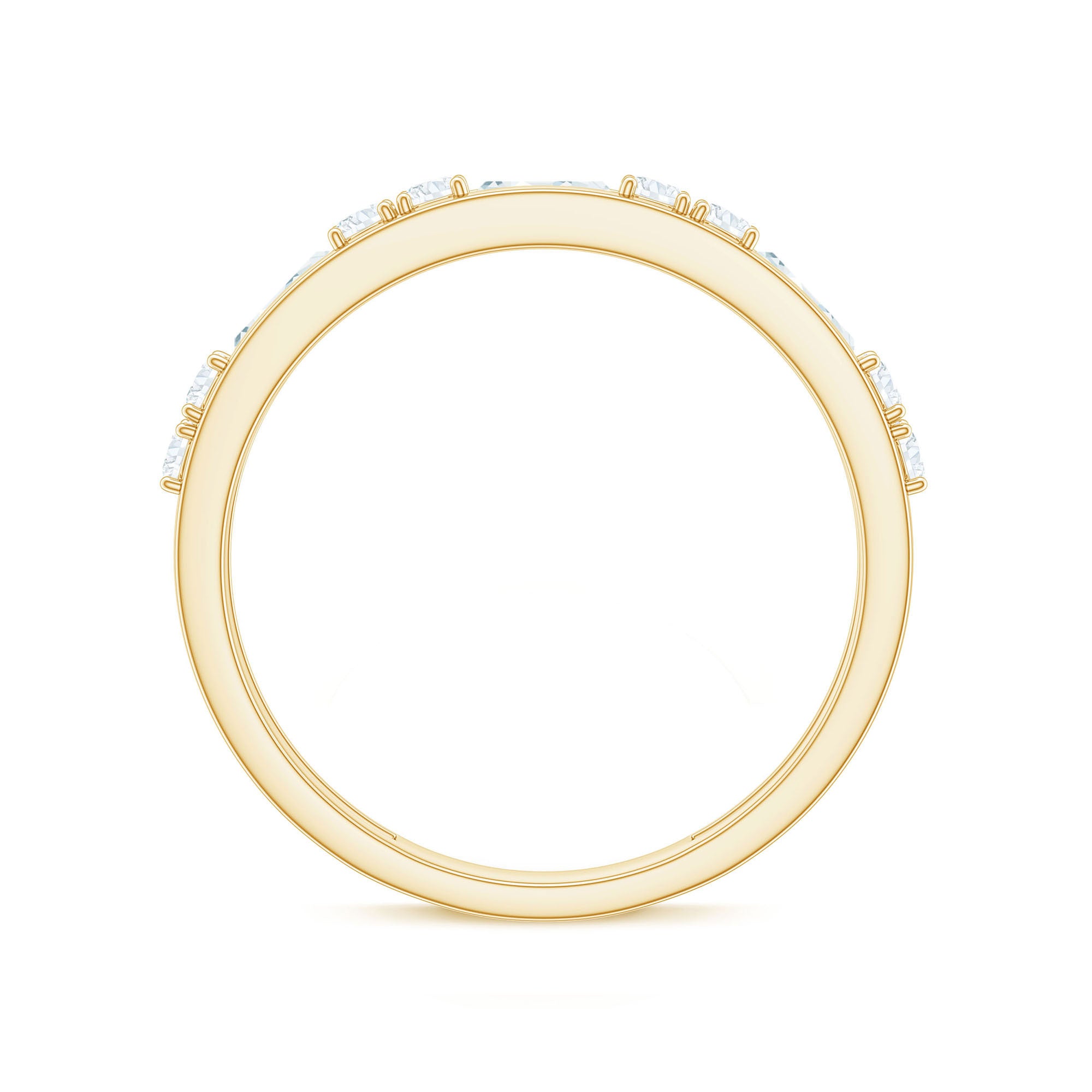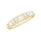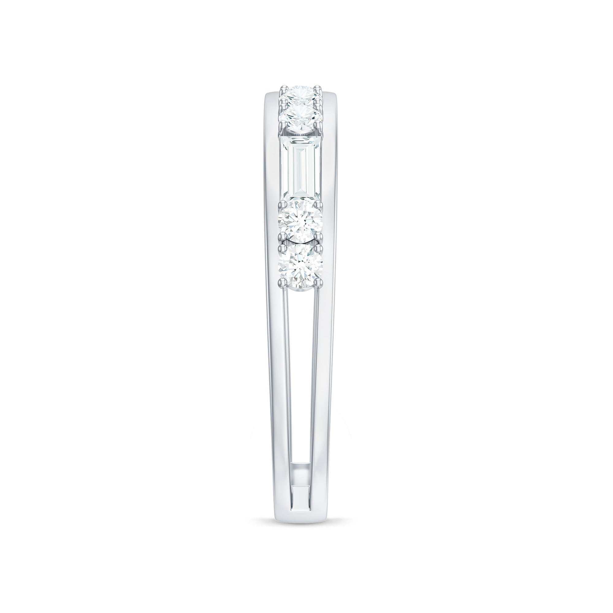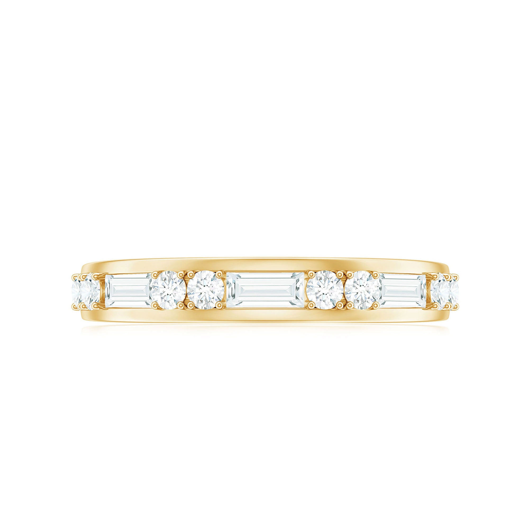 Rosec Jewels stunning Moissanite Half Eternity Ring is a perfect symbol of love and commitment, designed with a clean and modern style that suits everyday wear. The ring features a beautiful arrangement of sparkling moissanite stones in a half eternity design. It combines elegant baguette cut stones set horizontally (east-west style) with round cut stones, adding extra shine and charm. Crafted with D color and VS1 clarity moissanite stones, this Eternity Wedding Band offers brilliant sparkle. Its minimalist design makes it easy to wear alone for a simple look or stacked with other rings, including engagement rings, to create a unique style. Whether you want a ring for daily wear or a special occasion, this Wedding Anniversary Ring fits perfectly. This versatile piece is ideal for brides or anyone wanting a meaningful gift for weddings, anniversaries, or important milestones. The sleek design blends well with both modern and classic jewelry, making it a timeless addition to any collection. It also comes with a certificate of authenticity, ensuring the quality of the stones. Delivered in a lovely jewelry box, this Moissanite Stackable Ring is ready to be gifted or kept as a treasured keepsake. Its elegant yet simple design makes it a meaningful and stylish choice for anyone celebrating love and special moments.