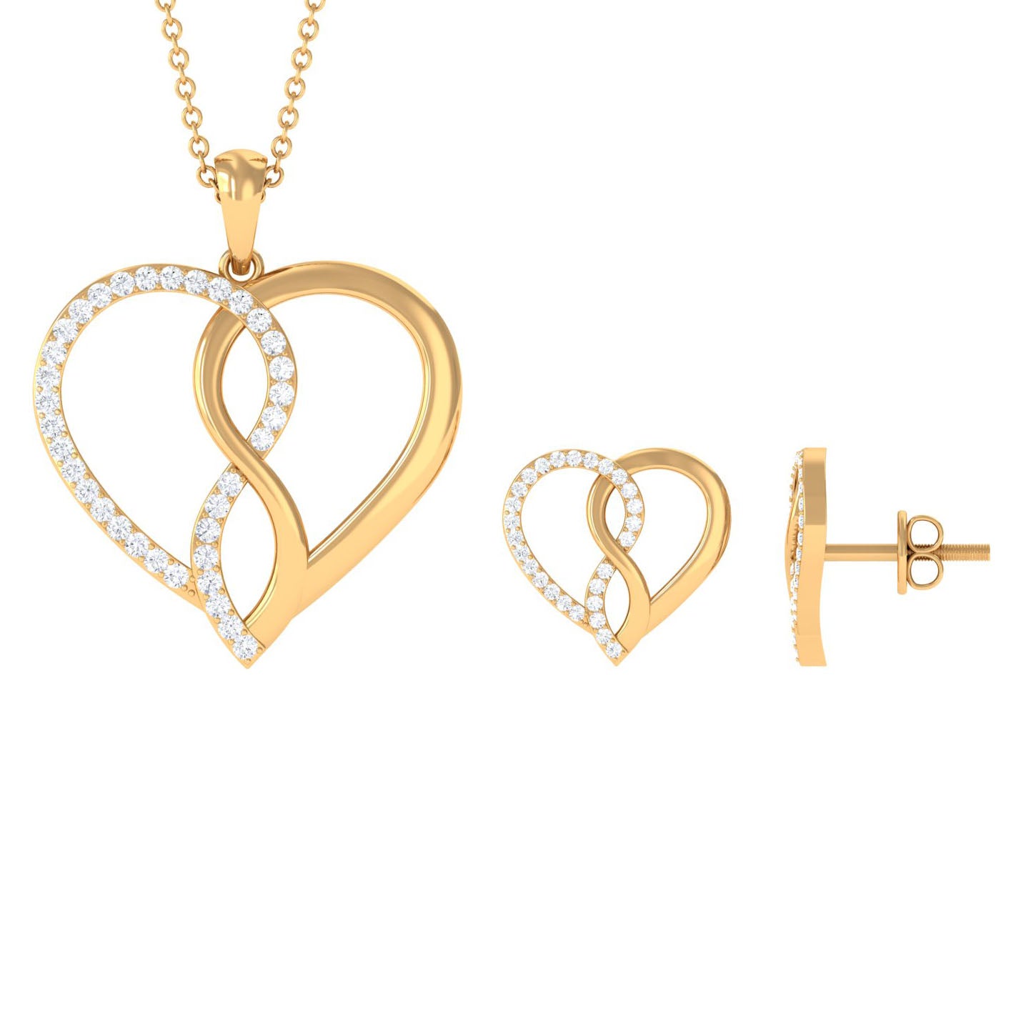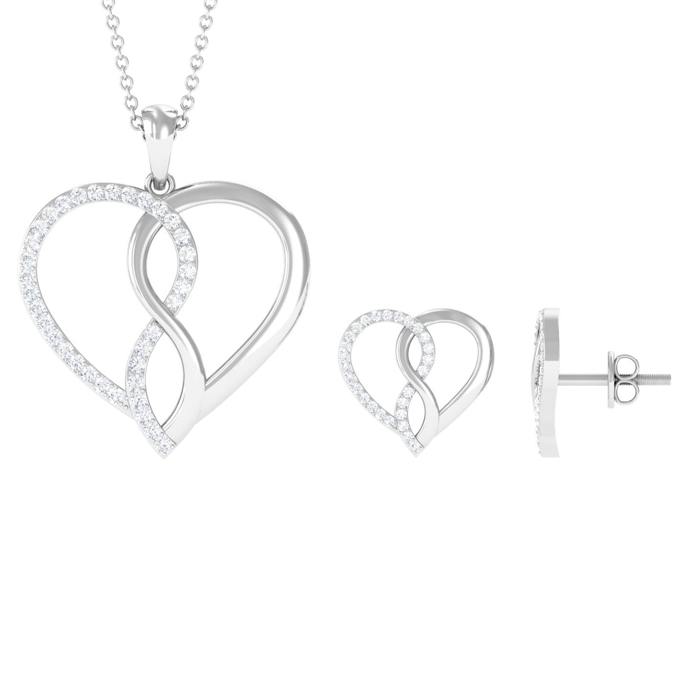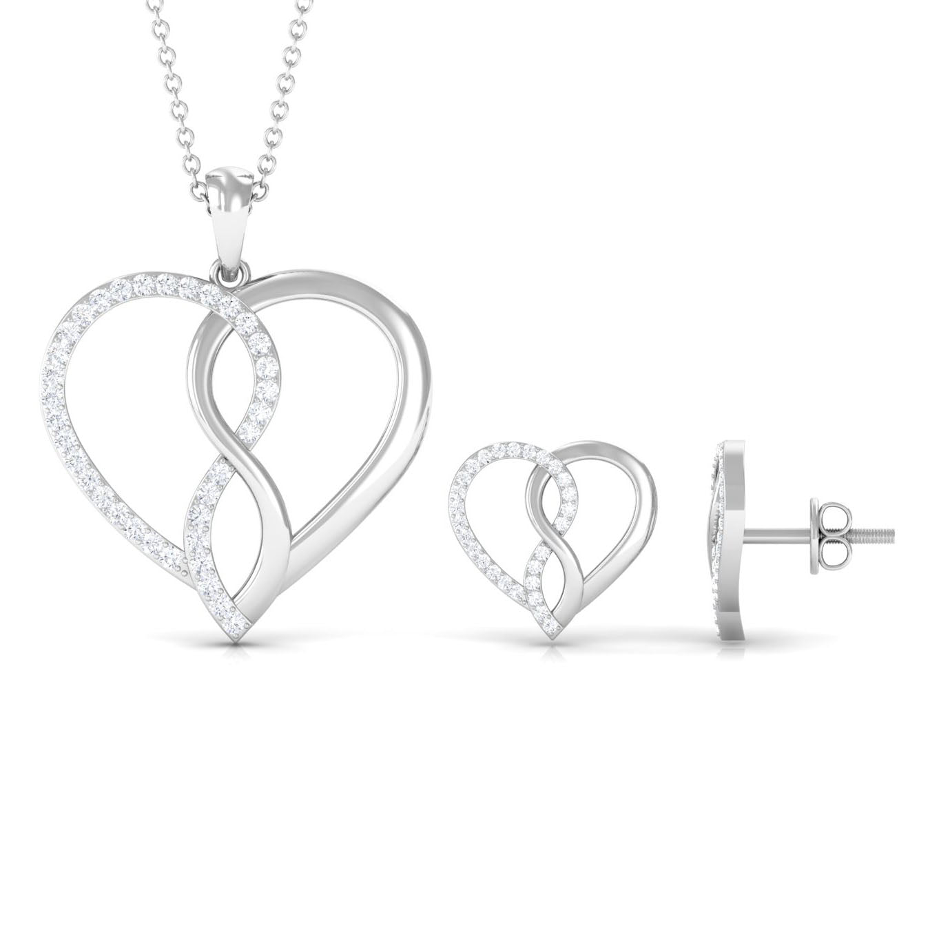 The Moissanite Infinity Heart Pendant Earrings set is a stunning and elegant piece of jewellery that is perfect for any occasion. The pendant features a heart-shaped moissanite stone in a pave setting type that is surrounded by an infinity loop, symbolizing eternal love and commitment. The earrings feature matching moissanite stones in a delicate stud style. This jewellery set is a beautiful and meaningful gift for any loved one.