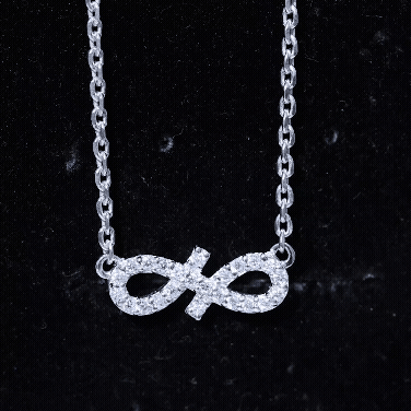 Make a statement style by wearing this Moissanite Infinity Pendant Necklace, crafted with 14K White Gold Plated Silver. The pendant features an infinity metallic frame studded with smaller Moissanite Stones securely placed in Pave Setting. This Forever Pendant Necklace dazzles with the classic shine of D-VS1 Quality Moissanite that makes a statement yet is minimal. The pendant will be delivered to you in premium quality packaging with the certificate of authenticity.