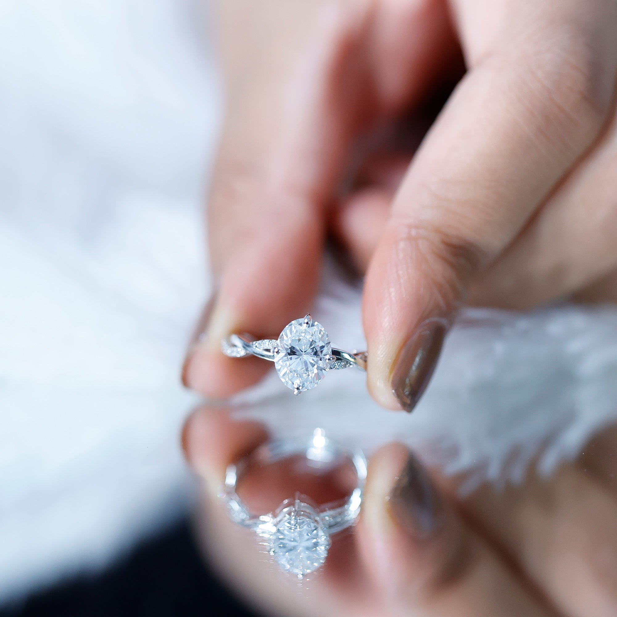 Moissanite Oval Engagement Ring With Diagonal Prong Setting