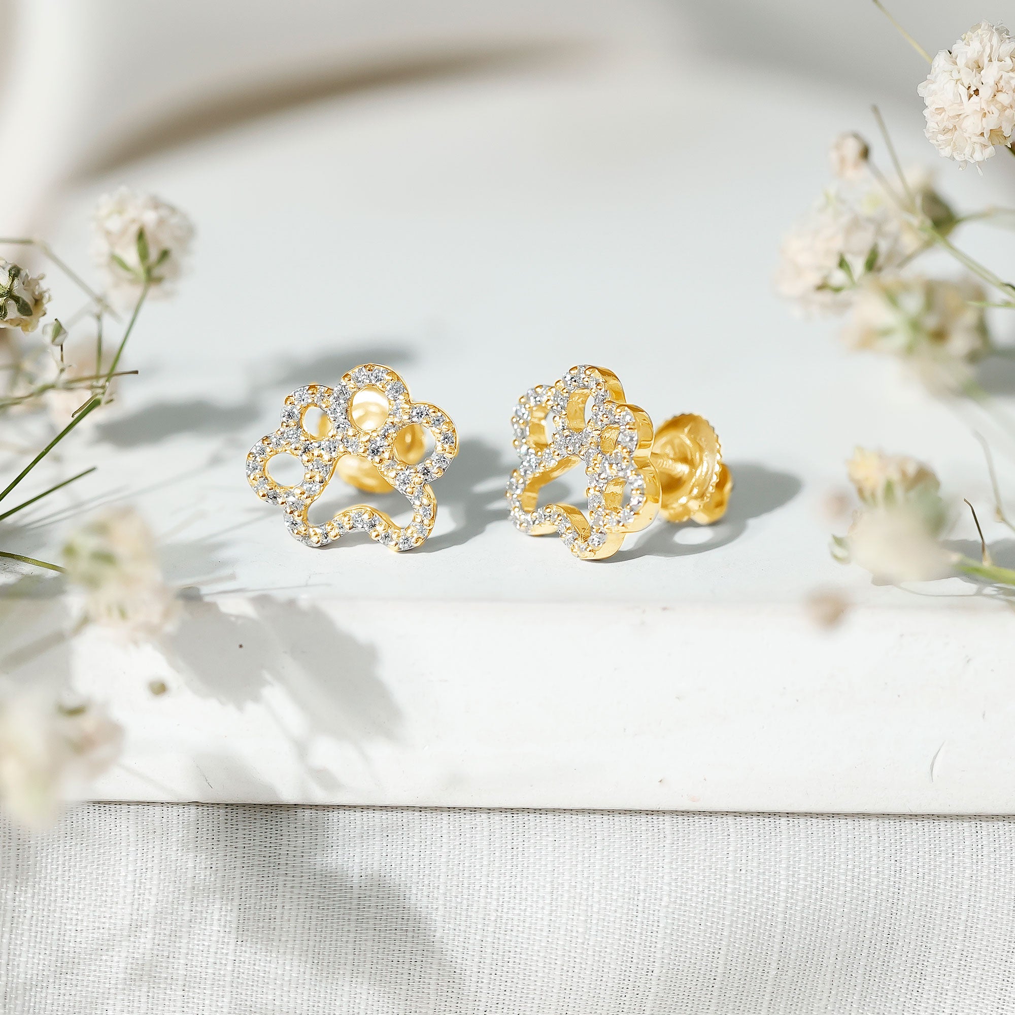 Joy shines brightest in the little things, and these Dog Paw Stud Earrings capture the beauty in the sweetest way. Designed especially for animal lovers, this adorable pair features a paw shaped outline fully embellished with sparkling moissanite stones. Each stone is set securely in prong setting, giving the Cute Stud Earrings a bright and eye-catching shine without feeling overwhelming. The playful paw design lets you carry a bit of love and loyalty wherever you go. Whether you cherish a beloved pet or simply adore cute, meaningful jewelry, these Moissanite Stud Earrings are a heartwarming reminder of companionship and joy. Crafted with care, they come with screw back closures that keep the studs safely in place, making them perfect for everyday wear. Available in various metal options, you can choose the one that best matches your style. This pair arrives in a beautiful jewelry box, ready for gifting or safekeeping. Ideal as a thoughtful present for pet parents, animal enthusiasts, or anyone who appreciates charming accessories, these Moissanite Paw Earrings add a touch of sparkle and personality to any outfit.