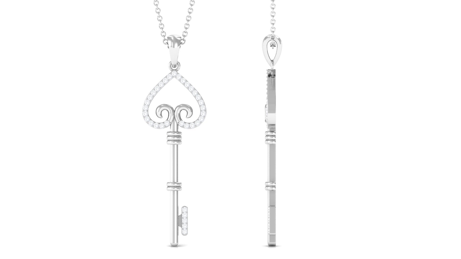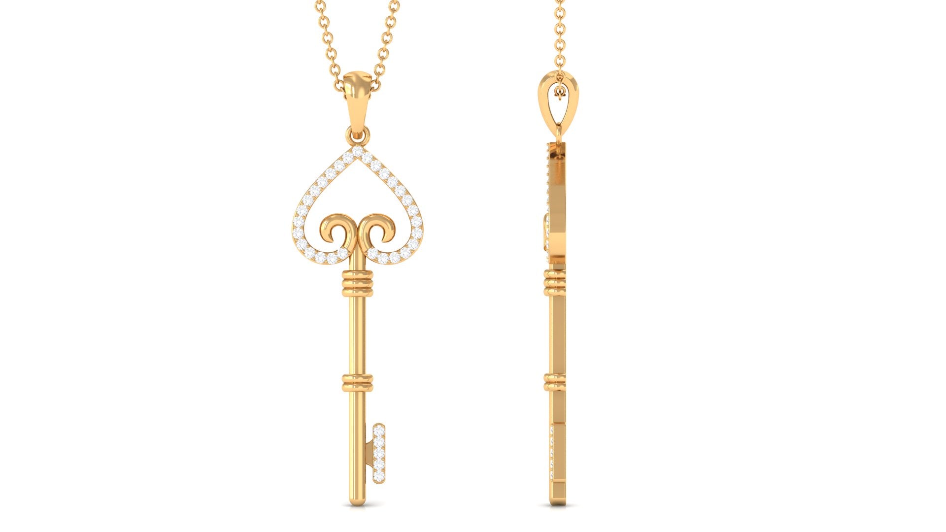 Simple and elegant this Moissanite Pendant is a subtle jewelry for everyday staple. The Round Cut Moissanite in Prong Setting on Heart Pendant Necklace is the perfect present to give to that one special person who unlocked a beastly prince from a magical spell. This Key Pendant Necklace is a tribute to her.