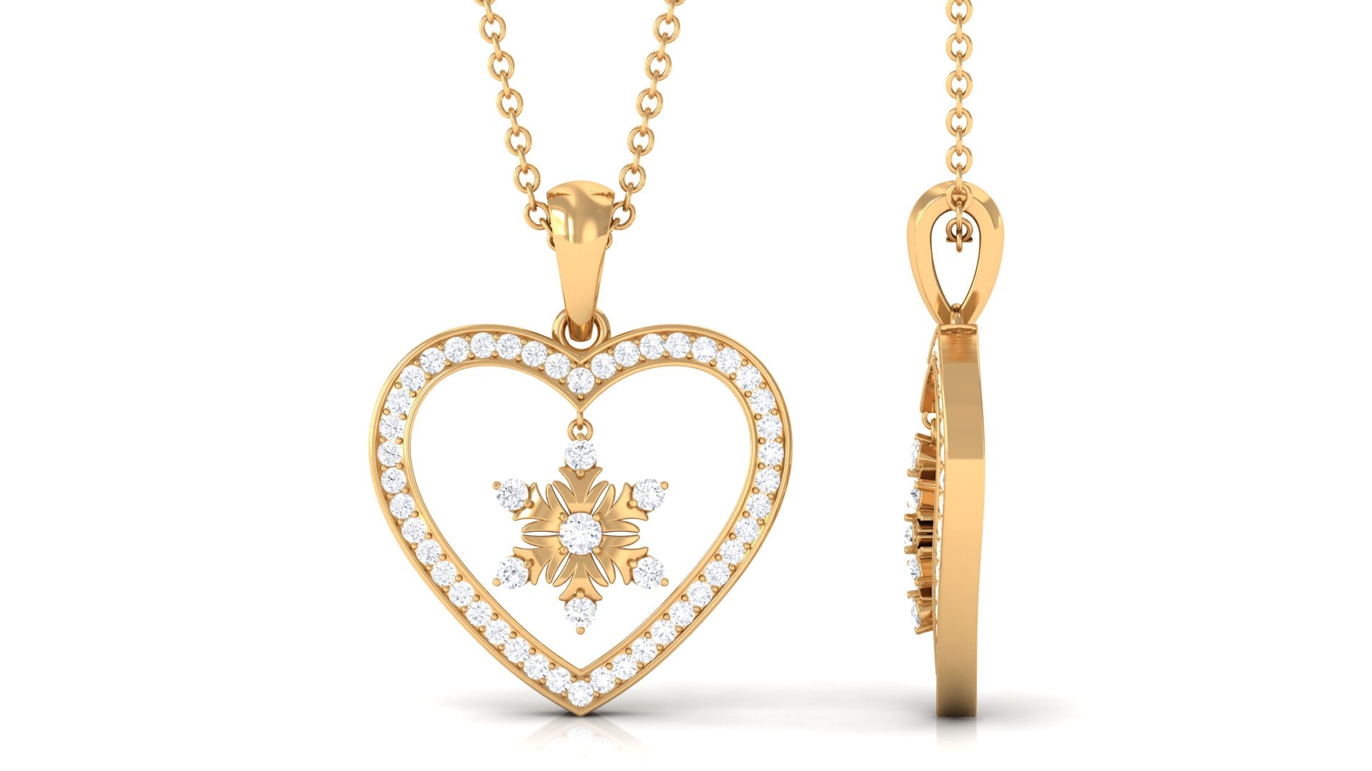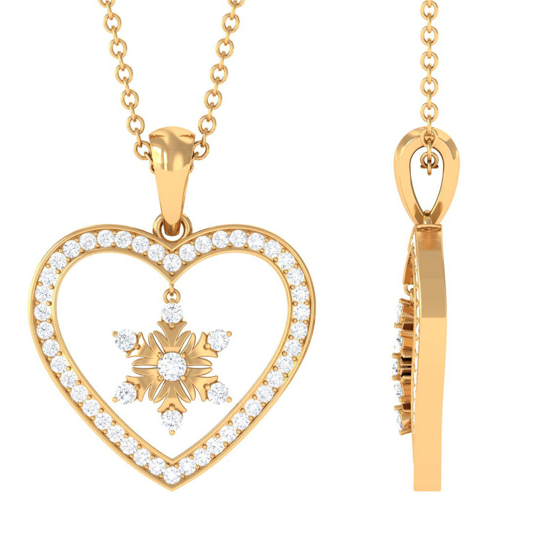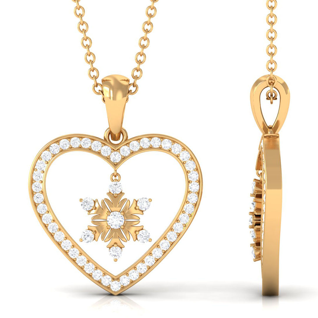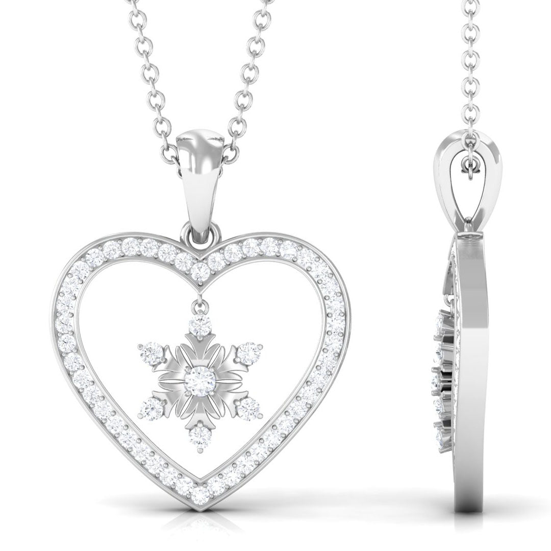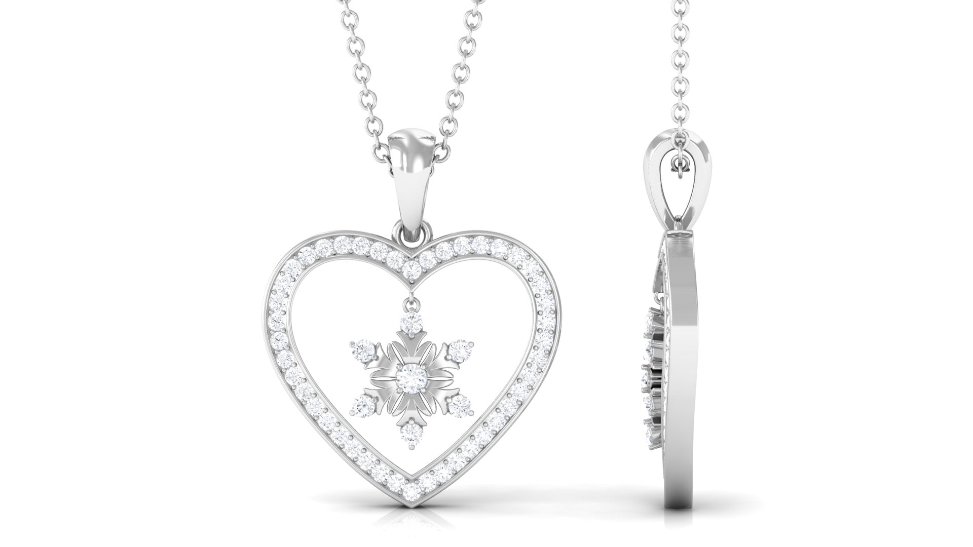 Catch the light from every angle with this exquisite moissanite snowflake heart pendant necklace. The pendant features a 1x1 MM moissanite snowflake center stone surrounded by a heart which is encrusted with small sparkling moissanites. This stunning pendant is suitable for those who love beauty with uniqueness. It is a timeless and elegant piece of jewelry that will be cherished for years to come.