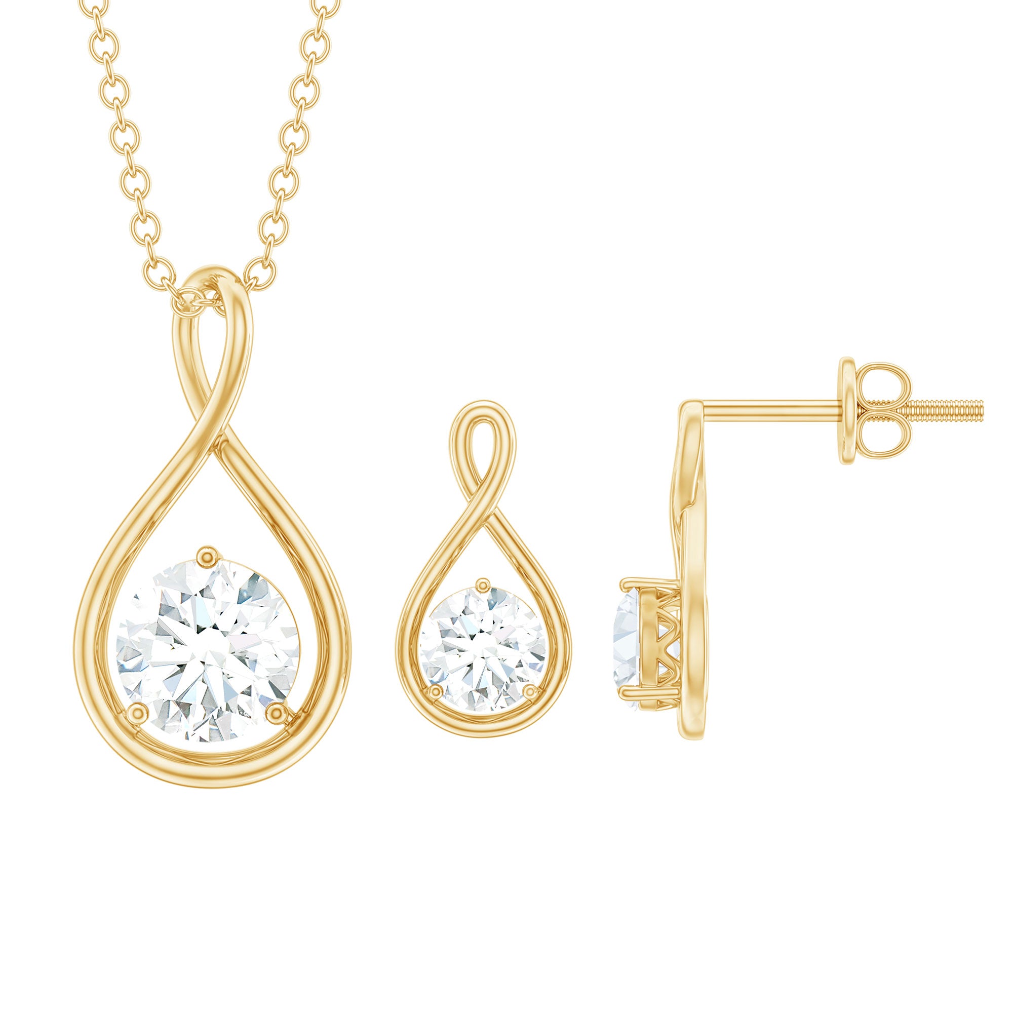 Moissanite Solitaire and Gold Infinity Jewelry Set